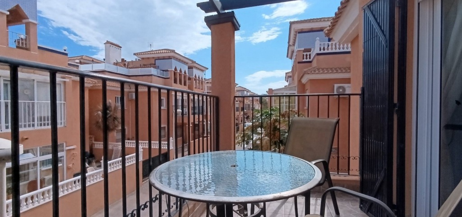 A South facing 3 bed 2 top floor duplex apartment located in Parque del Duque, Playa Flamenca, Costa Blanca.
