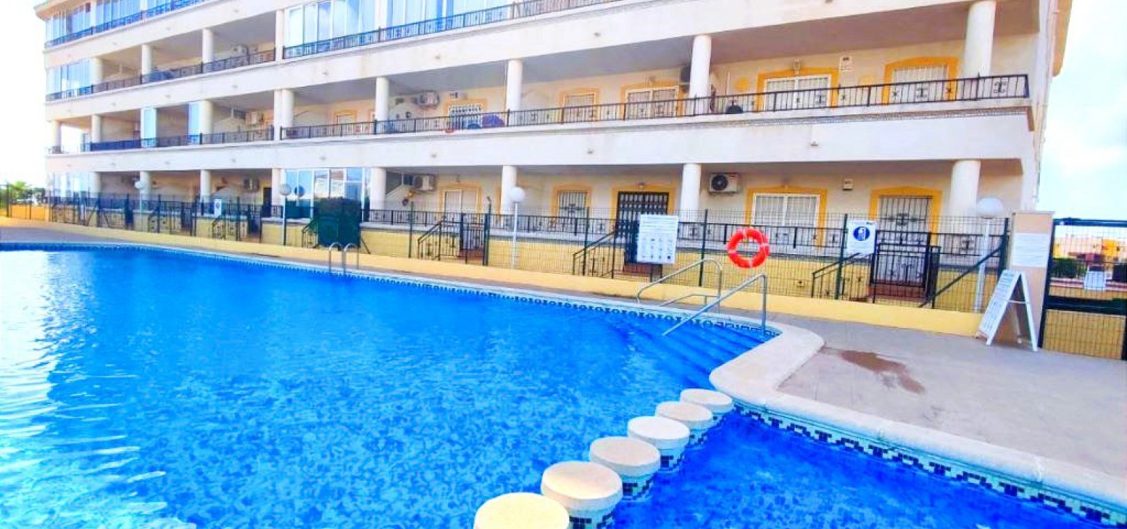A 2 bed 1 bath 1st floor apartment located in Res. La Mirada, Playa Flamenca, Costa Blanca.