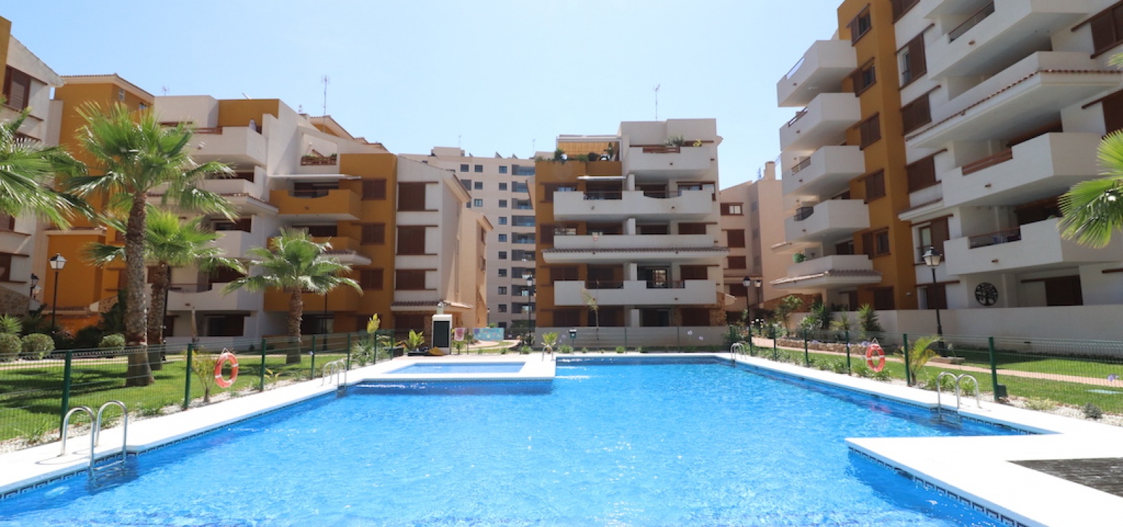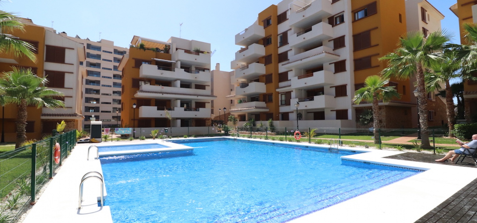 A 3 bed 2 bath ground floor apartment located in the sought after La Recoleta complex in Punta Prima, Costa Blanca.