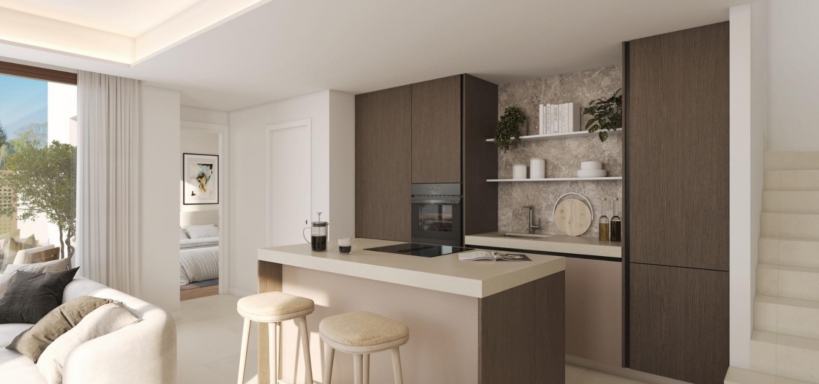 The kitchen also comes from Porcelanosa and features an 8cm thick XTone worktop and all appliances, including an induction hob with built-in extractor hood from Balay are included as standard.