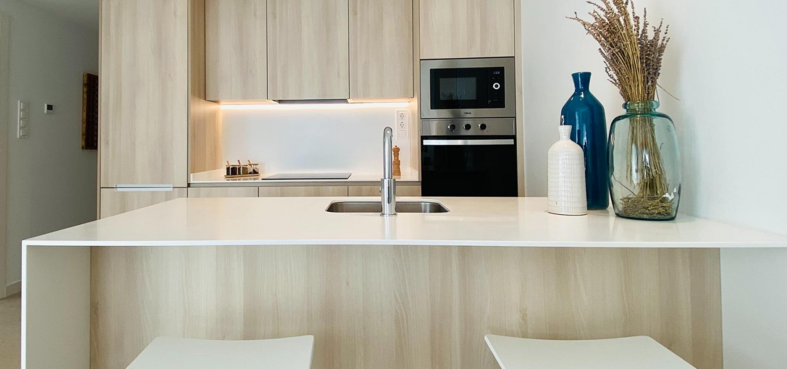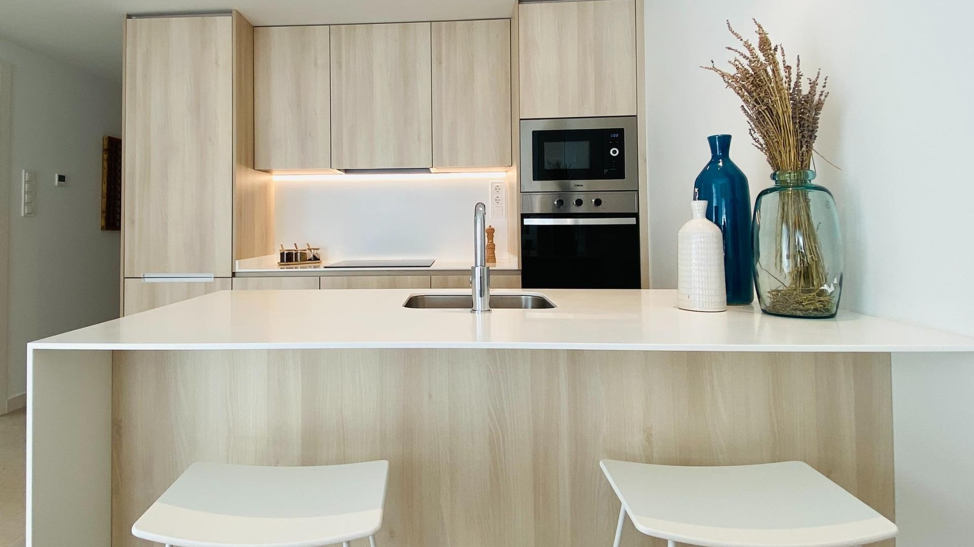 Pilar de la Horadada is a traditional Spanish town with a lively main street offering supermarkets, shops, restaurants, and bars. The beautiful beaches of Torre de la Horadada and Mil Palmeras are just 5 minutes away. The development is conveniently located 40 km from Corvera Airport (Murcia) and 55 km from Alicante Airport, making it an ideal location for both permanent living and holiday getaways.