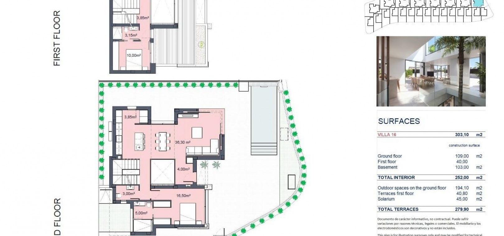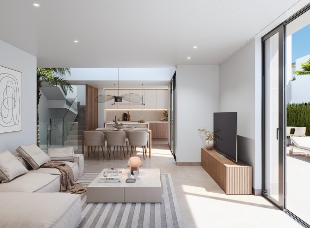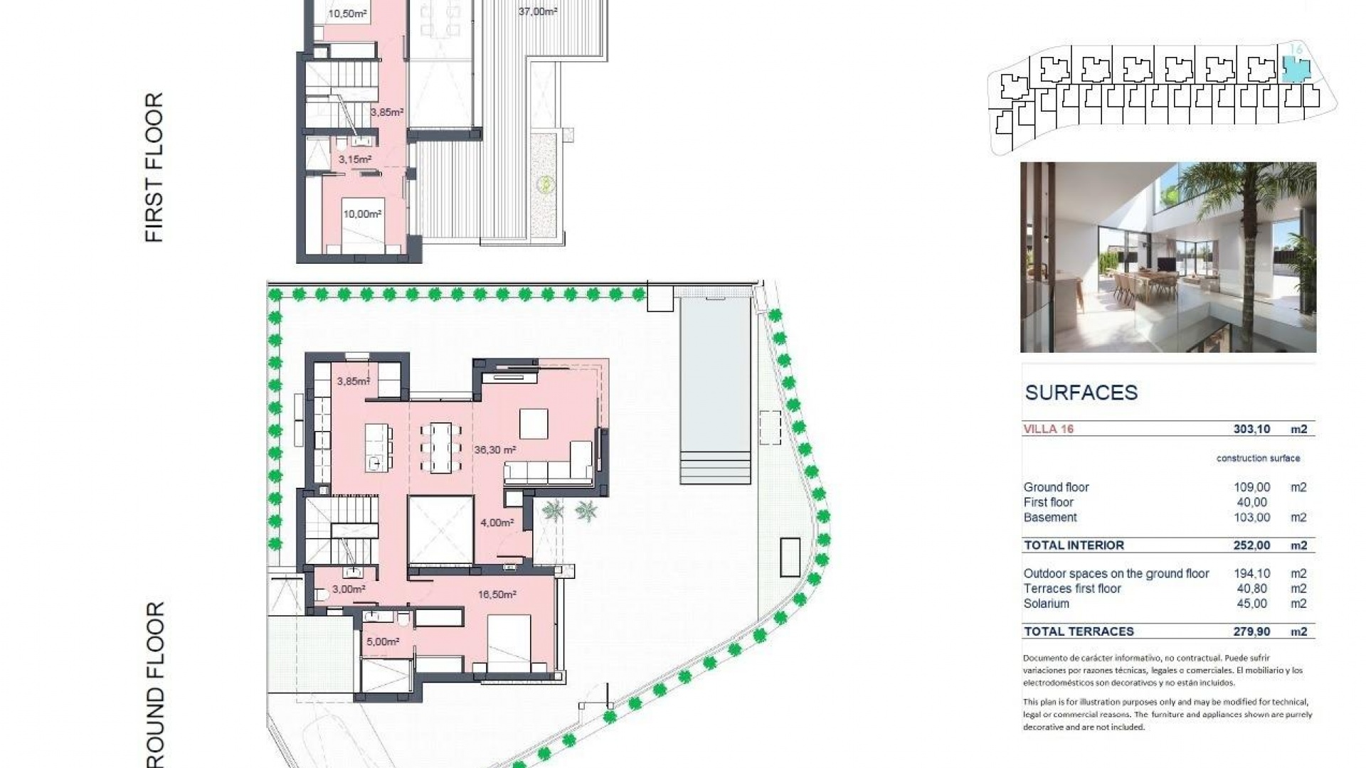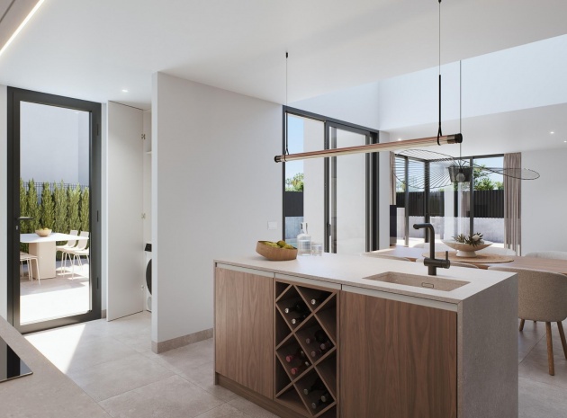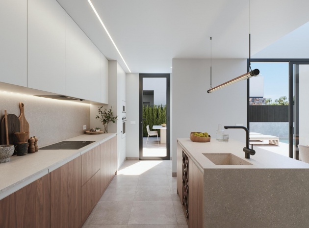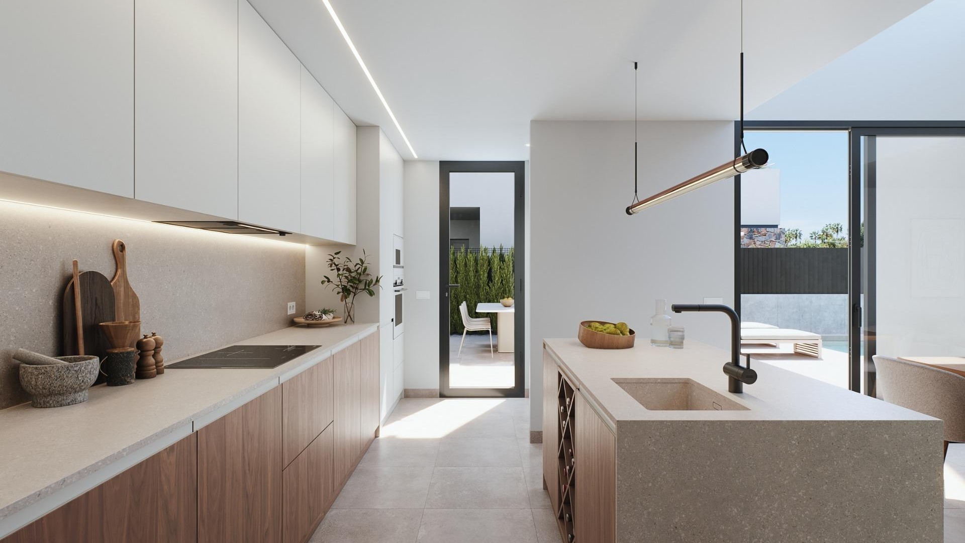Each villa is thoughtfully designed across three floors, providing ample space and a comfortable layout. With 3 bedrooms, 2 bathrooms, and an additional guest toilet, these homes are ideal for families and couples alike. The open-plan kitchen flows seamlessly into the dining and living areas, creating a bright, airy atmosphere. Key features include fitted wardrobes, a private basement, solarium, and a private garden with a swimming pool and parking space. Enjoy panoramic views and the beautiful Murcia climate from the solarium, which is pre-fitted for an outdoor kitchen, jacuzzi, and solar panels.