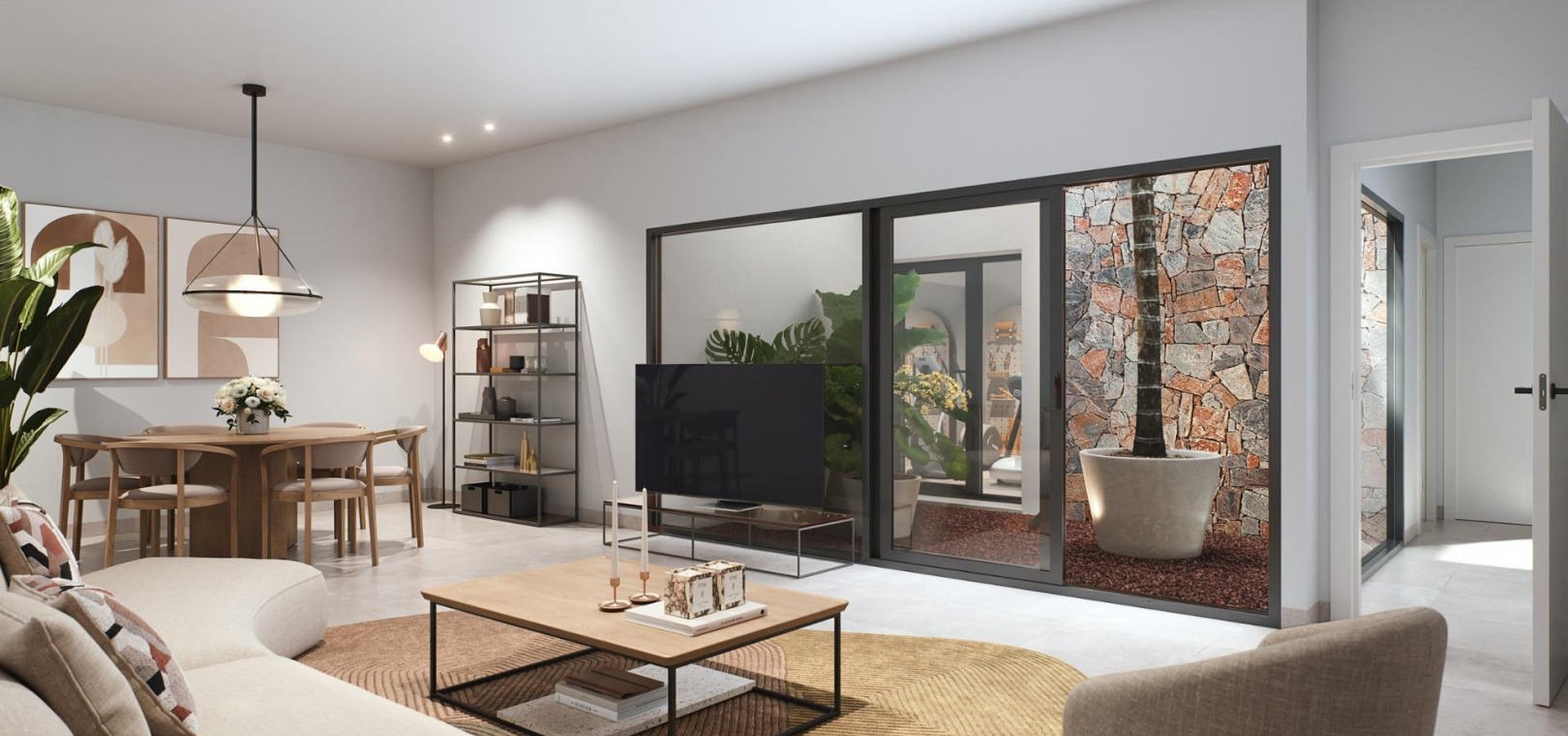 This exclusive gated resort is designed around a vast 126,000 m² green space, offering walking and cycling paths, sports facilities, paddle and tennis courts, a mini-golf course, dog parks, and leisure areas. At the heart of the resort is an impressive 17,000 m² crystal-clear lake with white sandy beaches, evoking a Caribbean ambiance in the heart of Murcia. Two islands within the lake feature a bar and beach chiringuitos for a relaxing retreat close to home.