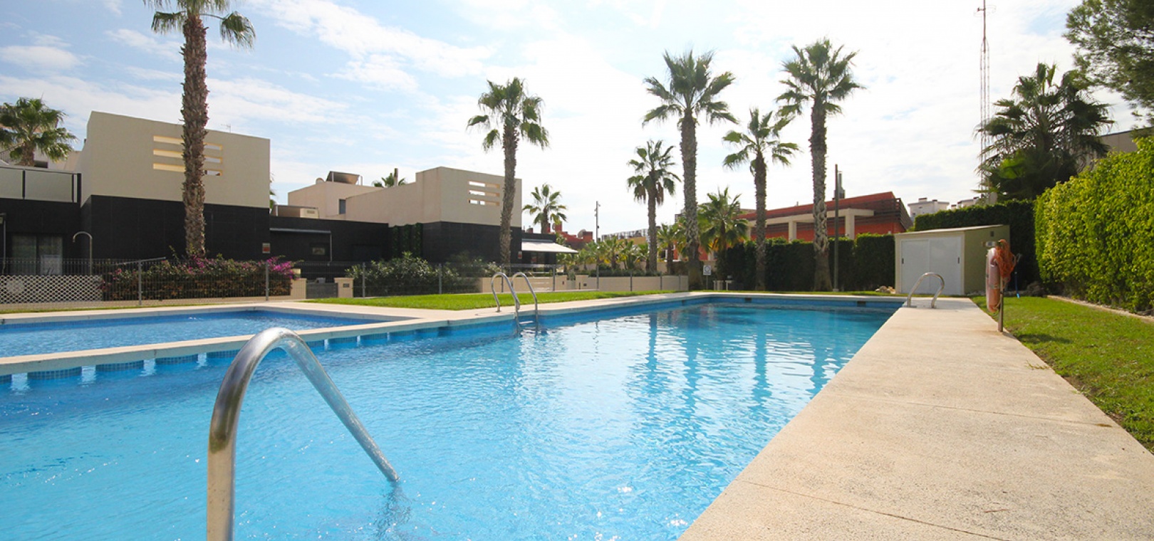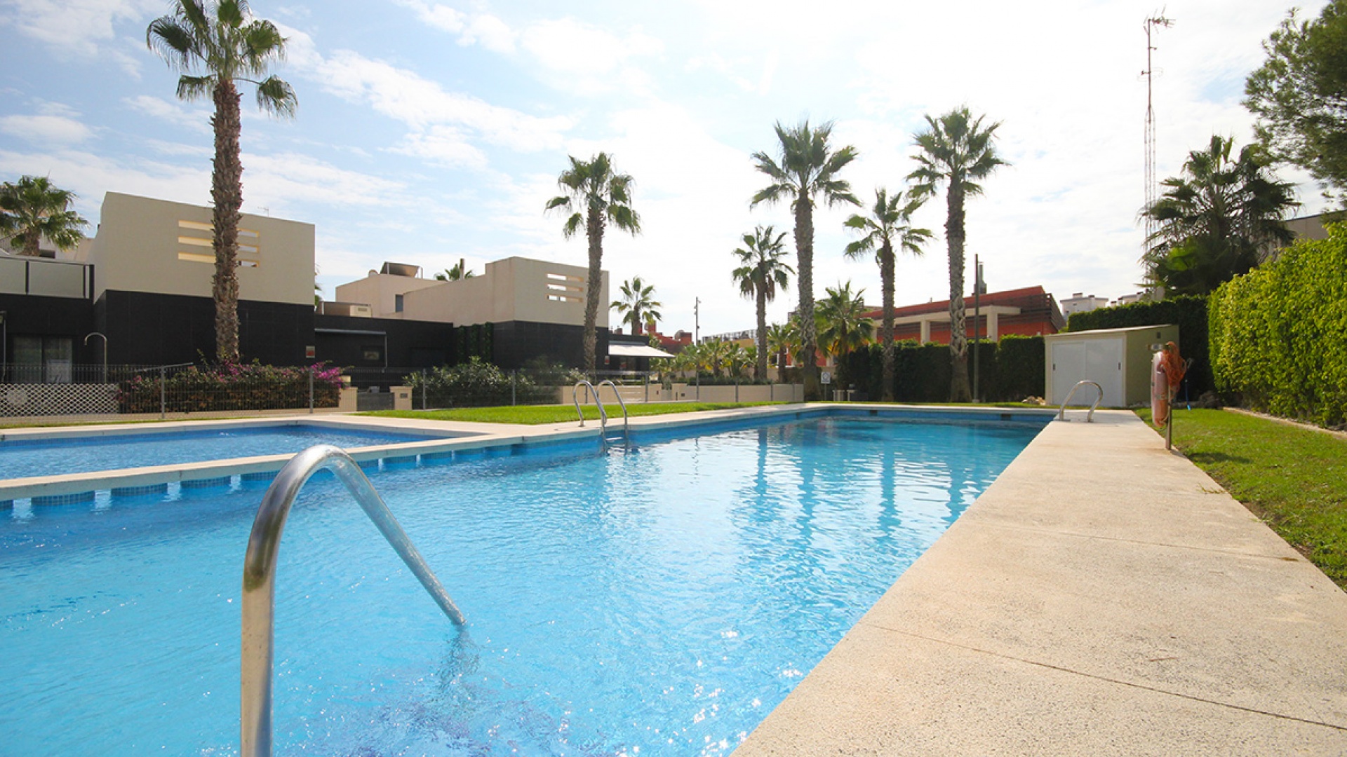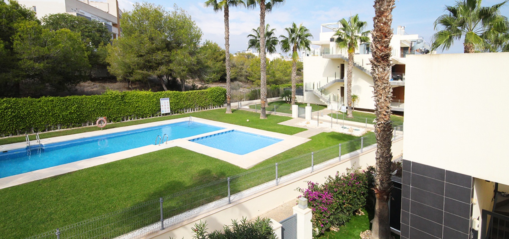The property is located just behind the very popular La Fuente commercial centre where you will find a big selection of bars, restaurants & shops inc. a supermarket & Pharmacy. Local buses & taxis stop right outside La Funete. The lovely Orihuela Costa Blue flag beaches are just 5 minutes by car or you can hop on the local bus. Villamartin Plaza is around a 20 minutes walk. Las Ramblas, Campoamor & Villamartin golf course are all just a few minutes by car & Alicante airport is 50 minutes drive away.