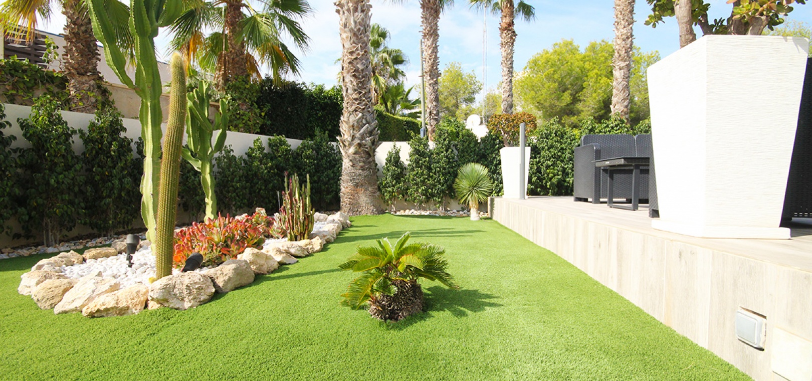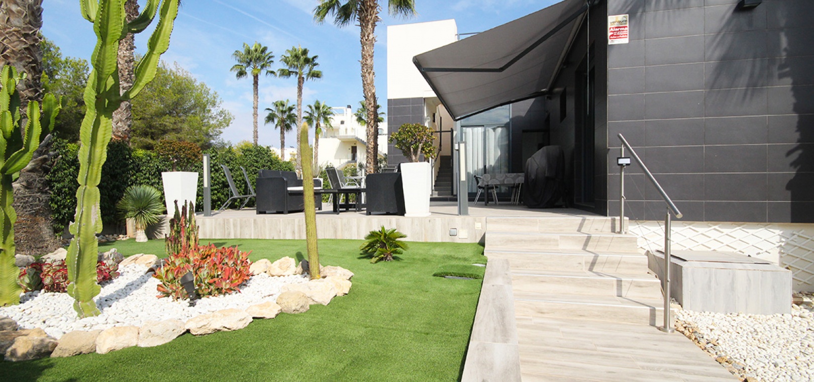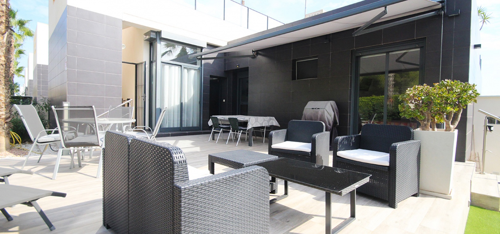 The property is located just behind the very popular La Fuente commercial centre where you will find a big selection of bars, restaurants & shops inc. a supermarket & Pharmacy. Local buses & taxis stop right outside La Funete. The lovely Orihuela Costa Blue flag beaches are just 5 minutes by car or you can hop on the local bus. Villamartin Plaza is around a 20 minutes walk. Las Ramblas, Campoamor & Villamartin golf course are all just a few minutes by car & Alicante airport is 50 minutes drive away.