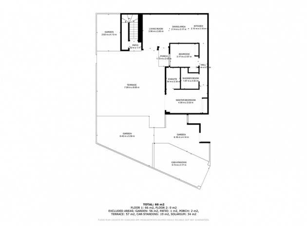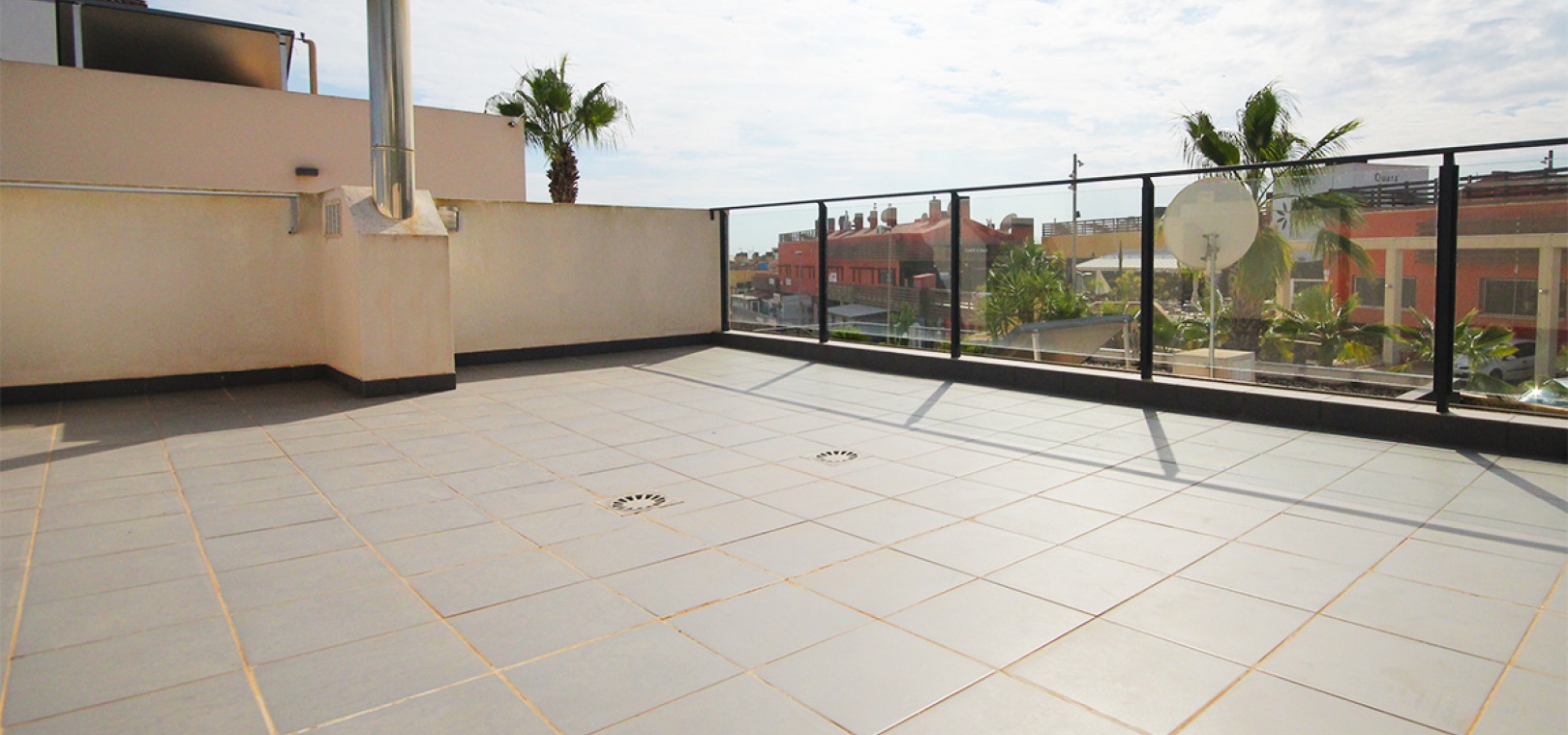 Lounge / diner with hot and cold A/C, an open plan modern kitchen, 2 x double bedrooms with fitted wardrobes, the main bedroom has an en suite shower room, 1 x guest shower room, front terrace, private rooftop solarium, garden with a driveway for off road parking & space for a small private swimming pool, a communal swimming pool, communal off road parking & much more.