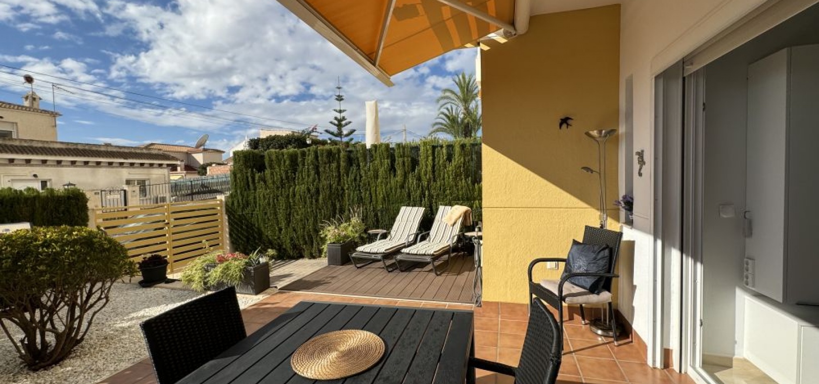 A South facing 2 bed 2 bath ground floor apartment located in Res. Ana, La Fuente, Villamartin, Costa Blanca.