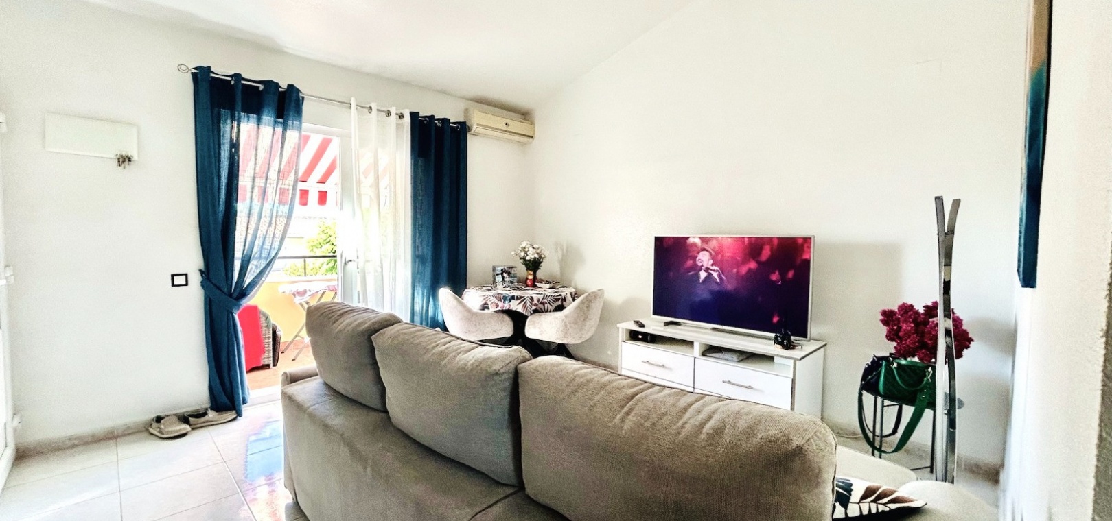 Lounge/diner with hot and cold A/C, open plan newly fitted kitchen, 2 x double bedrooms, the main bedroom has fitted wardrobes, 1 x newly fitted shower room, balcony with a sun awning & views to the communal swimming pool and gardens, 24 hour security and much more.