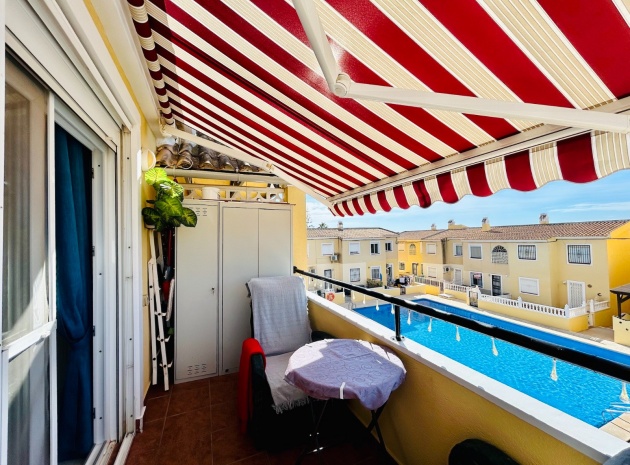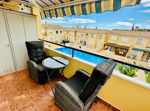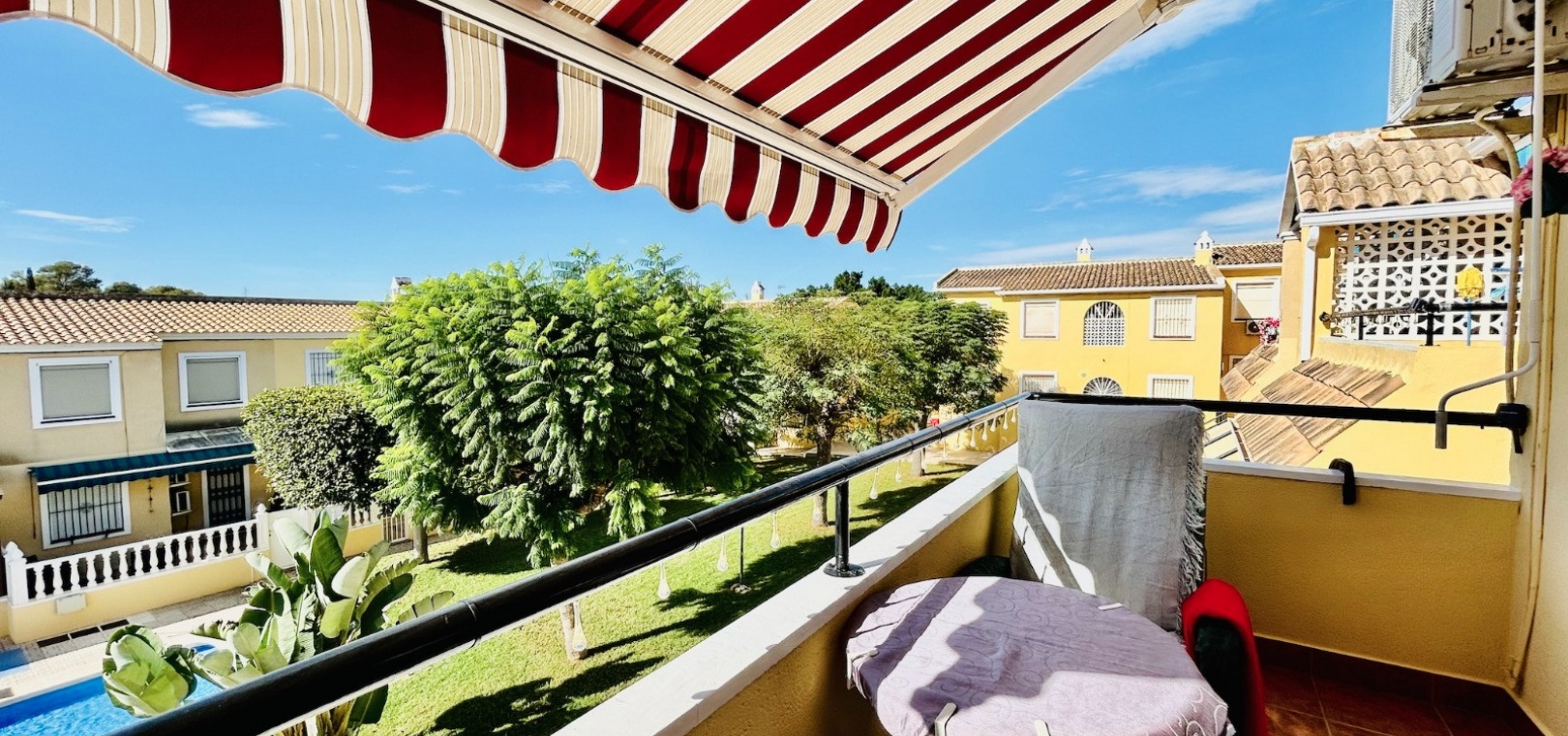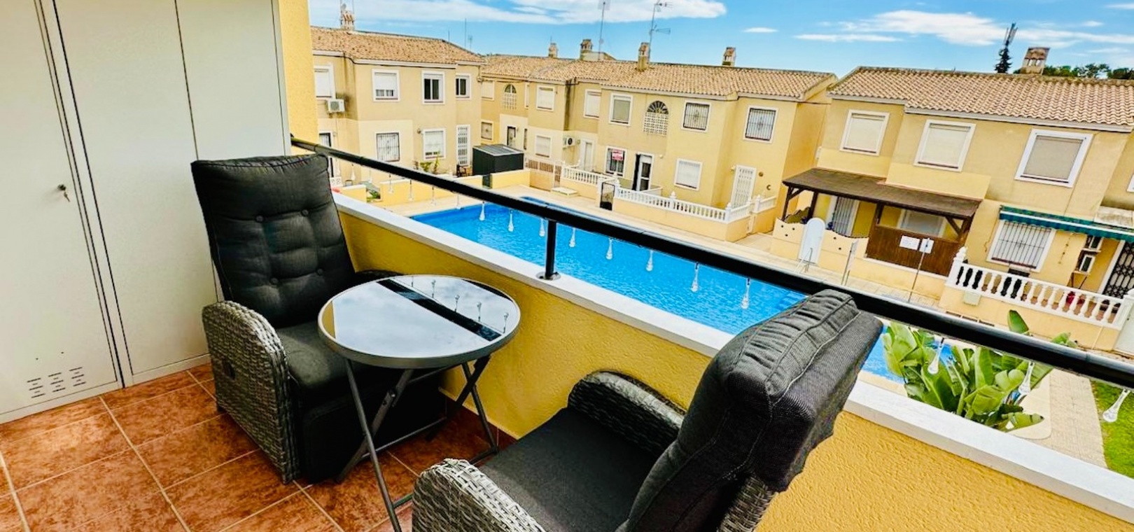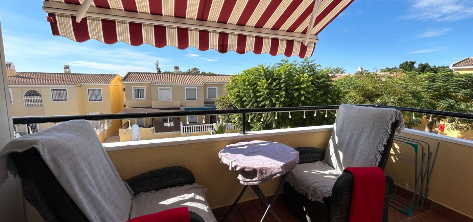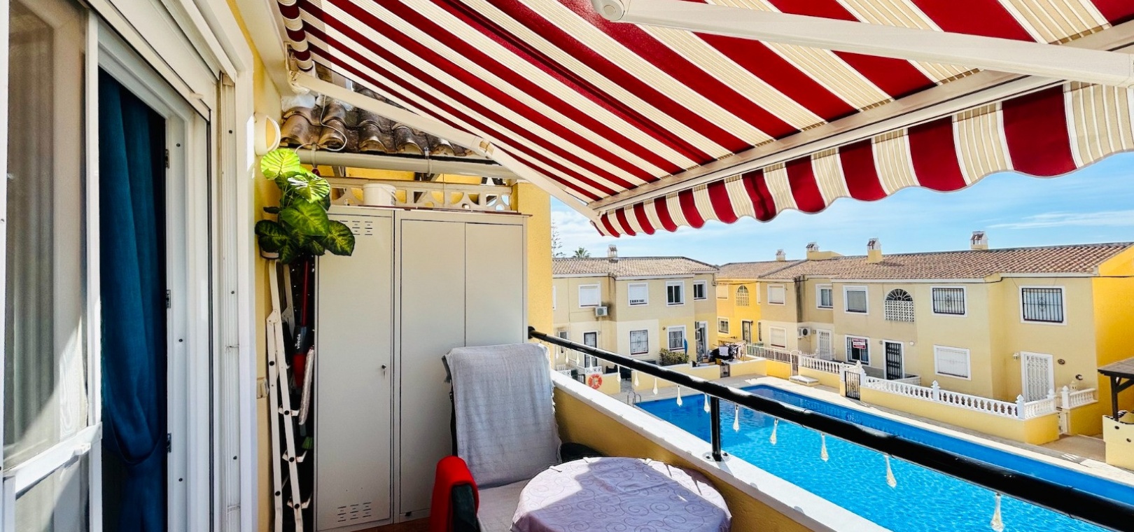 A South West facing 2 bed 1 bath top floor apartment with views to the communal swimming pool located in Lomas del Golf, Villamartin, Costa Blanca South.