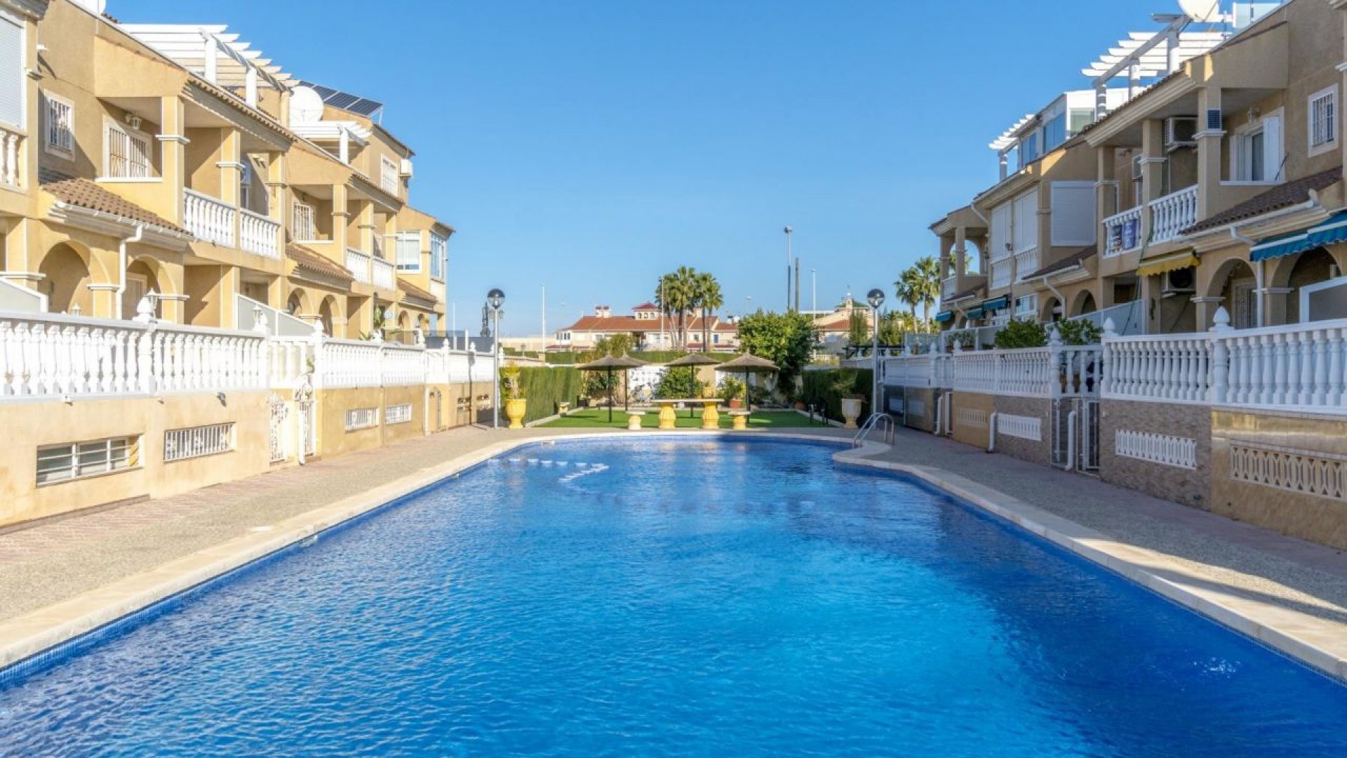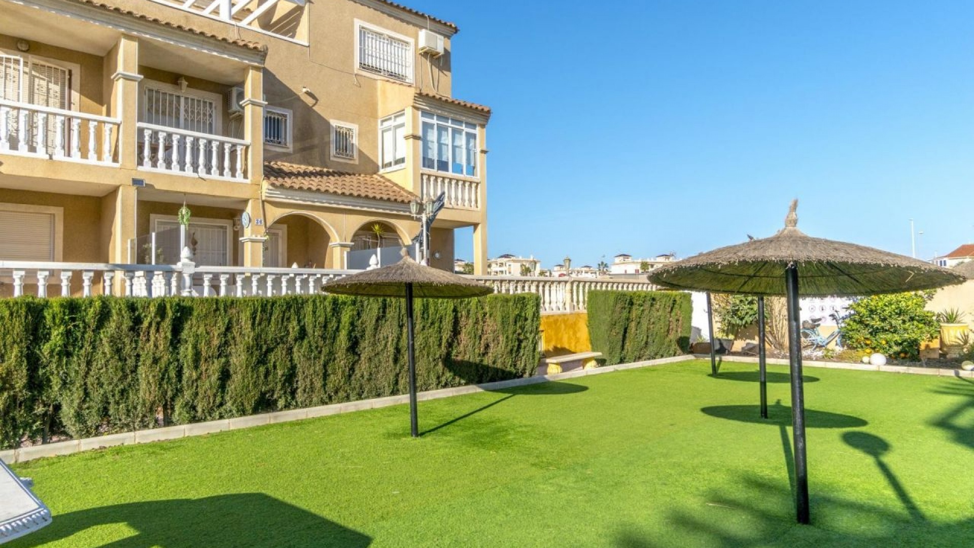Beautiful golden sandy blue flag beaches are nearby at Playa Flamenca beach (700m) & also at Punta Prima, La Zenia and Cabo Roig. There is also as a good bus service, (every 30 minutes), linking the area with all the main coastal areas such as Torrevieja and Alicante to the North and Cartagena and the Mar Menor to the South.