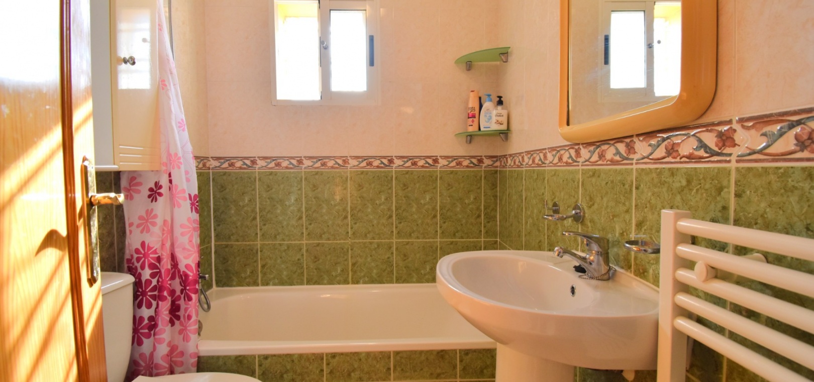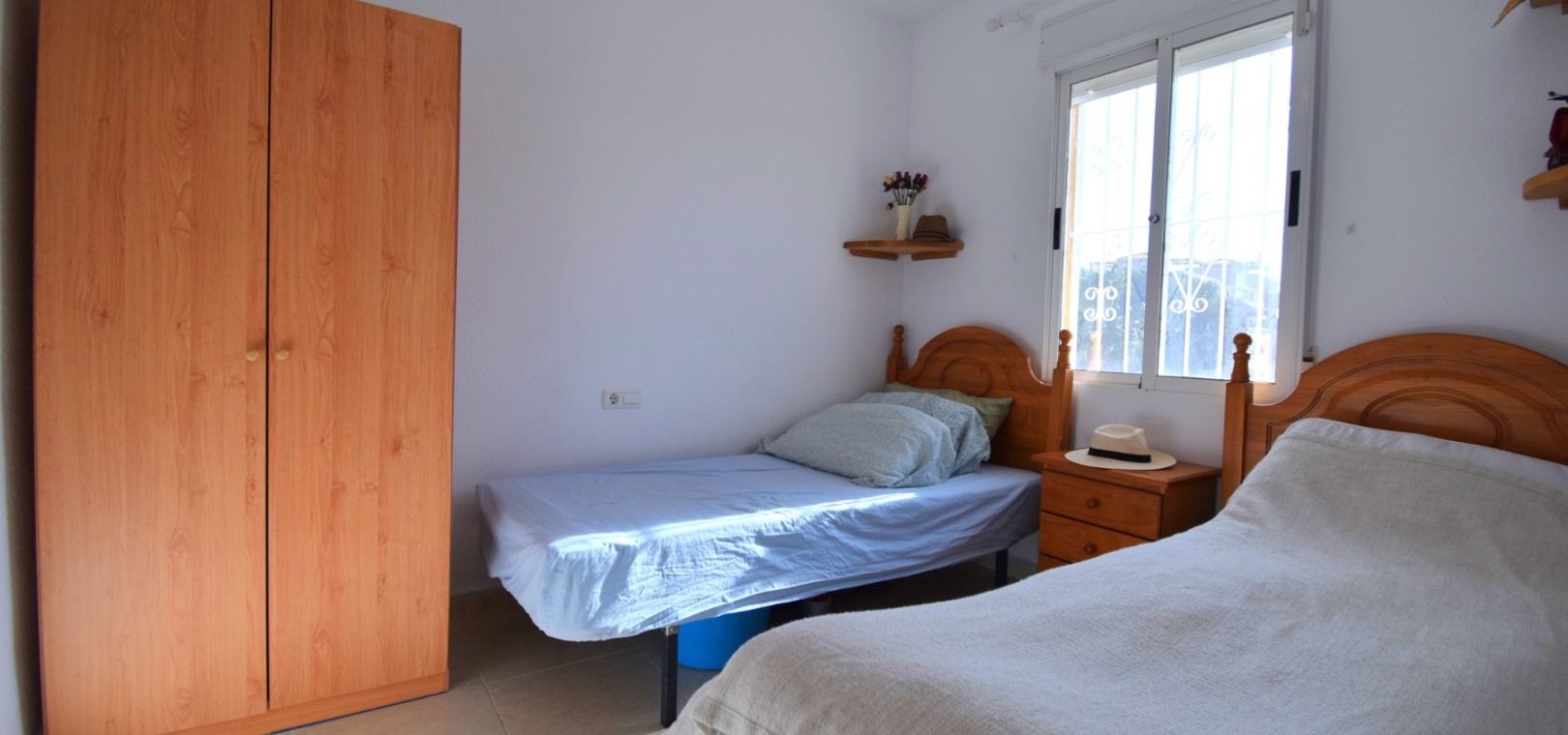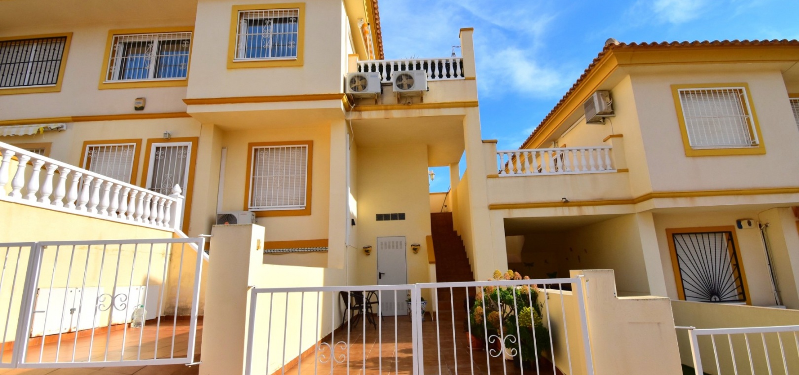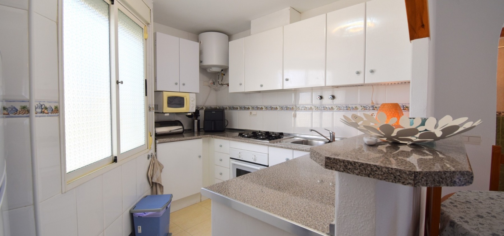 This South West Facing, Top Floor, Two Bedroom Apartment in Playa Flamenca, is located in the heart of the Orihuela Costa, within a short walk of less than 10 minutes to a variety of bars and restaurants. La Zenia Boulevard shopping centre is just 15-20 minutes on foot, with the beach and golf course only a 5-minute drive away. Although situated on the top floor, this apartment benefits from its own tiled garden area, making it ideal for outdoor relaxation or entertaining. The property is nicely presented and well maintained, featuring a great terrace area leading into the lounge/dining room with air conditioning. The bright American-style fitted kitchen adds to the welcoming feel of the home. There are two double bedrooms, both with built-in wardrobes, while the master also includes air conditioning. The family bathroom is conveniently located. A separate storage room provides additional practicality. The property is part of a gated community offering parking and a communal pool surrounded by astro turf, perfect for enjoying the Costa Blanca South lifestyle.