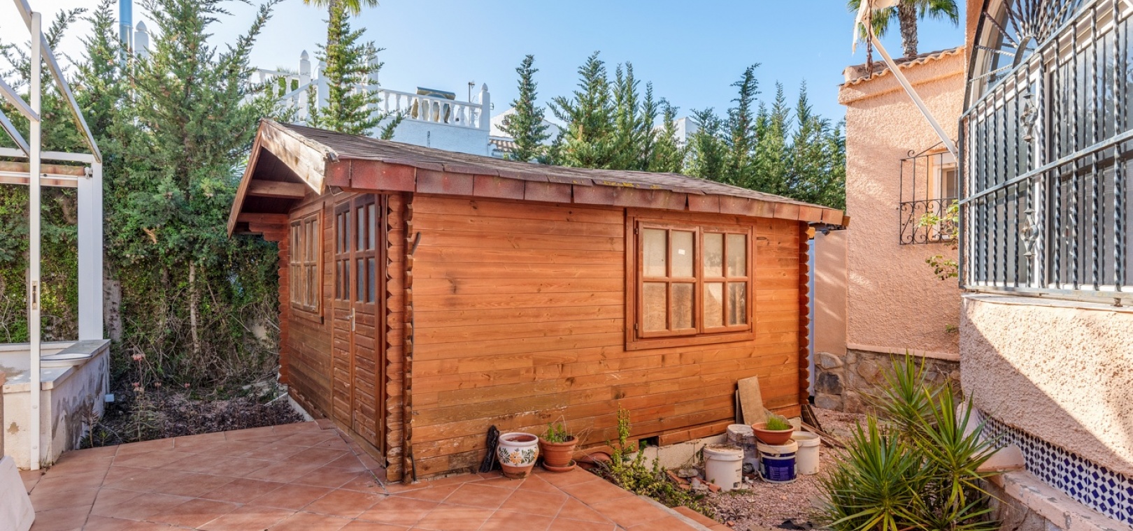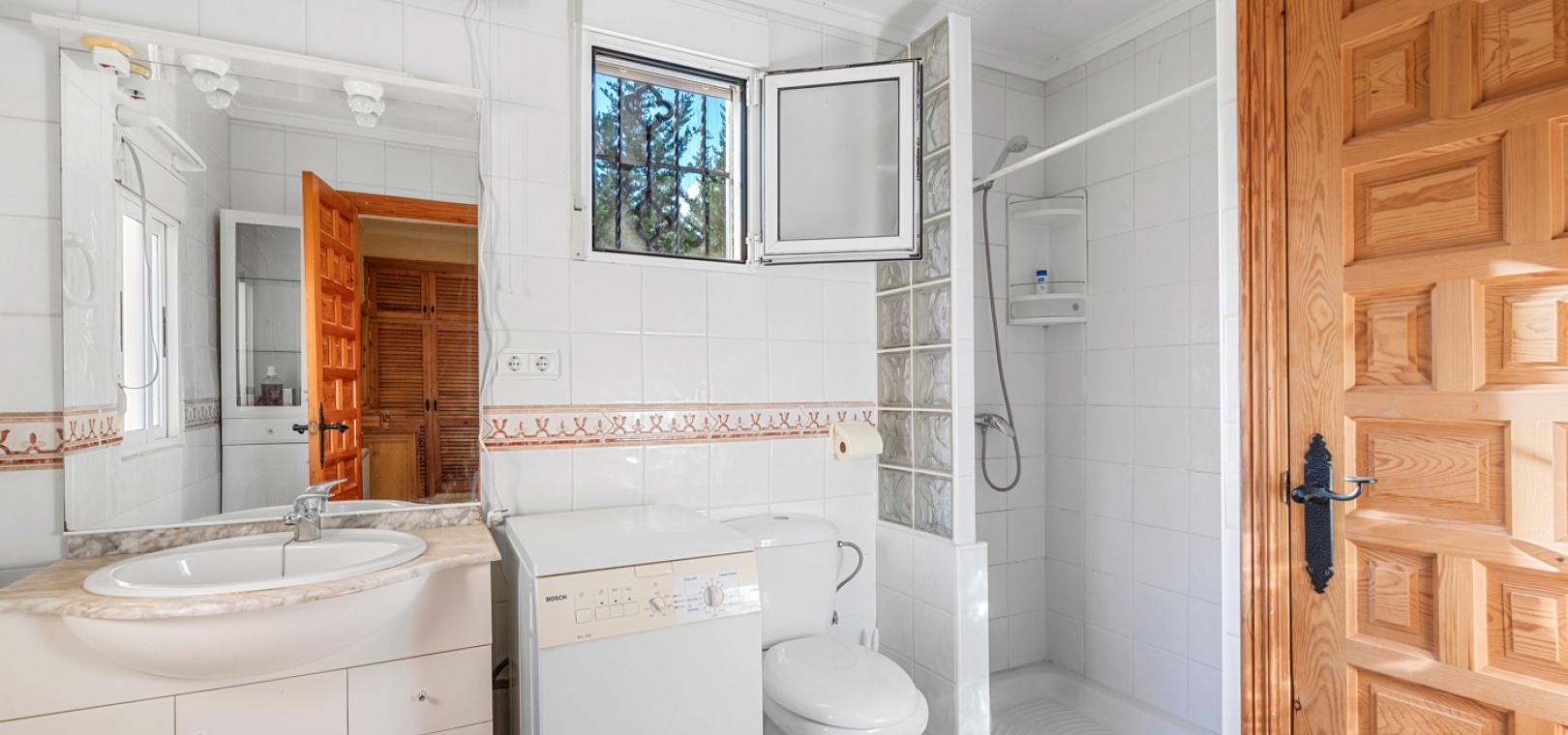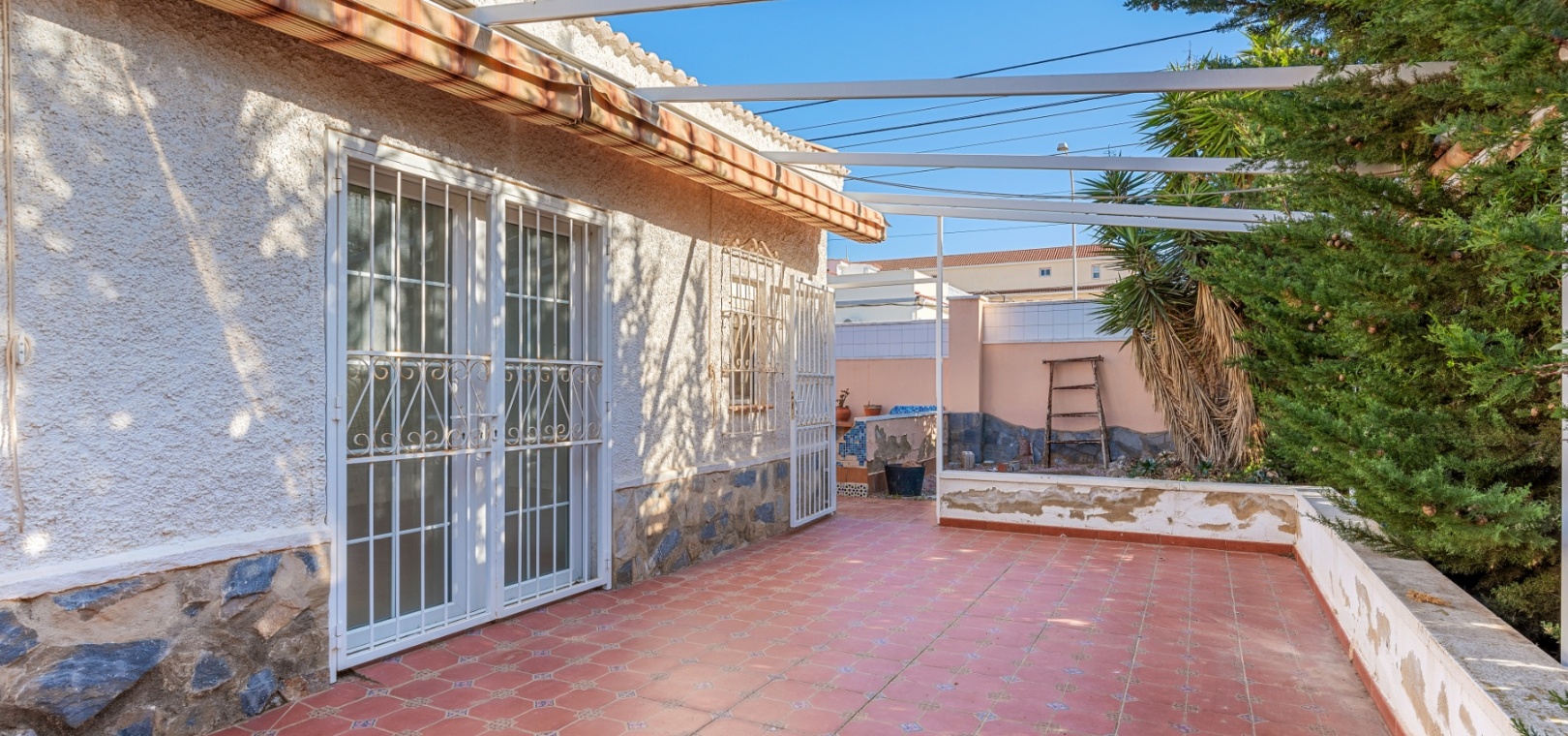 The main house offers a thoughtfully designed layout, ideal for comfortable family living. It features 3 generously sized bedrooms with plenty of natural light, creating inviting personal spaces. With 3 bathrooms conveniently located throughout the home, there’s no shortage of functionality. The living room is a spacious, bright, and cozy retreat, perfect for family gatherings or relaxing after a long day. The independent kitchen is well-equipped, offering ample countertop space and storage, making it a practical and welcoming space for cooking and dining. Its direct access to the outdoor area ensures seamless indoor-outdoor living, perfect for entertaining or enjoying the serene surroundings.