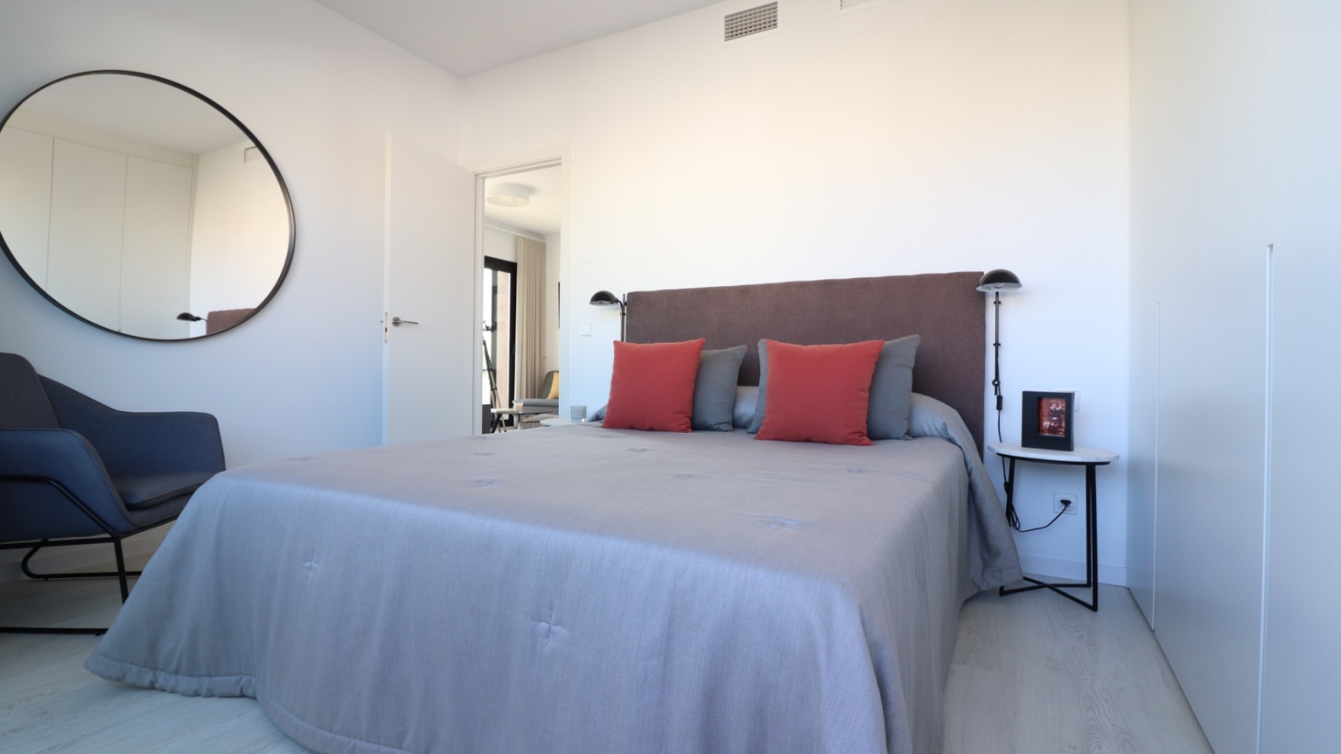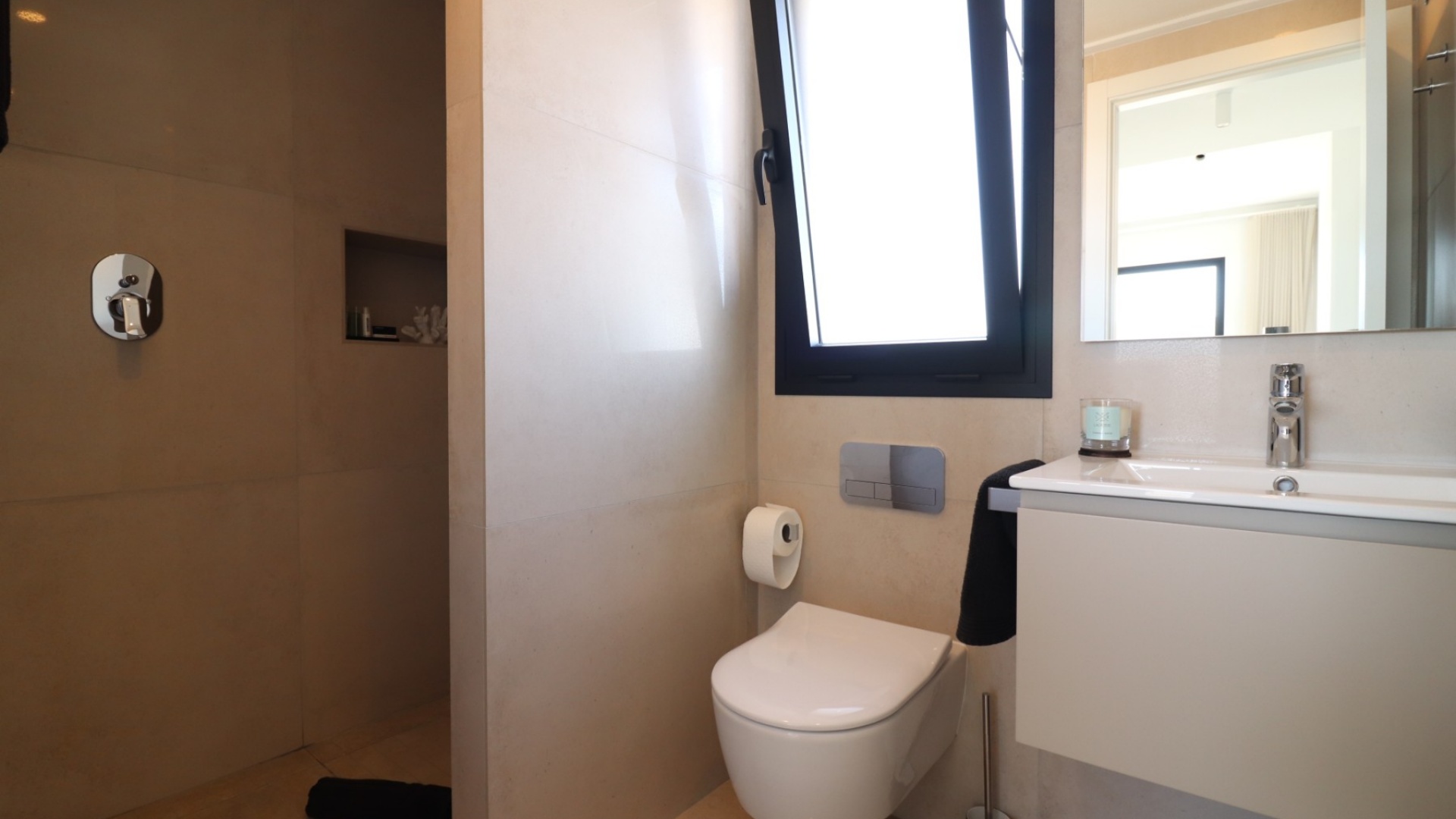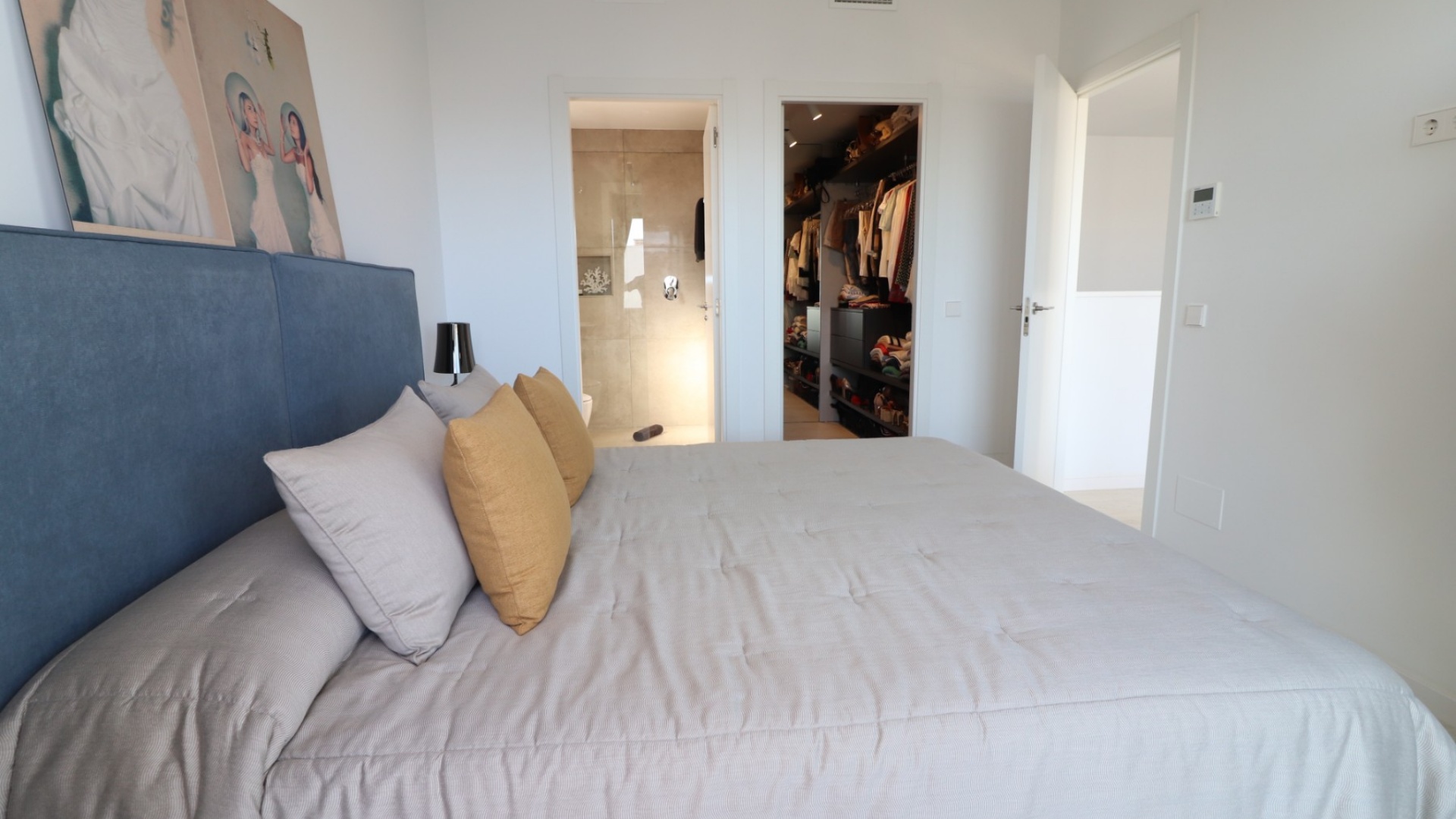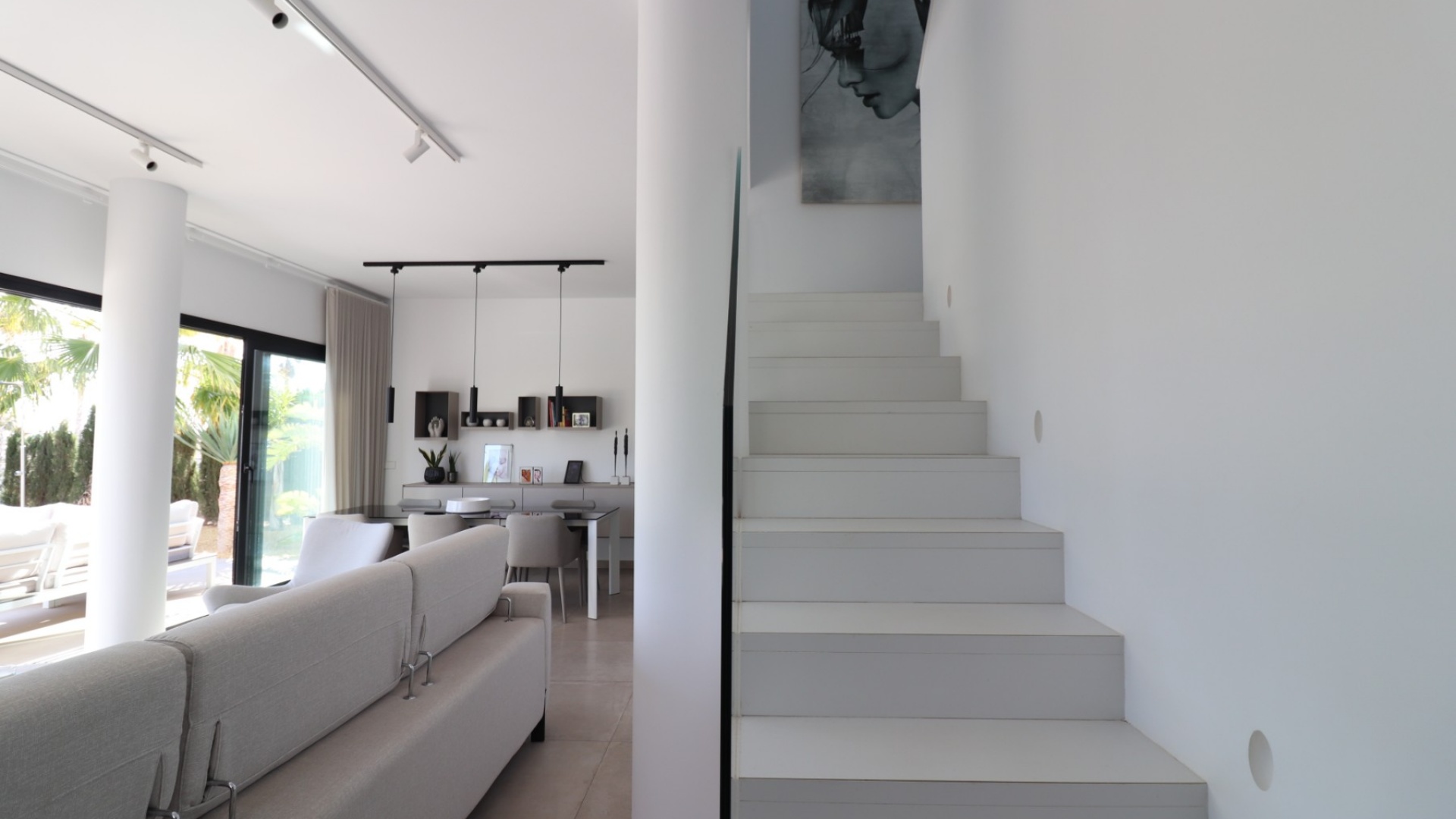 This Stunning, South East Facing, Three Bedroom, Detached Villa in Quesada, is located near the picturesque El Recorral park and within a 20-minute walk of the vibrant Quesada high street. Amenities such as an “essentials” supermarket, entertainment venue, restaurant, and bar are just a couple of minutes away. La Marquesa golf course is a few minutes by car with the beach reachable in 10-15 minutes. Built in 2021 and originally the show home, this property spans an impressive 160m2 and is finished to an exceptionally high standard. The villa enjoys views of the Sea, mountains, and salt lakes. The open-plan living area is bright and spacious, featuring wall-to-wall glazed sliding doors that open to the pool area. The modern fitted kitchen includes a breakfast bar, complemented by a separate utility room. On the ground floor, there is a double bedroom and a family shower room. Stairs from the lounge lead to the first floor, which houses two further double bedrooms. The master bedroom boasts walk-in wardrobes, and both bedrooms have access to terraces and en suite shower rooms. Additional features include ducted air conditioning and built-in wardrobes. The exterior is equally impressive, with a mix of tiled and grassed areas, a stunning 10 x 4 private pool pre-installed for heating, fir tree borders, and mature palm trees. There is also off-road parking, making this villa an ideal choice for a luxurious home in Costa Blanca South.