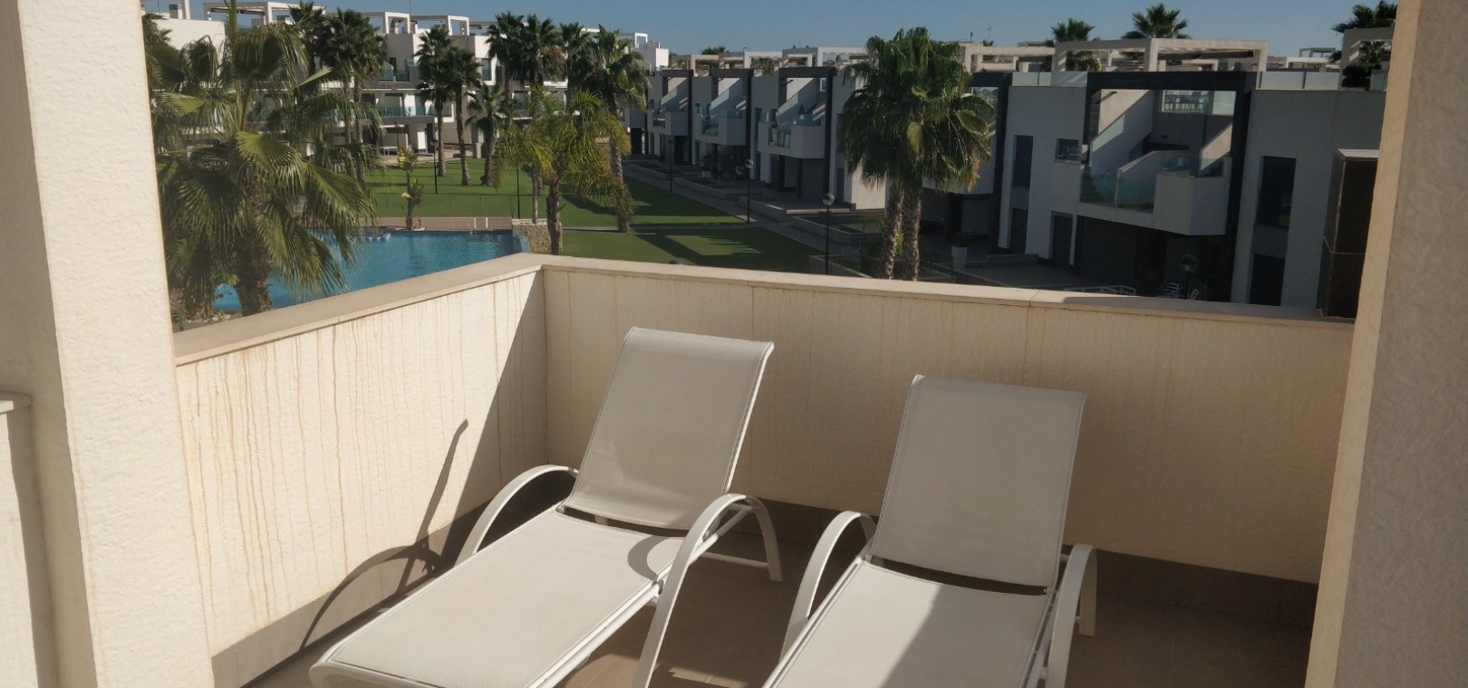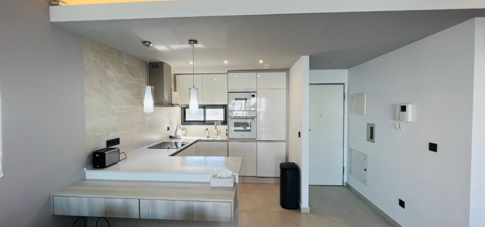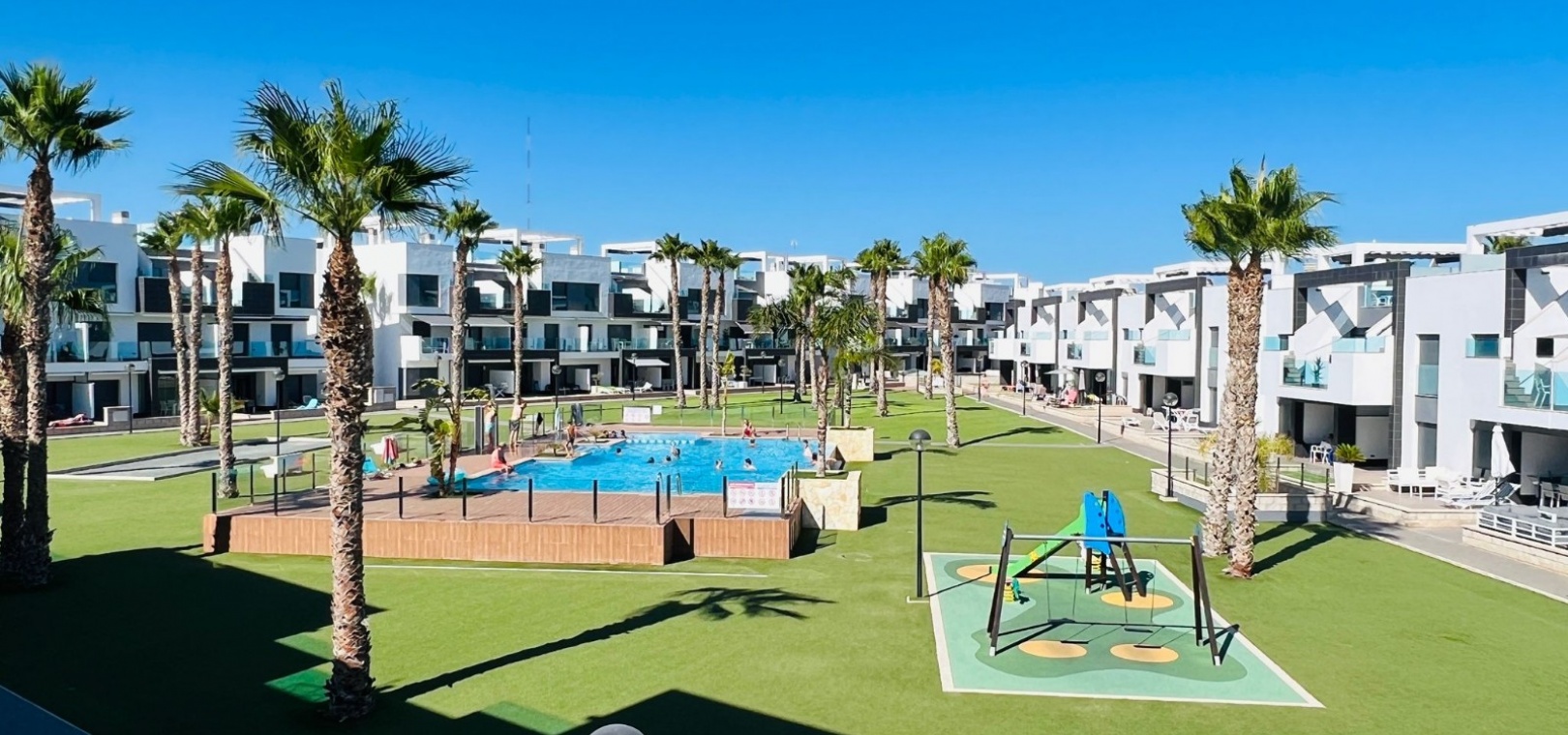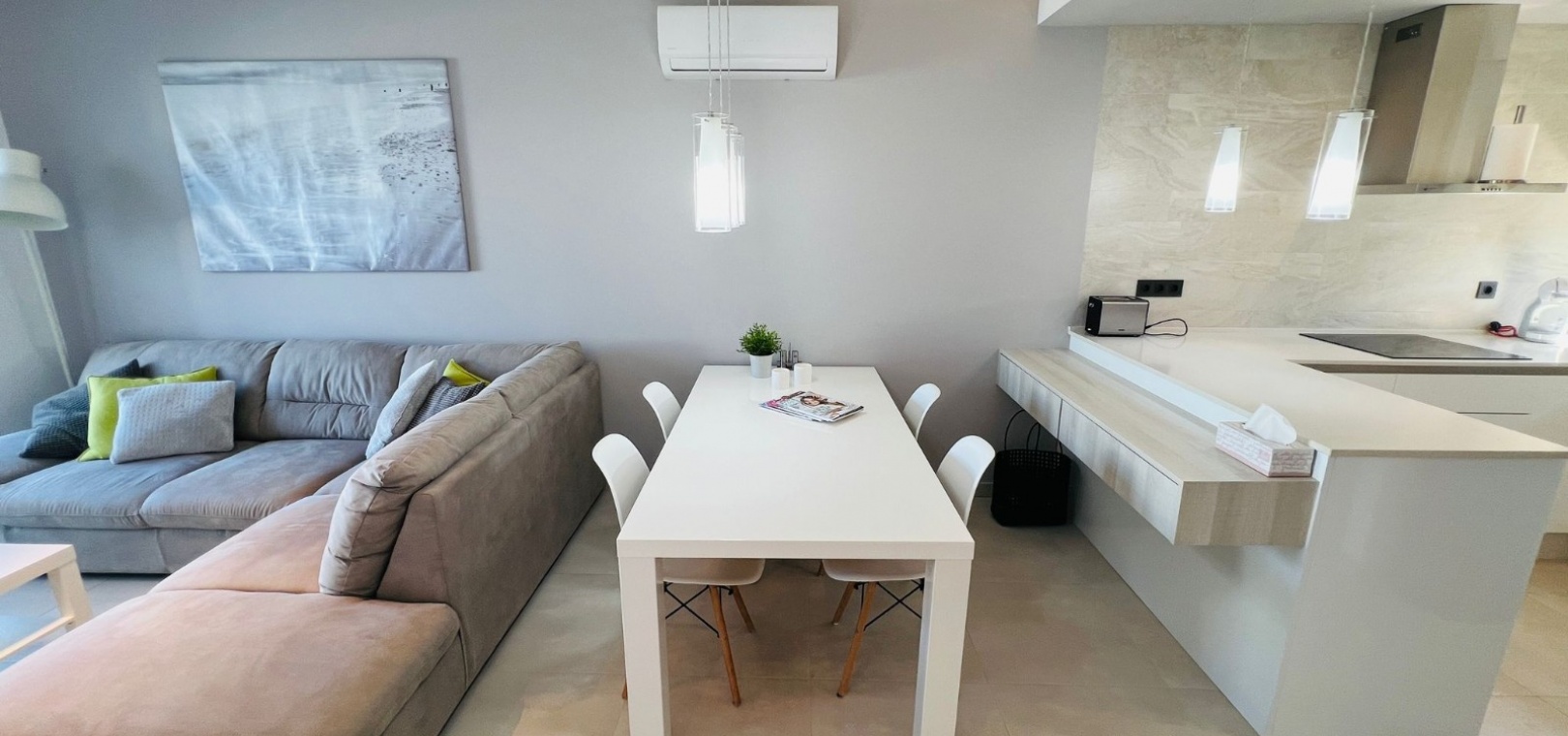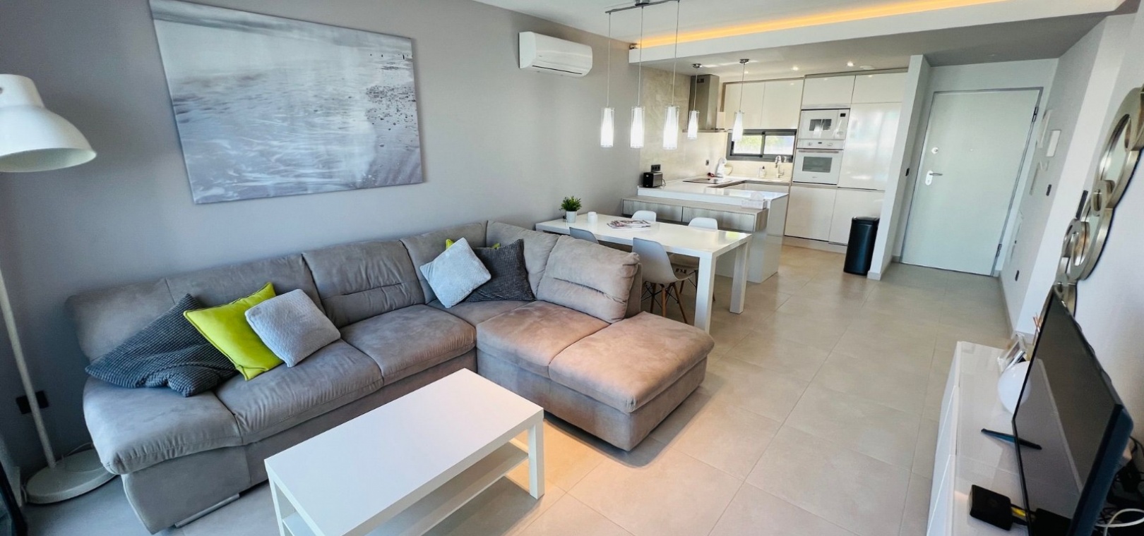 The apartment has an open kitchen and two fitted wardrobes that offer plenty of storage space. Located on the first floor with E-Se orientation, you can enjoy beautiful views and natural light all day long. It also has a huge solarium of 68 m2, ideal for dining and socializing on warm summer evenings. Other included extras include air conditioning, an underground parking space and the property is sold furnished with white goods. Residents have access to fantastic amenities including a community pool, spa, fitness center and indoor pool. The resort also has an exotic atmosphere with a garden full of palm trees, creating a peaceful and tropical atmosphere.