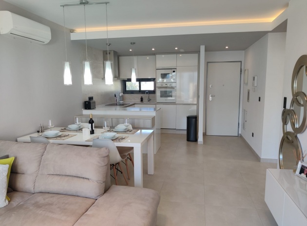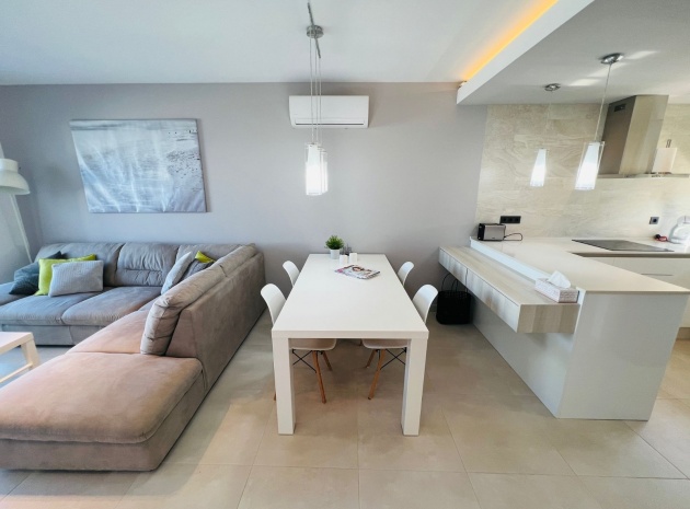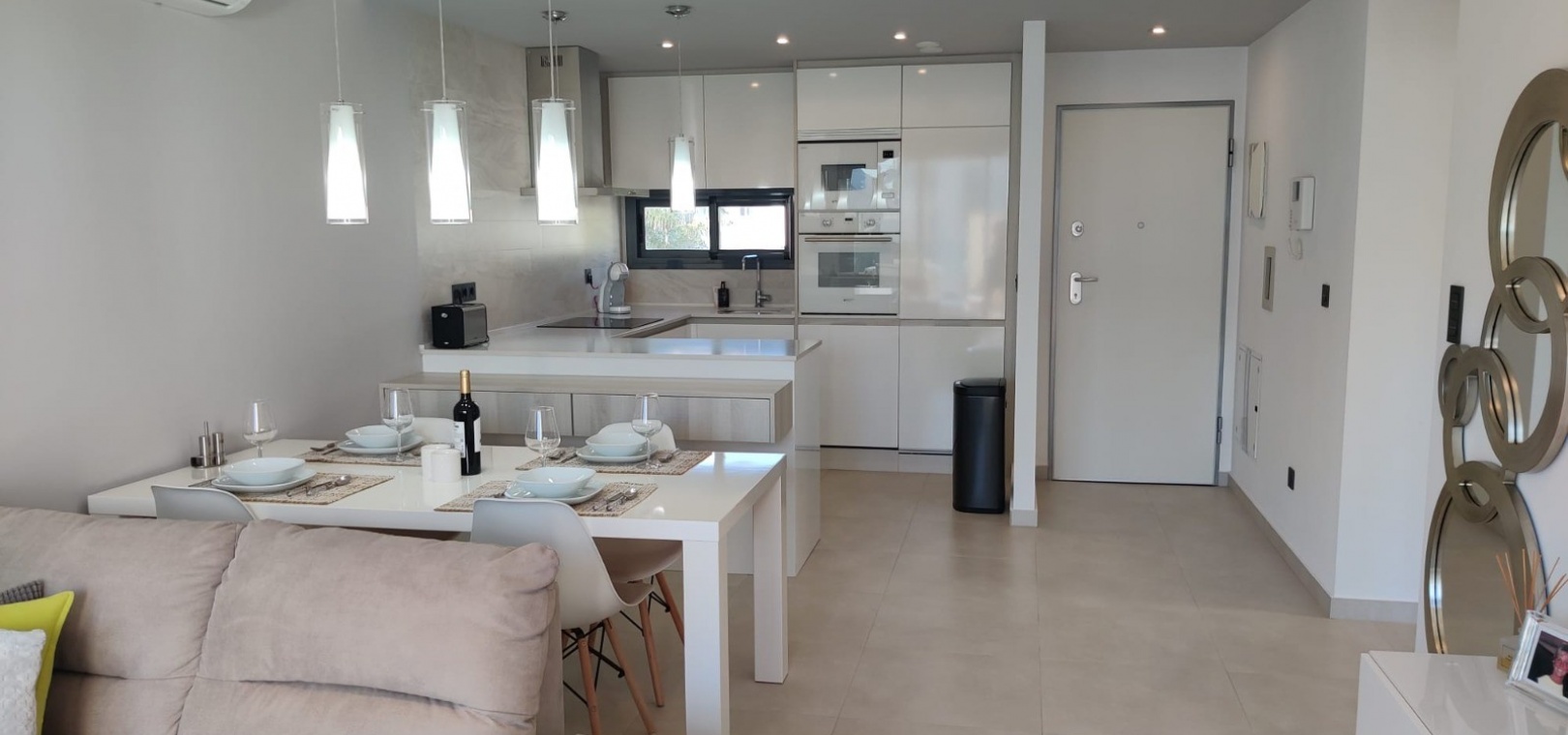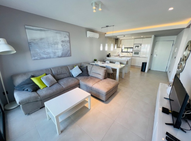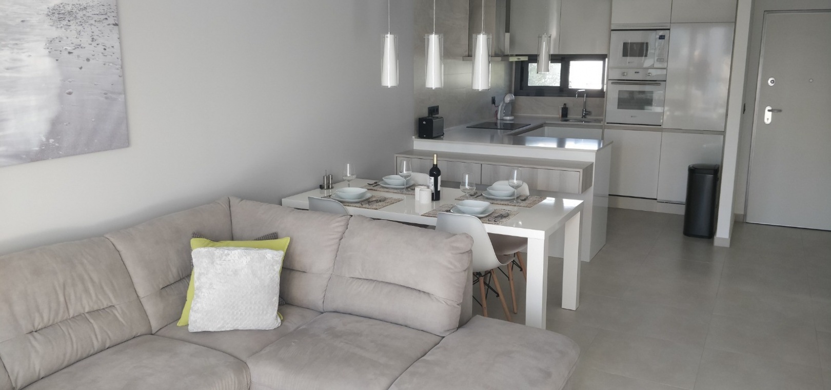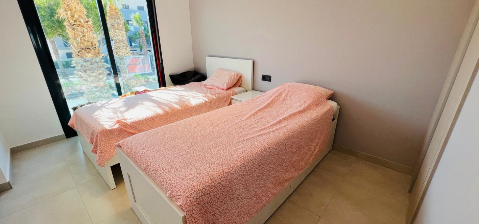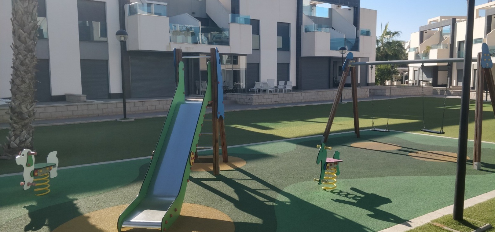 The apartment has an open kitchen and two fitted wardrobes that offer plenty of storage space. Located on the first floor with E-Se orientation, you can enjoy beautiful views and natural light all day long. It also has a huge solarium of 68 m2, ideal for dining and socializing on warm summer evenings. Other included extras include air conditioning, an underground parking space and the property is sold furnished with white goods. Residents have access to fantastic amenities including a community pool, spa, fitness center and indoor pool. The resort also has an exotic atmosphere with a garden full of palm trees, creating a peaceful and tropical atmosphere.