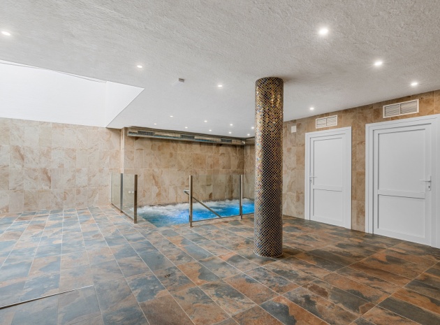 2 bedrooms, both with built-in wardrobes2 bathrooms, one of which is en suite to the master bedroom, both with a rain shower, sink, and toiletSpacious living and dining areaFully equipped open kitchen with refrigerator, freezer, oven, microwave, dishwasher, hob, extractor fan, and washing machineAir conditioning, mosquito nets, and electric shutters in both the bedrooms and living roomTerrace (12 m²)Rooftop terrace (66 m²) with sun awning and outdoor showerUnderground parking spaceSpa, sauna, and fitness roomLarge communal swimming pool in an expansive gardenFully furnished, including all accessories (plates, glasses, cutlery, etc.)