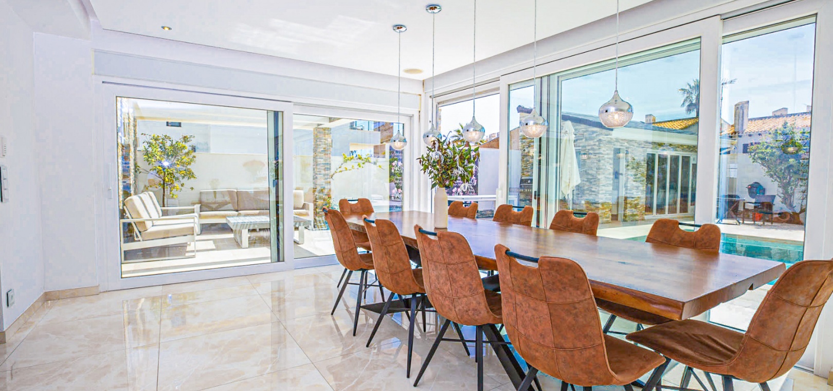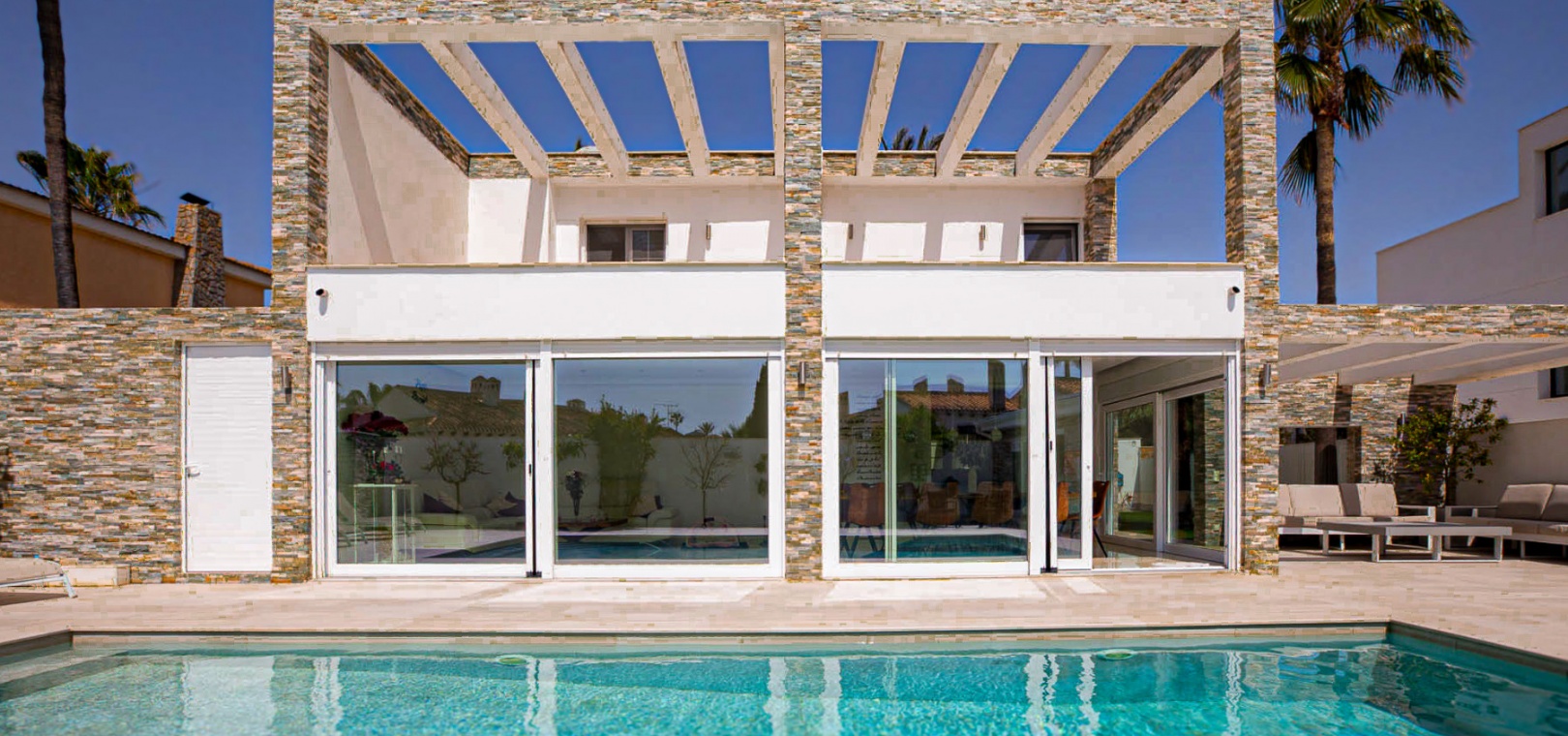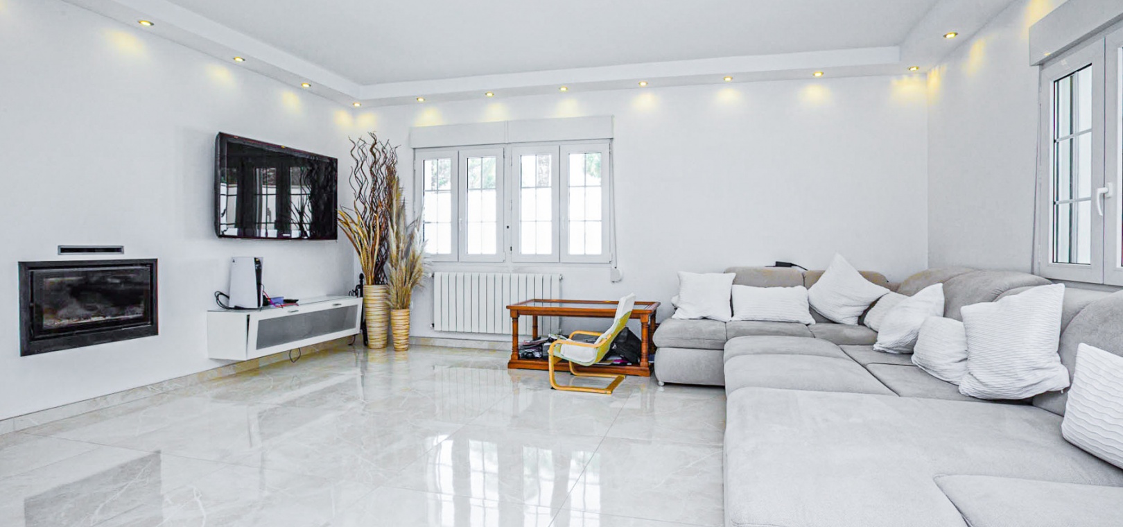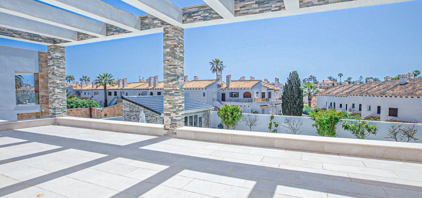 Boasting a total of 4 double bedrooms and three beautifully renovated bathrooms, this modern villa also features an outstanding lounge and dining area with picture windows that lead to a stunning terrace. The terrace is the perfect spot to soak up the sunlight and breathe fresh air, while the luxury fully fitted open plan kitchen is an absolute delight for all aspiring chefs.