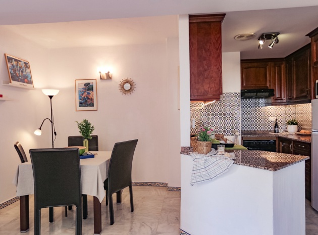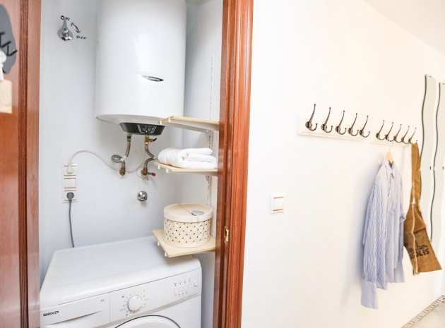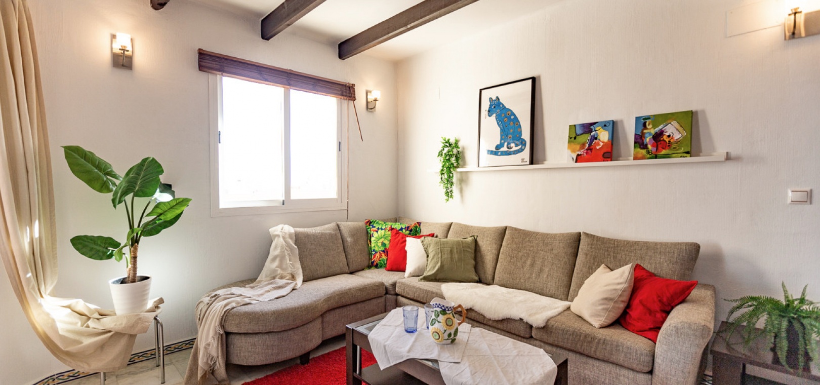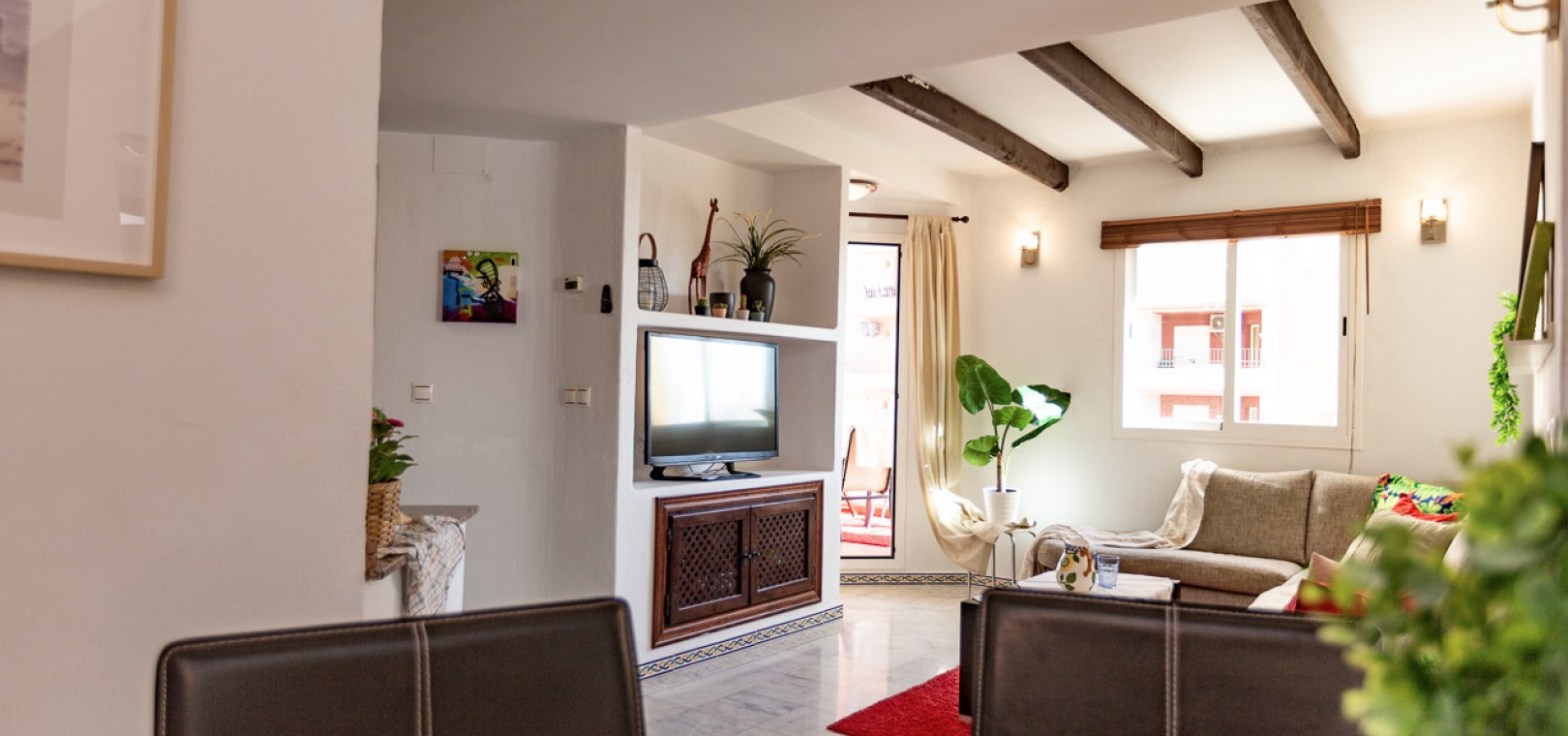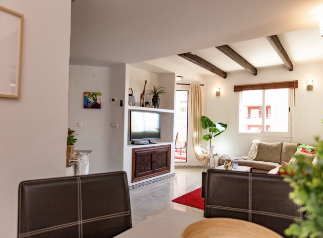 Ideal location, amenities and the beach within walking distance! This apartment combines traditional style with beachside living, with a living space of 80 m². It features an open-plan living and dining area, a charming kitchen, 3 spacious bedrooms, and 2 bathrooms. Enjoy the sun on your private balcony with stunning sea views. The property is sold partly furnished. Built in 2007, the complex includes 2 communal pools, a children's park, and beautiful shared spaces.