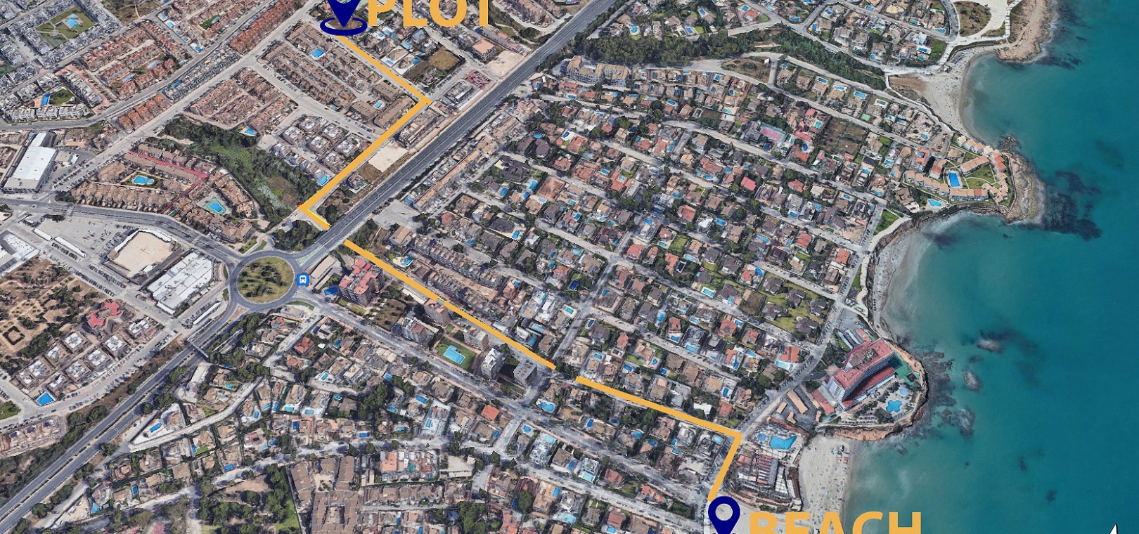 The plot benefits from a first-class Mediterranean location, just 750 m away from some of the finest Blue Flag accredited beaches in the South Costa Blanca. Plentiful local services, such as café-bars, restaurants, shops and supermarkets are all within easy reach. Zenia Boulevard, the largest shopping centre in the locale is just a few minute's walk away.