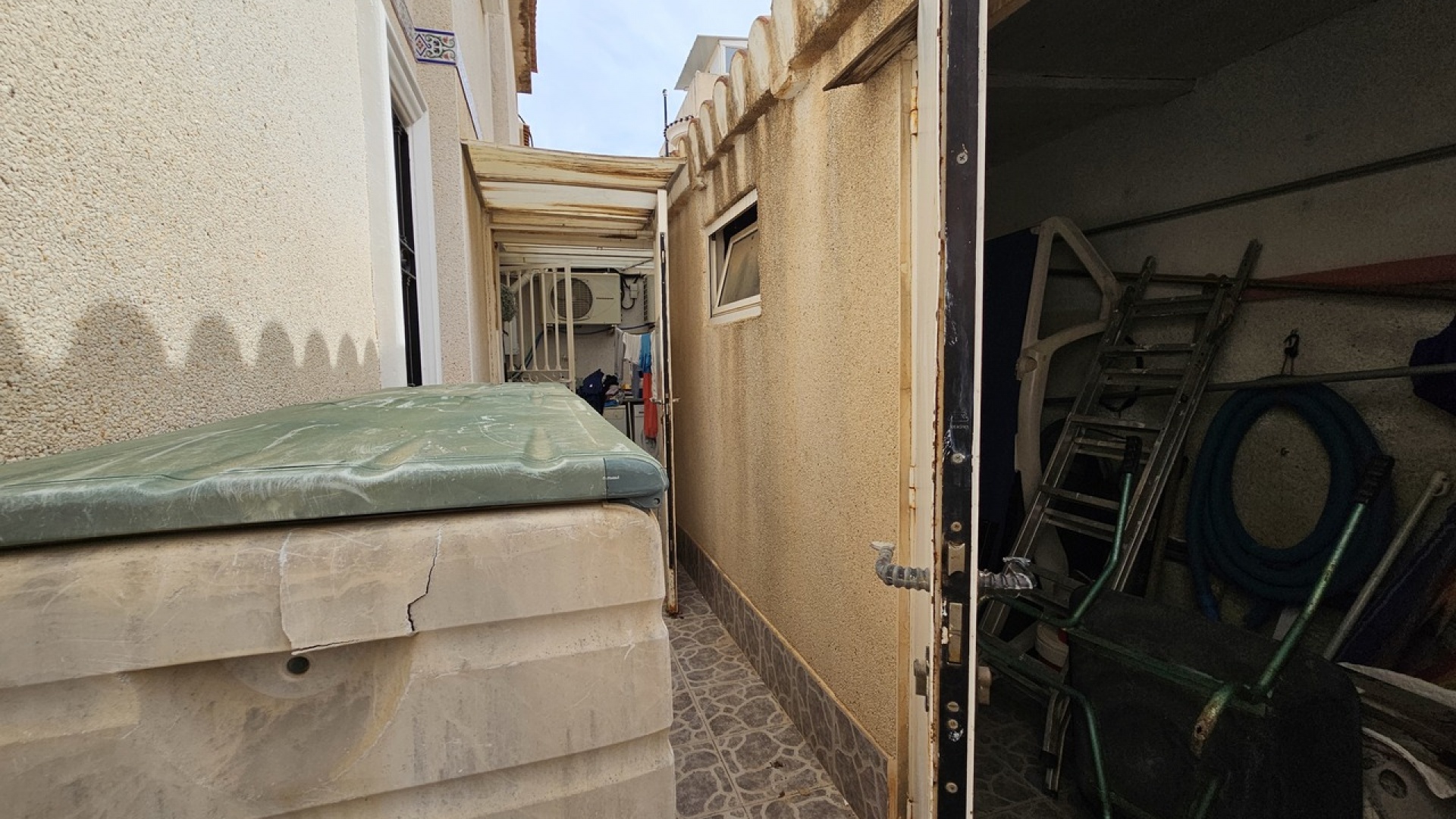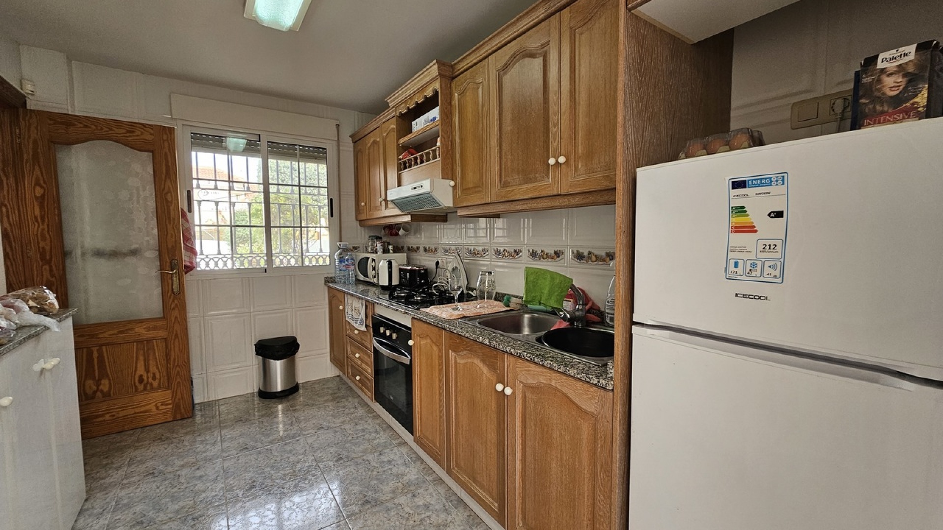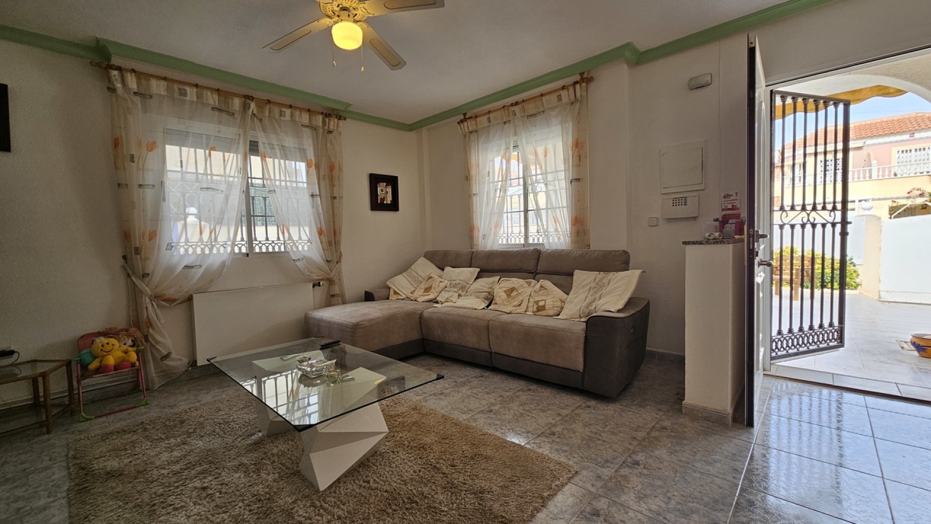 Very spacious 4 bedroom, 2 bathroom link attached villa for sale in El Galan, just a stones throw and short walk from Villamartin and all of the amenties including numerous restaurants and convenience stores, Villamartin golf course and The Plaza along with La Fuente commercial centre, supermarkets and wine bars.This villa has been across two levels and sits on an ample plot with private swimming pool, off-road parking and driveway and views towards the Mediterranean from the private and sunny solarium. Inside, there is a huge living and dining room with two windows providing lots of natural light. There is a fully equipped independent kitchen with access to the utility room and a very useful shed located at the back of the plot. On the ground of the villa is a large double bedroom and a guest bathroom with shower. Upstair there are two more double guest bedrooms (one with access to the solarium), the family bathroom and a huge master bedroom which also has access to the solarium with stunning views over the plot and swimming pool and out towards the sea. This property is sold fully furnished as seen with many extras including air-conditioning, a central heating system and a brand new boiler.