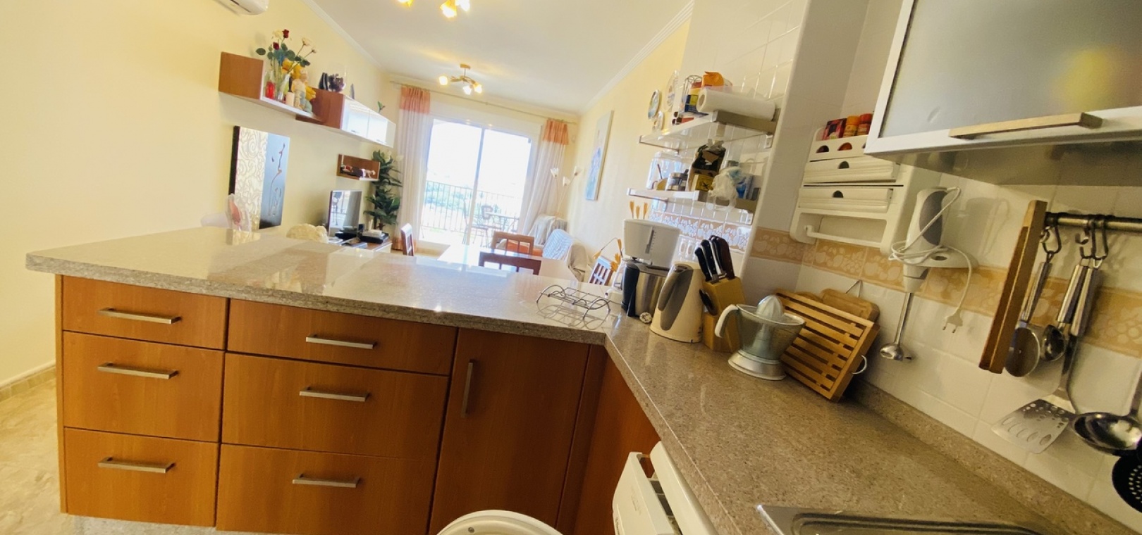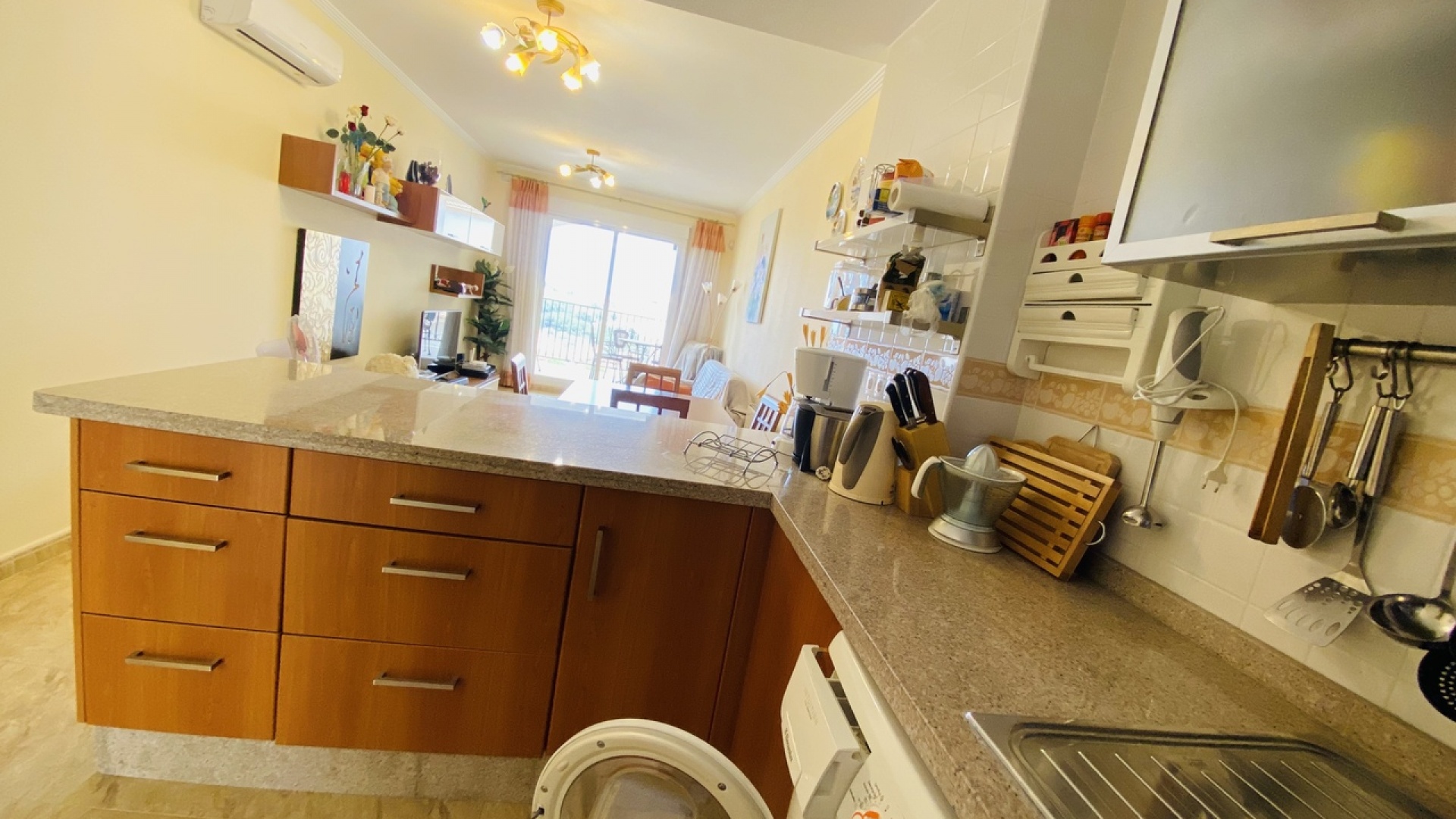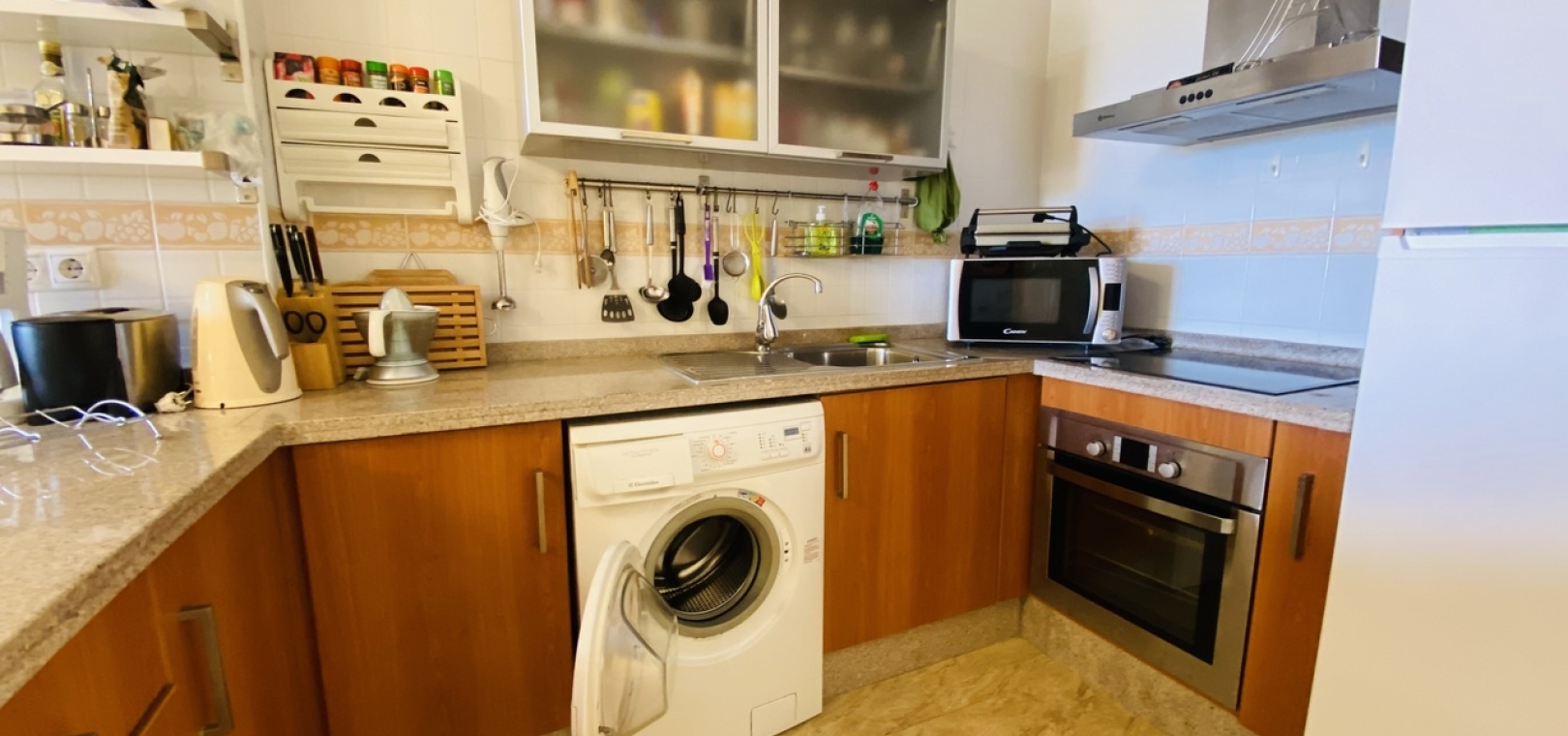 Very nice penthouse in Spanish style with personal solarium in recreational zone close to the Mediterranean sea.2 bedrooms, 2 bathrooms, medium terrace, living room with open kitchen & your own solarium with stairs inside the penthouse will make You happy to spend all year in this place. The standart place in the underground parking is included in the price.