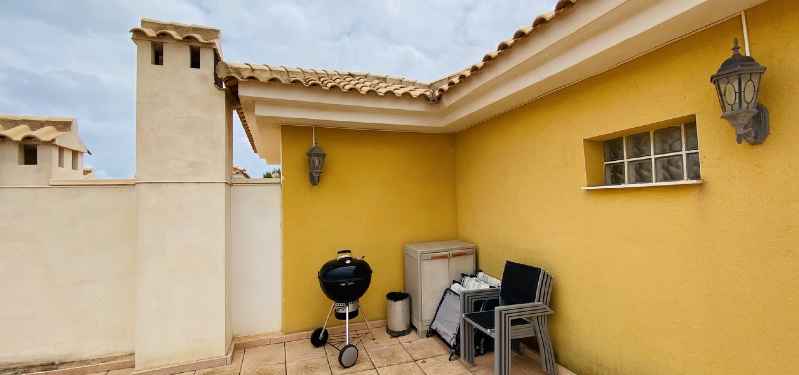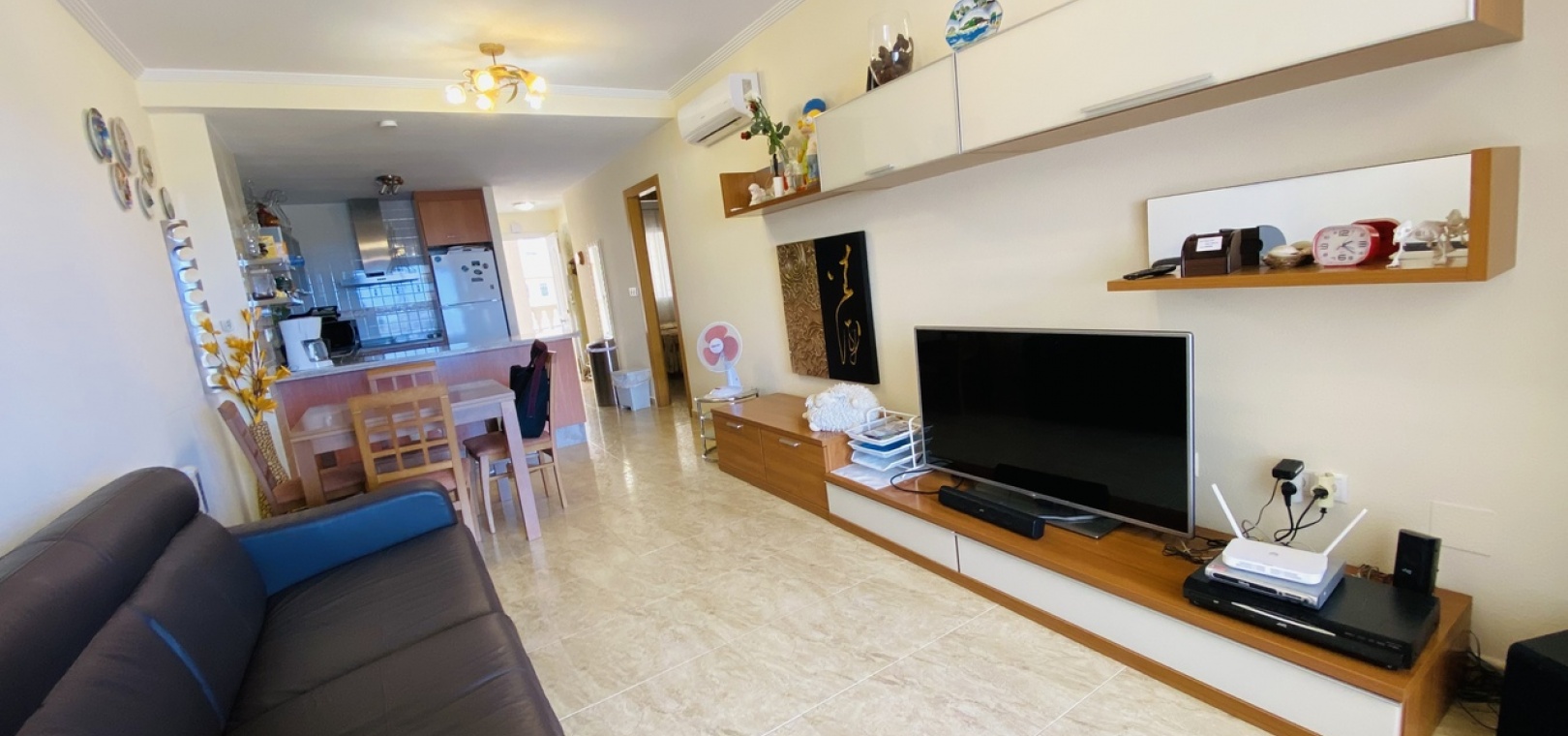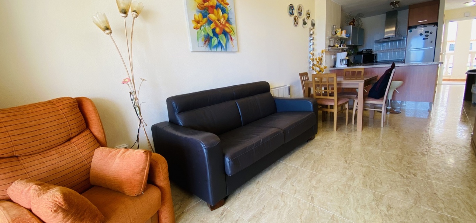 Very nice penthouse in Spanish style with personal solarium in recreational zone close to the Mediterranean sea.2 bedrooms, 2 bathrooms, medium terrace, living room with open kitchen & your own solarium with stairs inside the penthouse will make You happy to spend all year in this place. The standart place in the underground parking is included in the price.