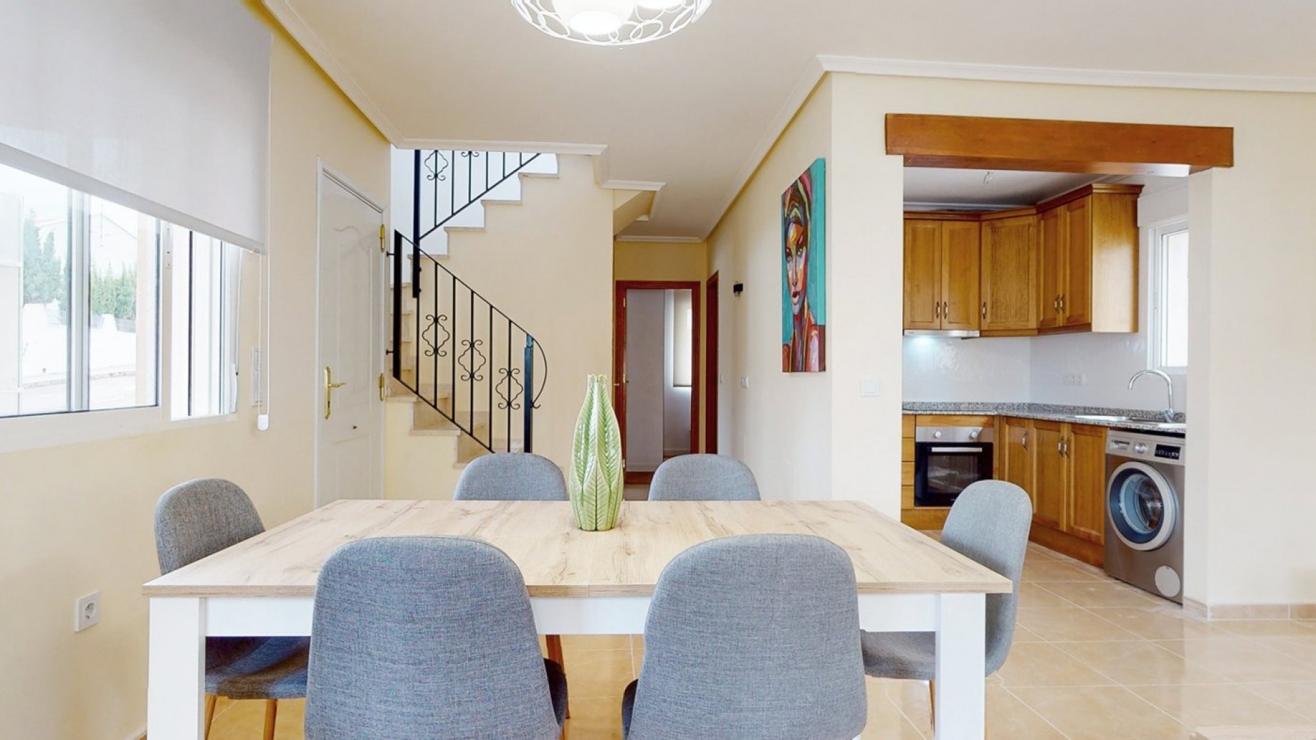 These wonderful 163m2 detached villa is the only one remaining within this lovely development, it consists of 3 bedrooms, 2 bathrooms, an open plan spacious Kitchen/lounge/dining area, large basement space of 66m2 and large garden area. The property is located in the traditional Spanish village of San Miguel de Salinas, in a lovely rural setting but only minutes away from all amenities! On entrance to the property, you have a large covered terrace area perfect for outside dining, on the first floor you have the spacious open plan Kitchen/lounge/dining area, there are 2 double-sized bedrooms with fitted wardrobes and a bathroom with bathtub. On the second floor is the master bedroom which has a lovely en-suite bathroom with shower and patio doors leading out to an open terrace area with lovely communal and rural views, a wonderful place to watch the sunset. The property has a fabulous basement area of 66m2, with this you could add an additional two bedrooms, such a spacious area at your disposal there are countless possibilities!