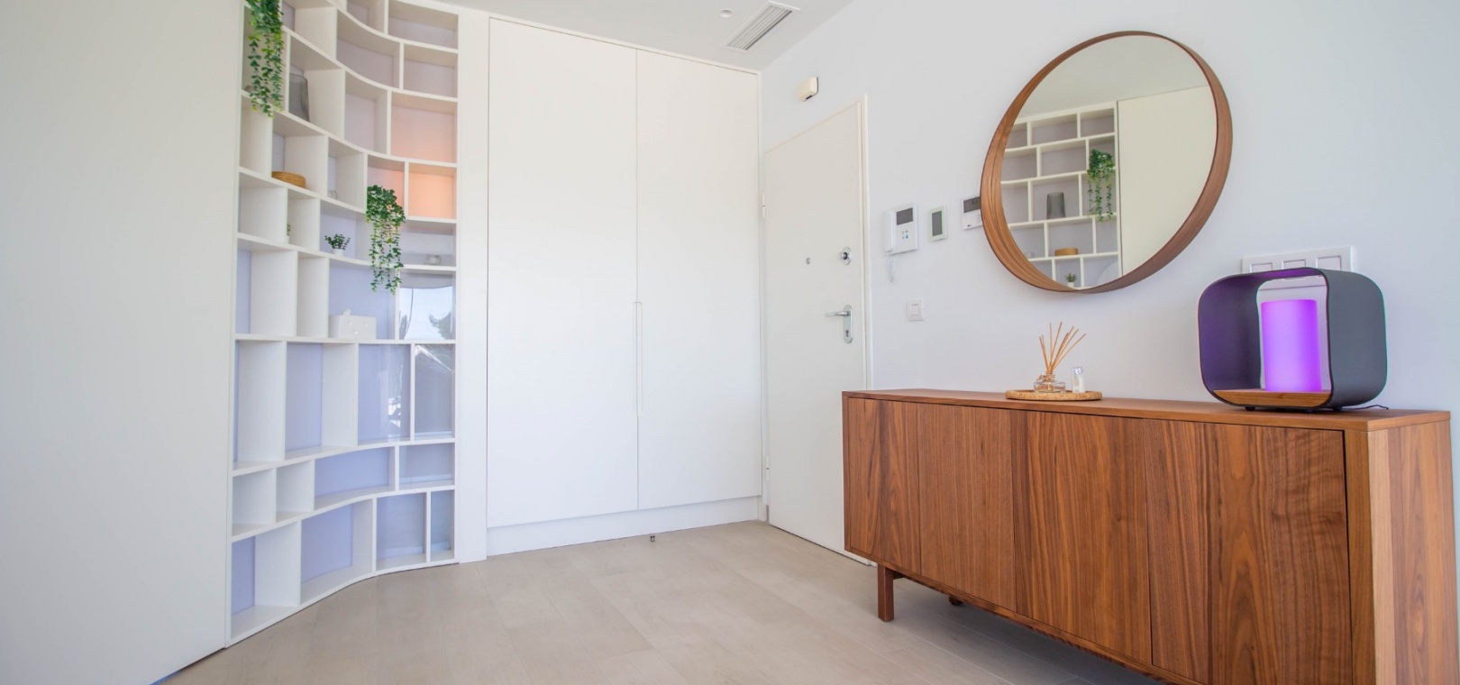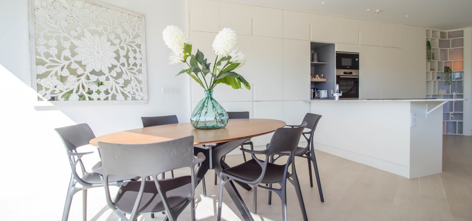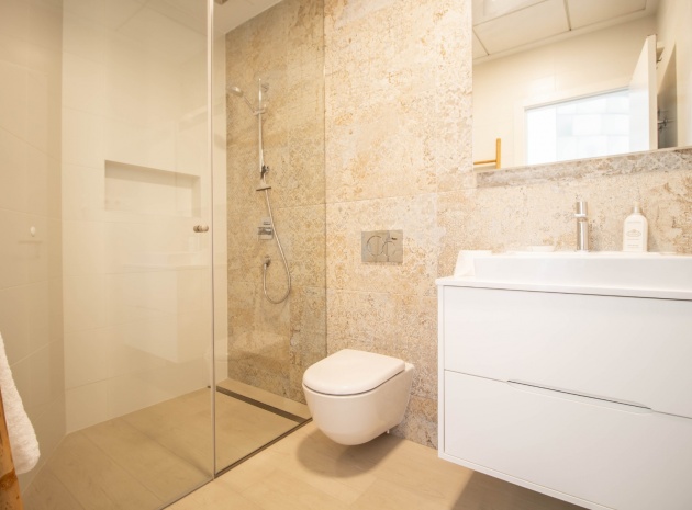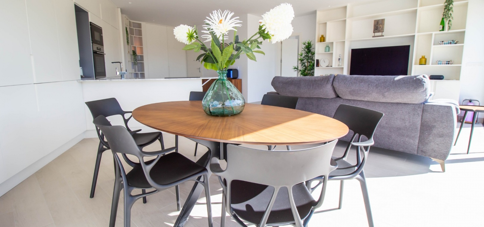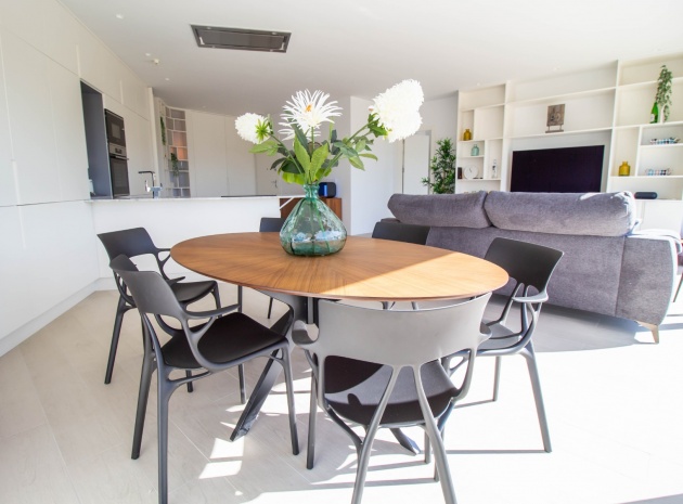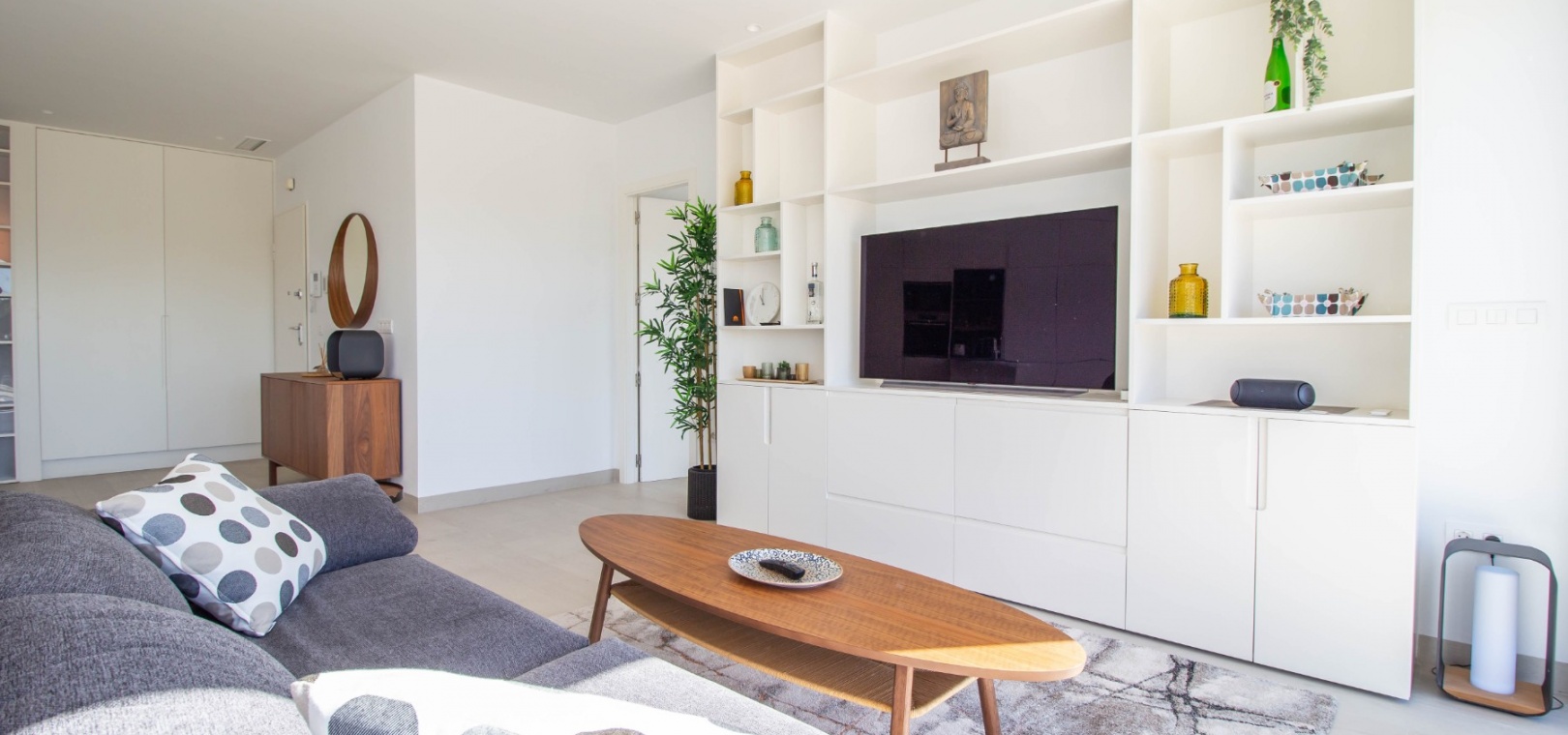 A South Facing, Three Bedroom, First Floor Apartment in Las Colinas Golf Resort, a prestigious 5* resort, with clubhouse, restaurant, bar and supermarket. Just five minutes by car and you have all the amenities of San Miguel de Salinas; 10 minutes and you have Villamartin or even Campoamor and the coast with an array of amenities and beaches. This spacious apartment, built in 2000, of some 110m2 offers open plan living, with the lounge/dining area benefitting from wall to wall sliding doors which lead straight out to the most incredible terrace, relax whilst enjoying a peaceful view across a forest area and distant sea view; modern fitted kitchen area; three double bedrooms with built in wardrobes, master with terrace and en suite bathroom; further family shower room. The complex includes a lift and a stunning communal pool area, plus extras included with the property include: ducted air conditioning, under floor heated bathrooms, home automation, feature secret door which closes off the bedrooms, a 12m2 underground parking space and 8m2 store room.