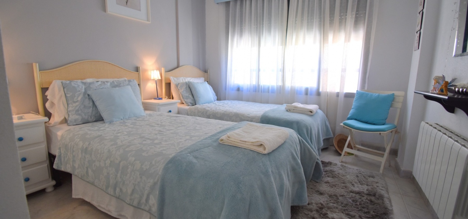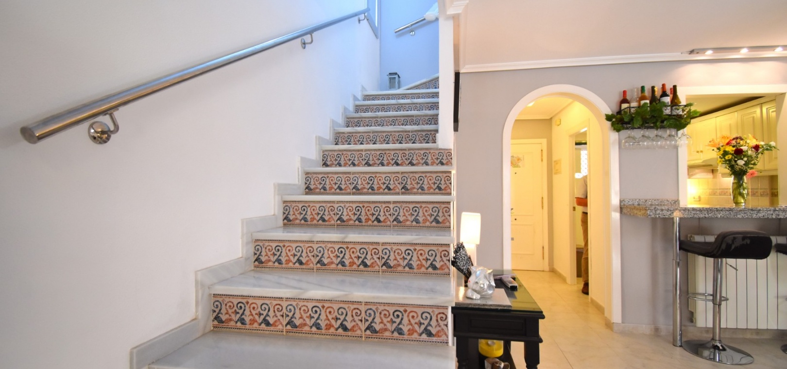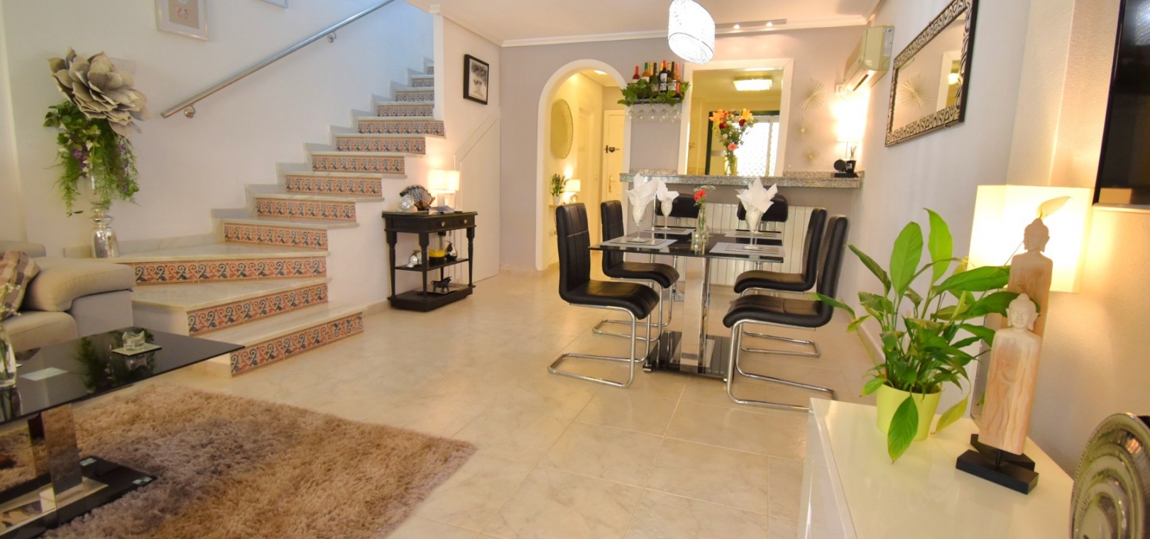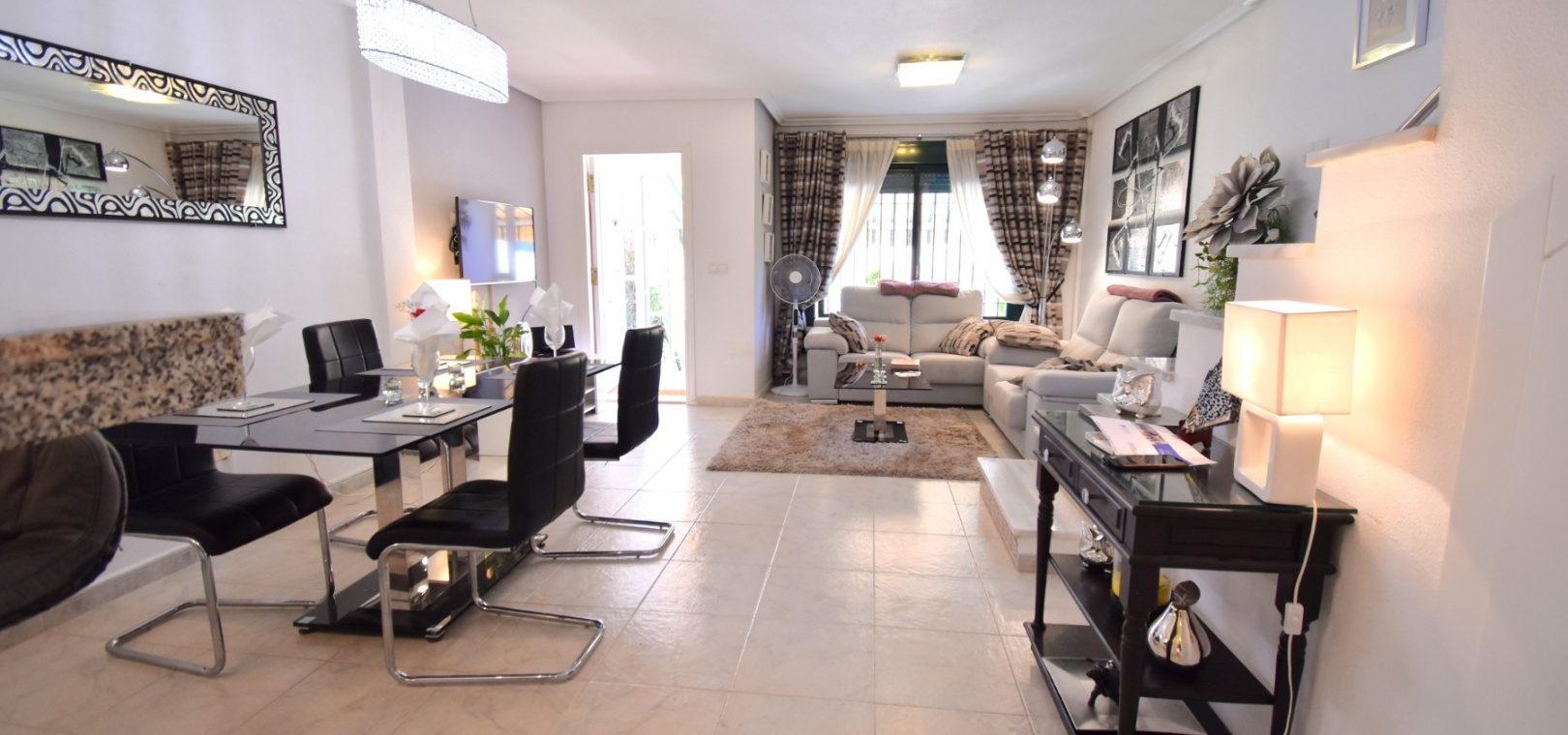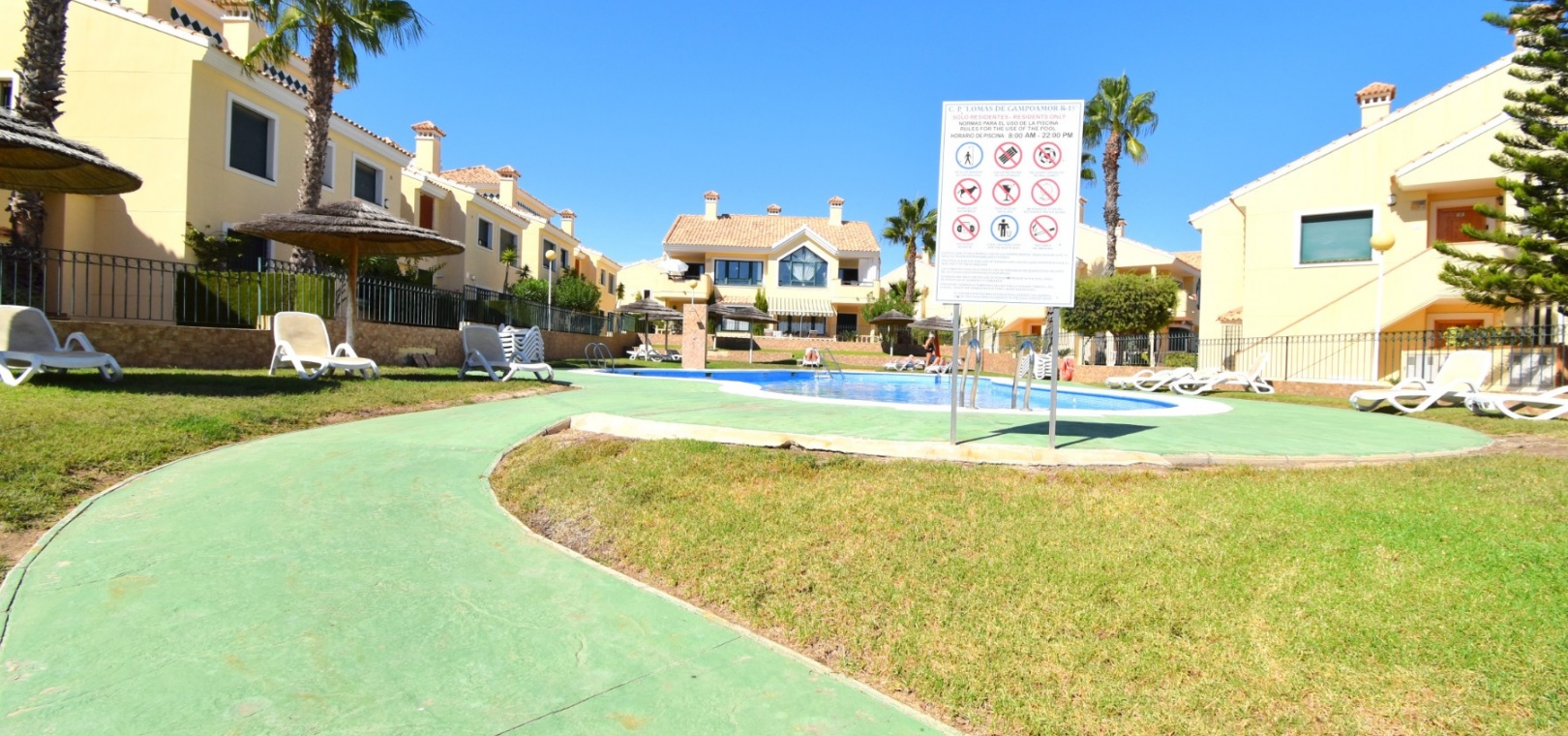 This South Facing, Two Bedroom Townhouse in Campoamor is located within a 10 minute walk of amenities and facilities, next door to Campoamor Golf Course, and just a 10 minutes drive from the beach. The property features a separate kitchen with an adjoining utility room, air conditioning in the lounge dining room and one bedroom, with both bedrooms having ceiling fans. One of the bedrooms leads out to a private terrace. Outside, there are front and rear gardens, a private solarium, off-road parking, and urbanization garden views. The home includes one shower room, one cloakroom, central heating, and natural gas. Situated in Orihuela Costa, Costa Blanca South, this townhouse offers comfort and convenience in a prime location.