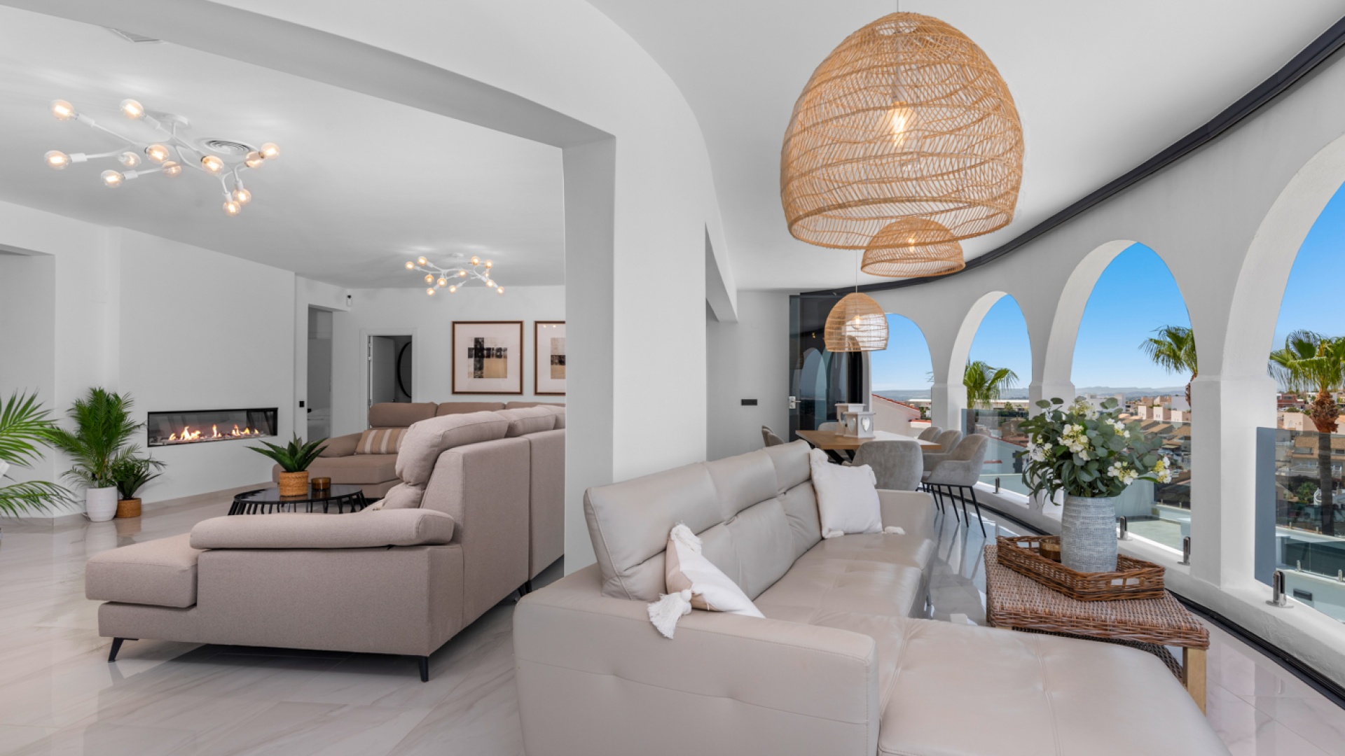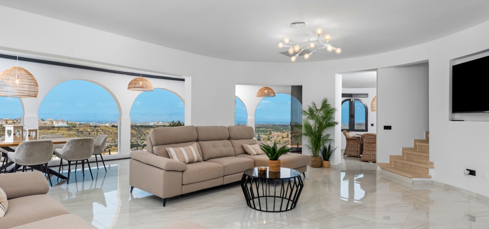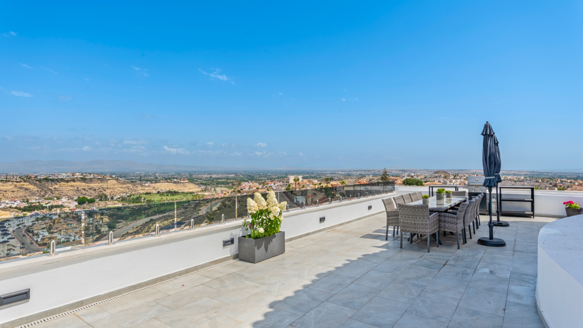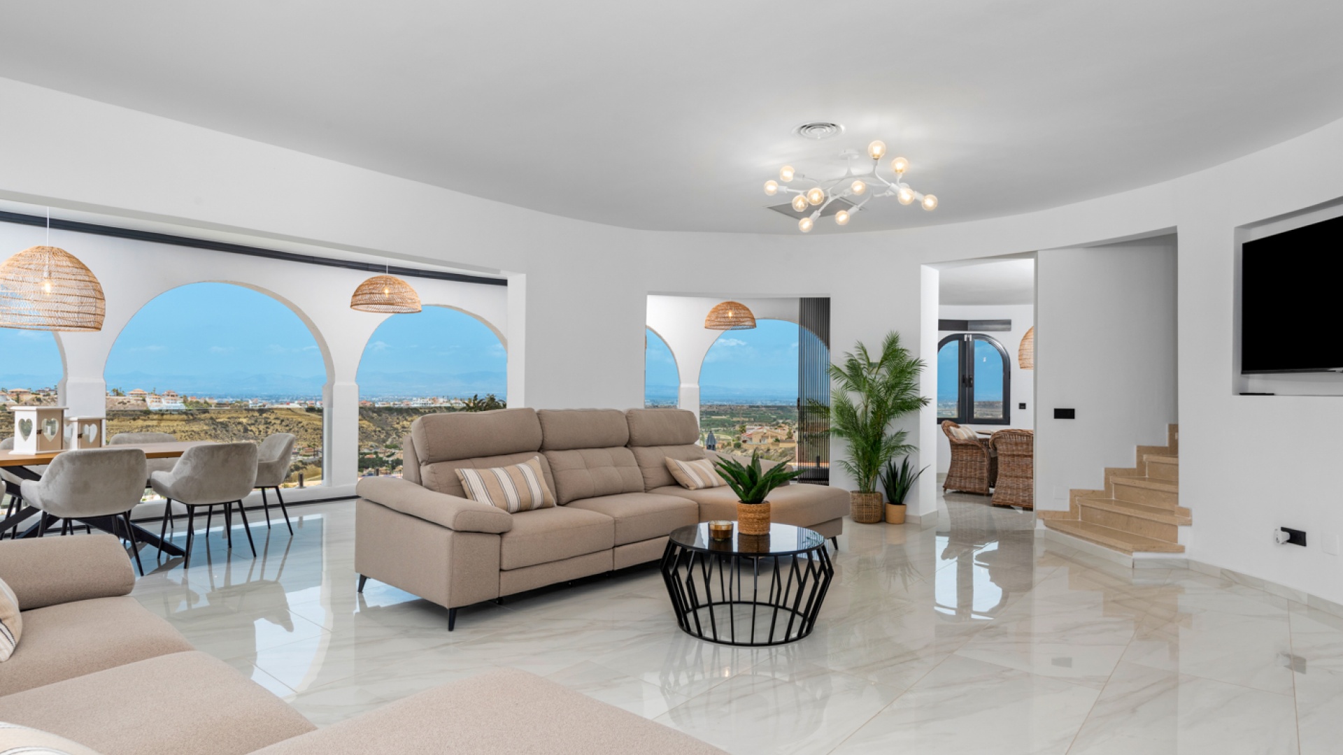 The property lies on a big plot and has amazing panoramic views over the salt lakes, the golf courses and the sea.