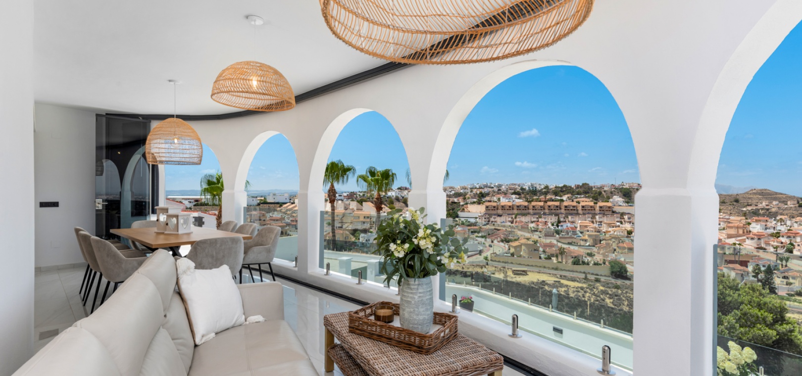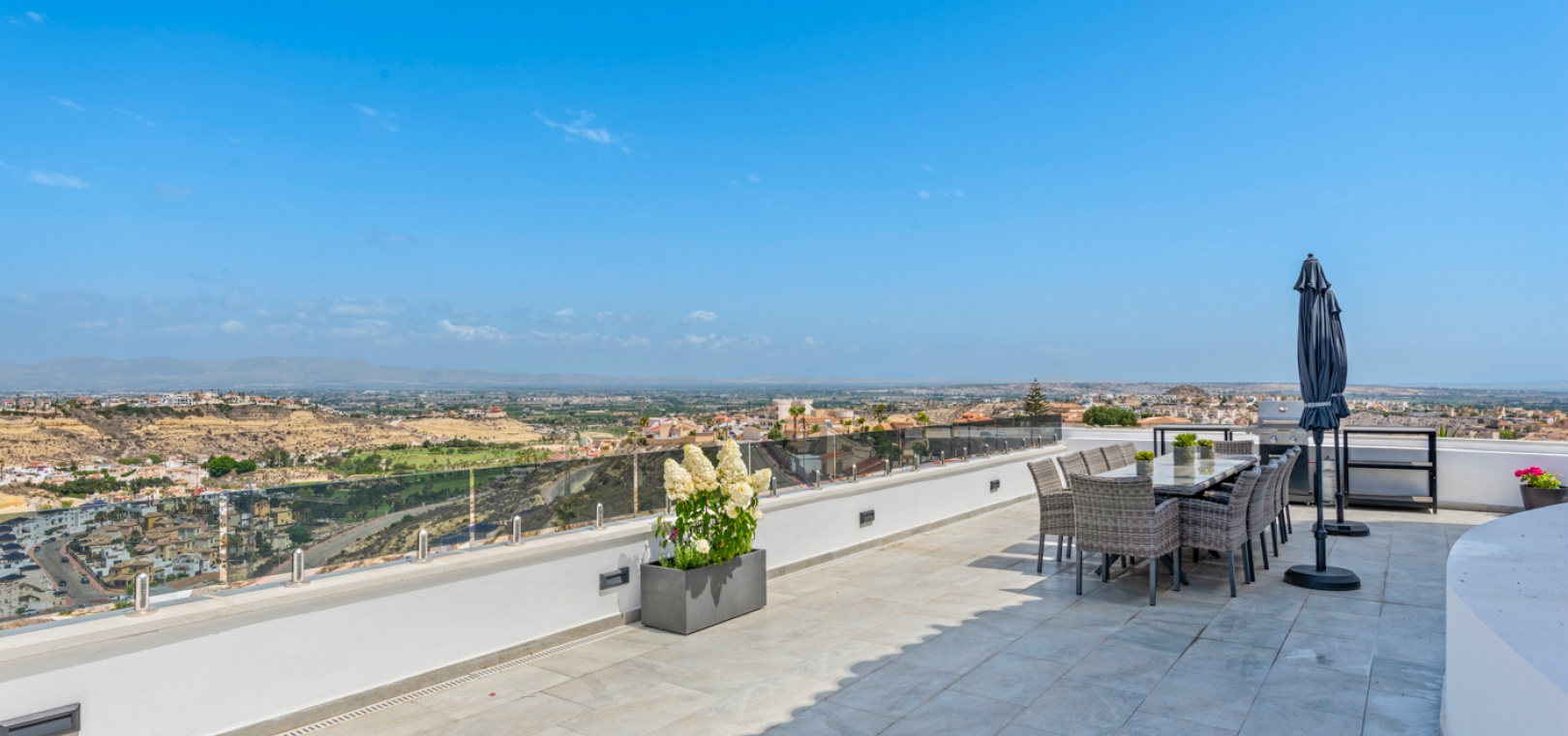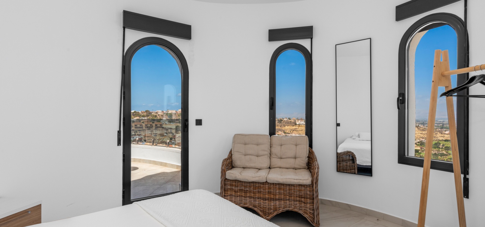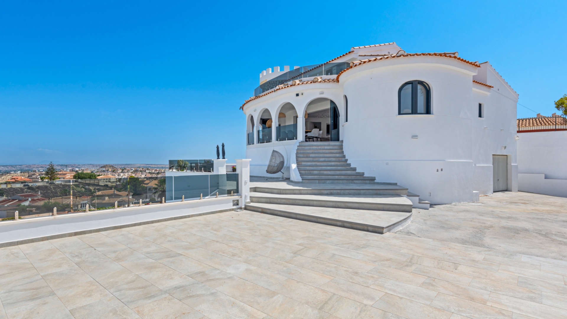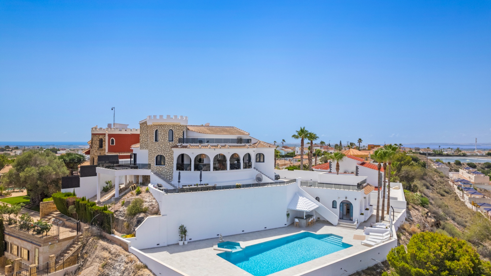 The property lies on a big plot and has amazing panoramic views over the salt lakes, the golf courses and the sea.