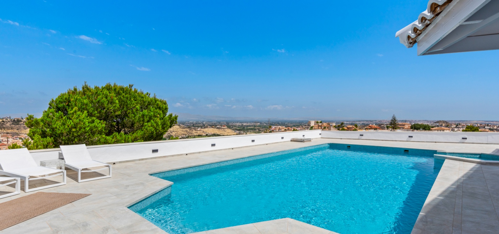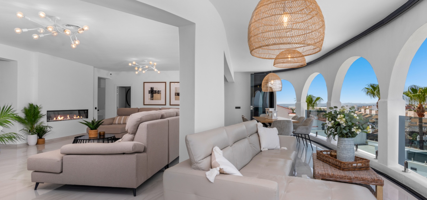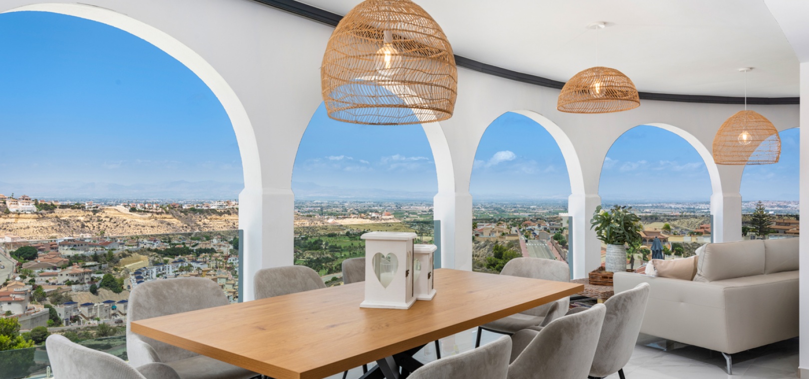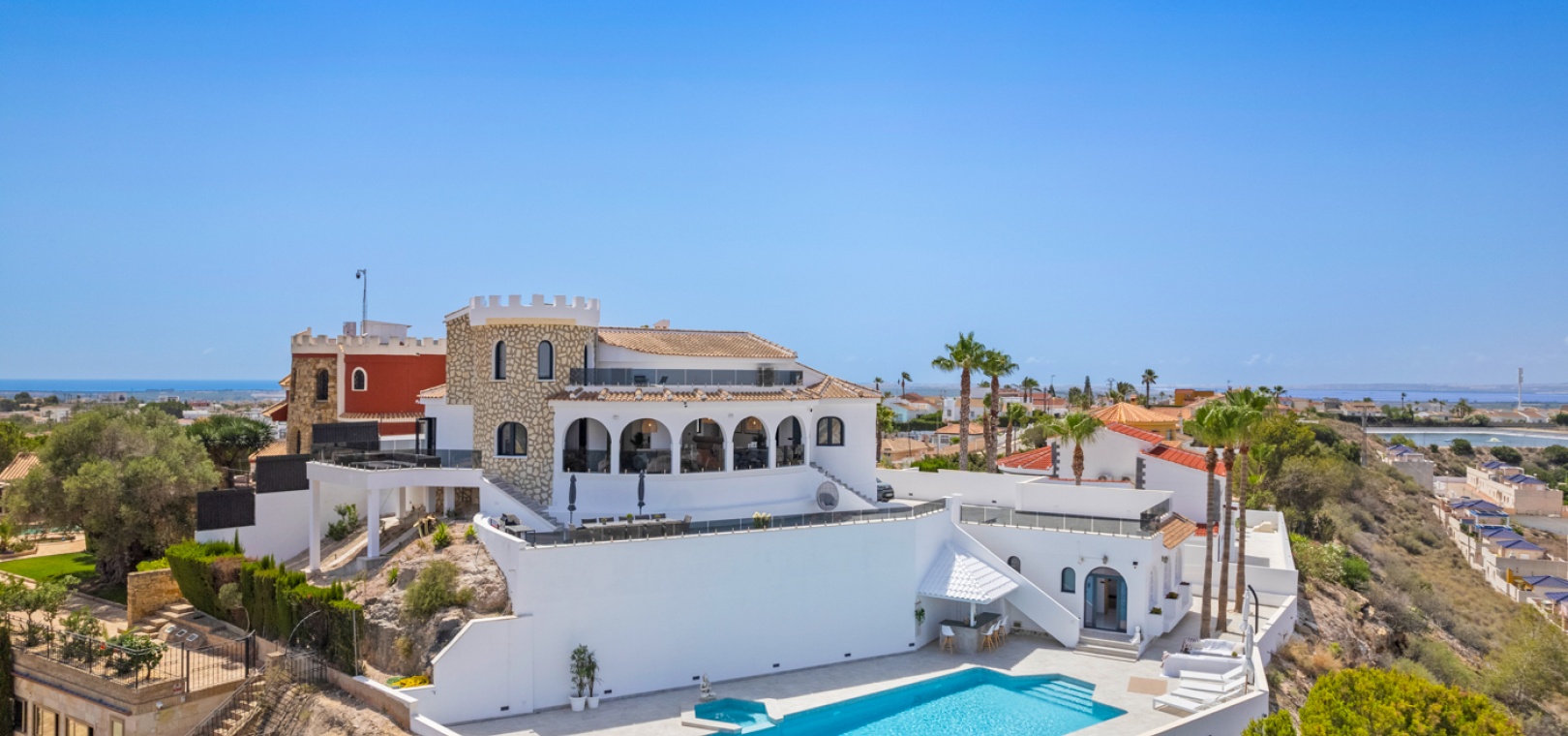 The property lies on a big plot and has amazing panoramic views over the salt lakes, the golf courses and the sea.