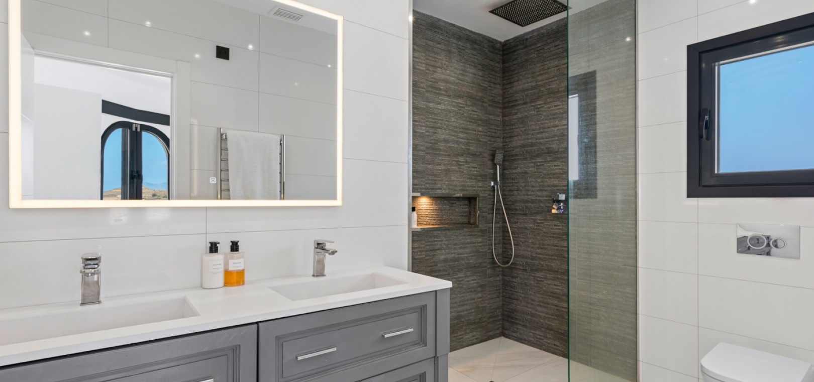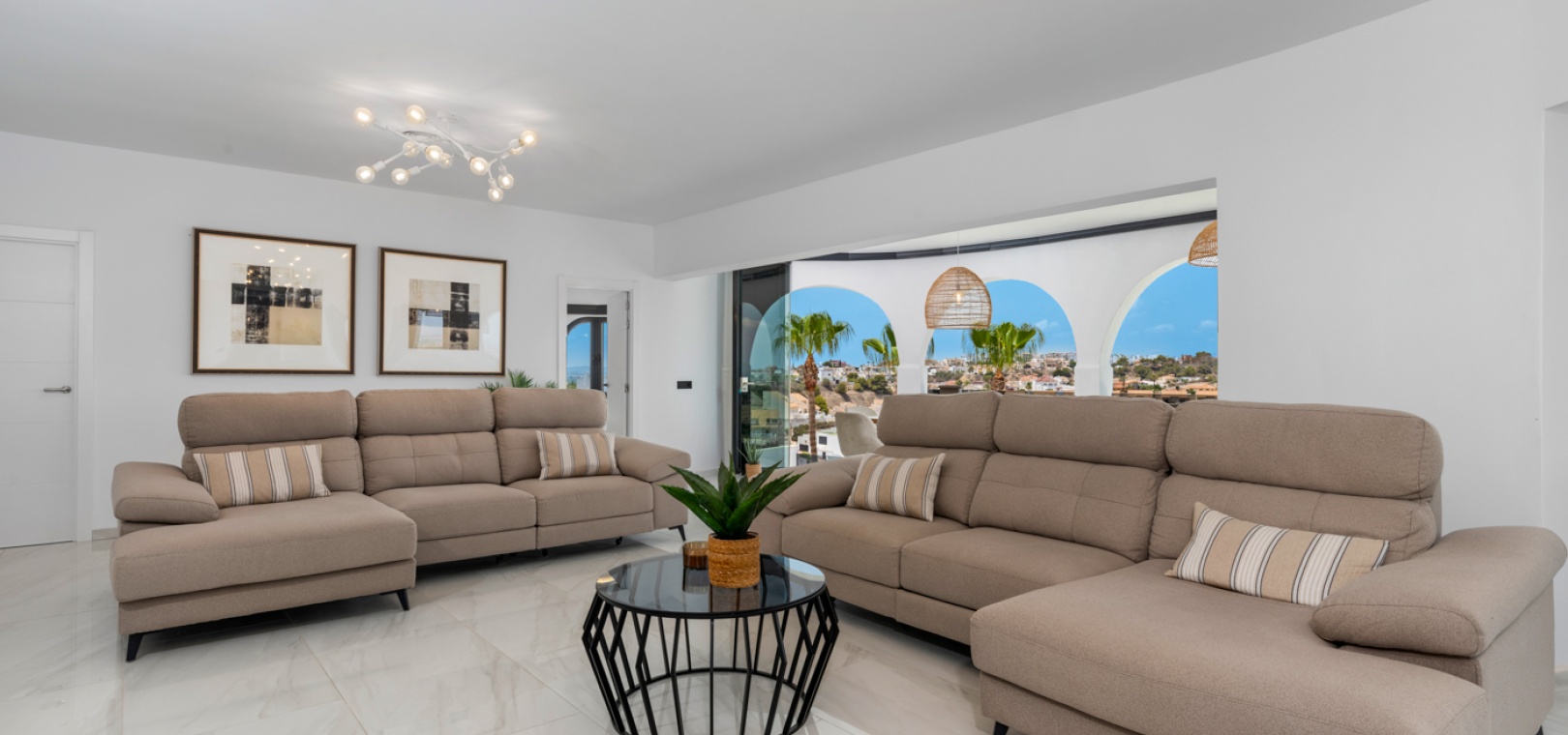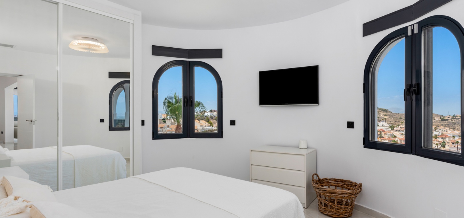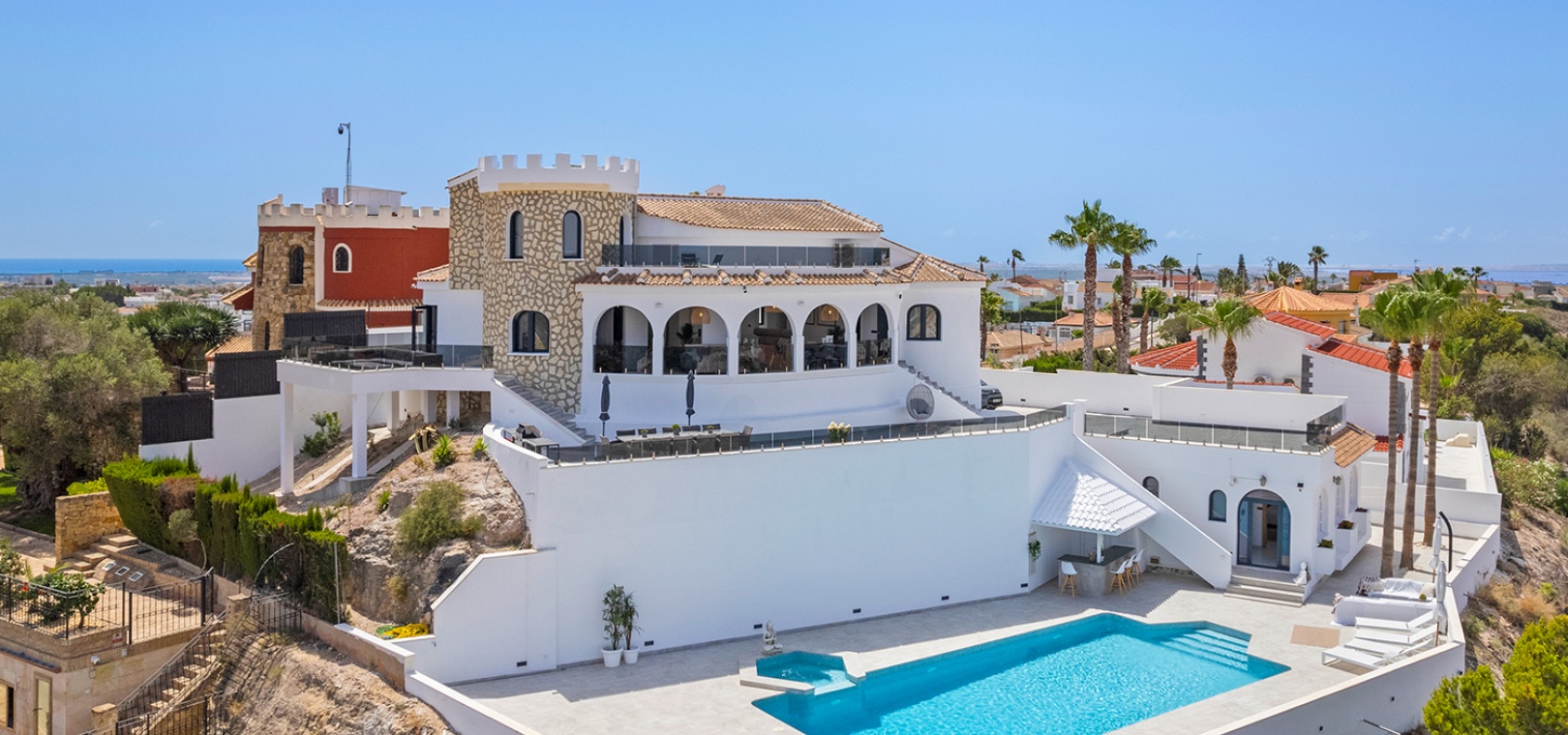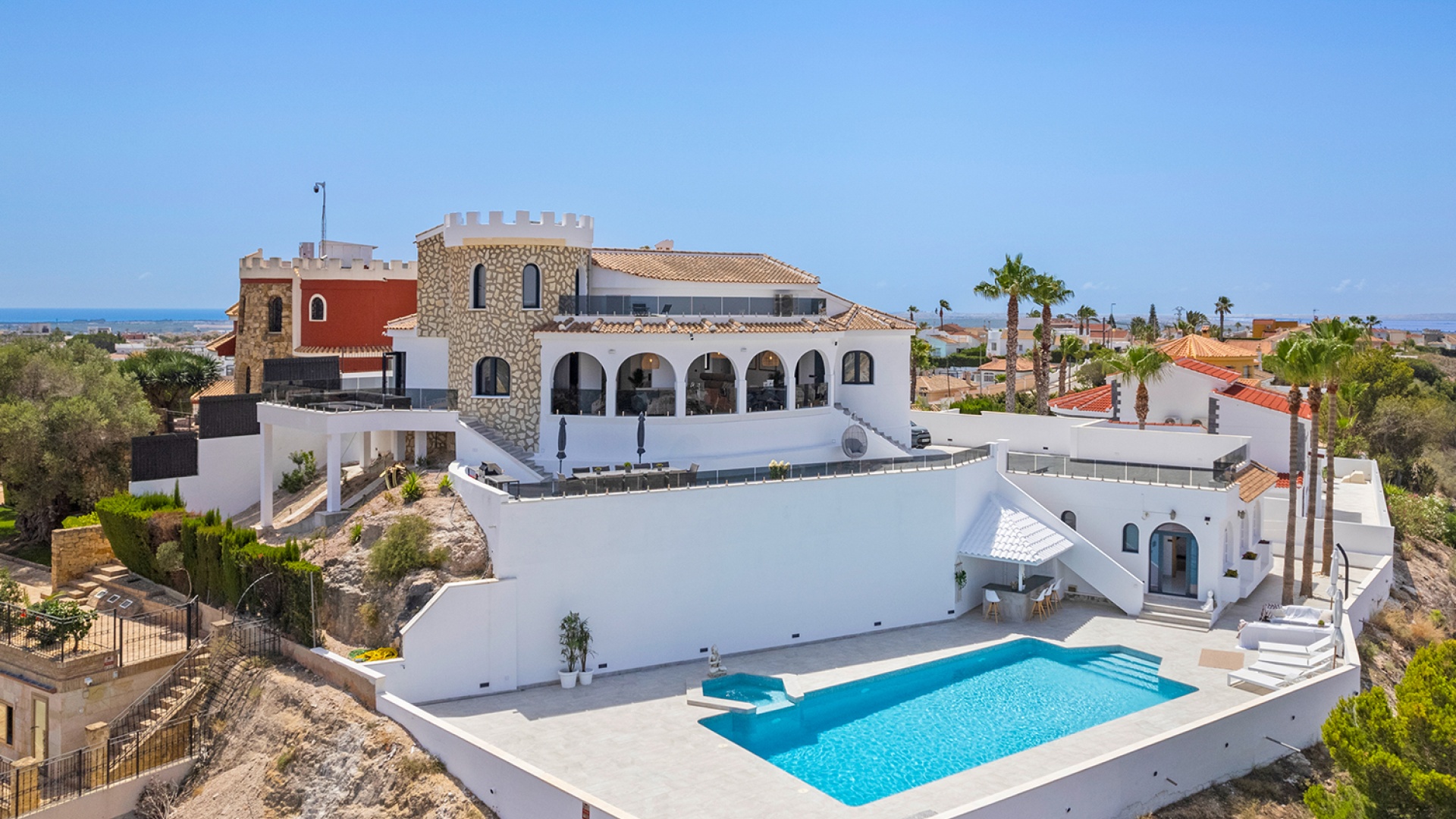 The property lies on a big plot and has amazing panoramic views over the salt lakes, the golf courses and the sea.