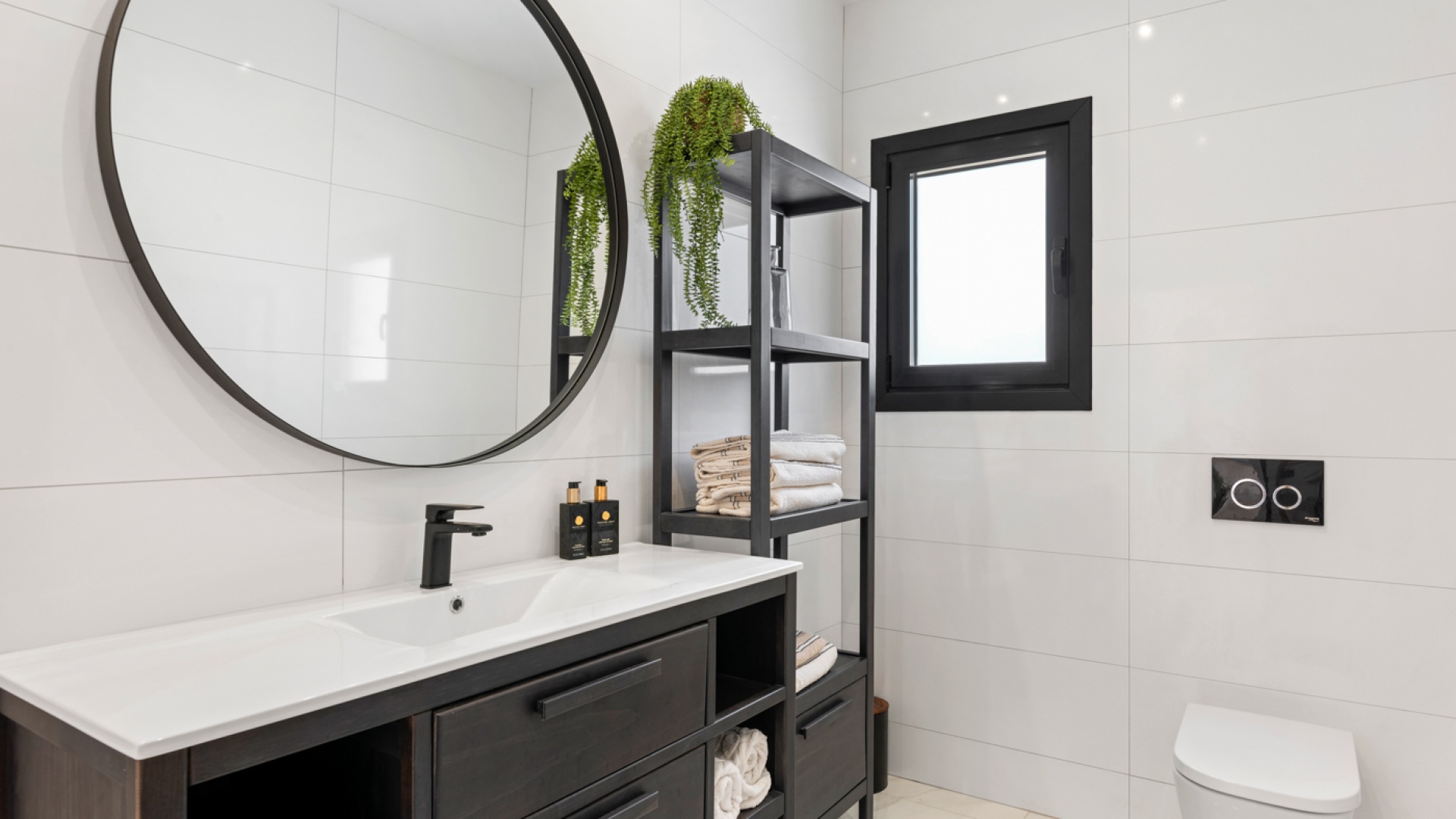 A few steps down from the main house you will find an amazing private swimming pool with a big terrace and plenty of space for sun beds. Here you will also find an outdoor kitchen/bar area. Here you will also find a guest house with a foyer, living room, two bedrooms, a kitchen, a bathroom and a toilet room.