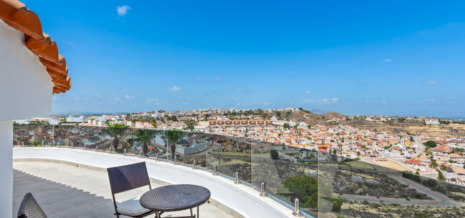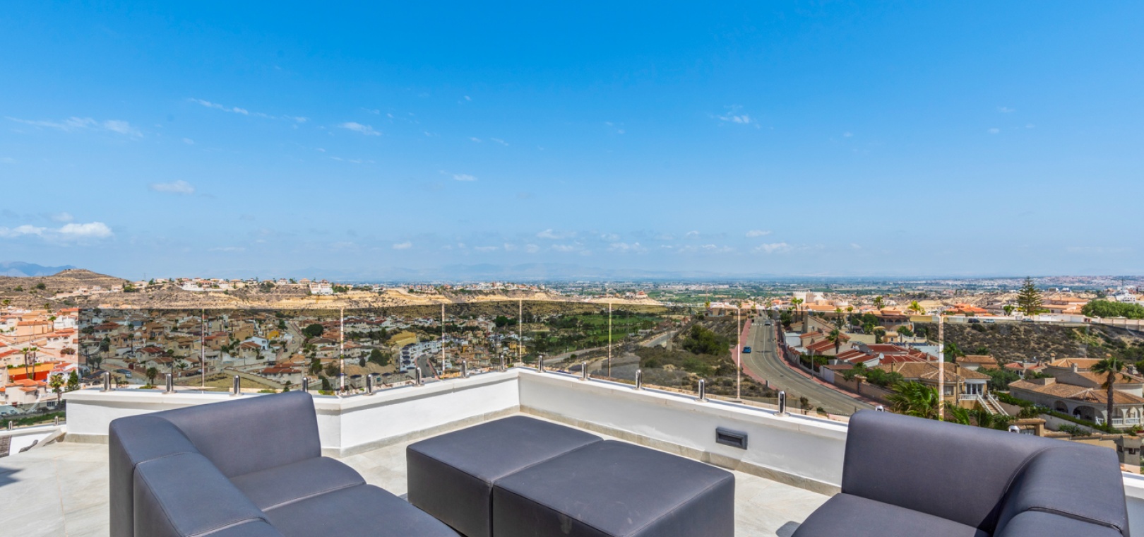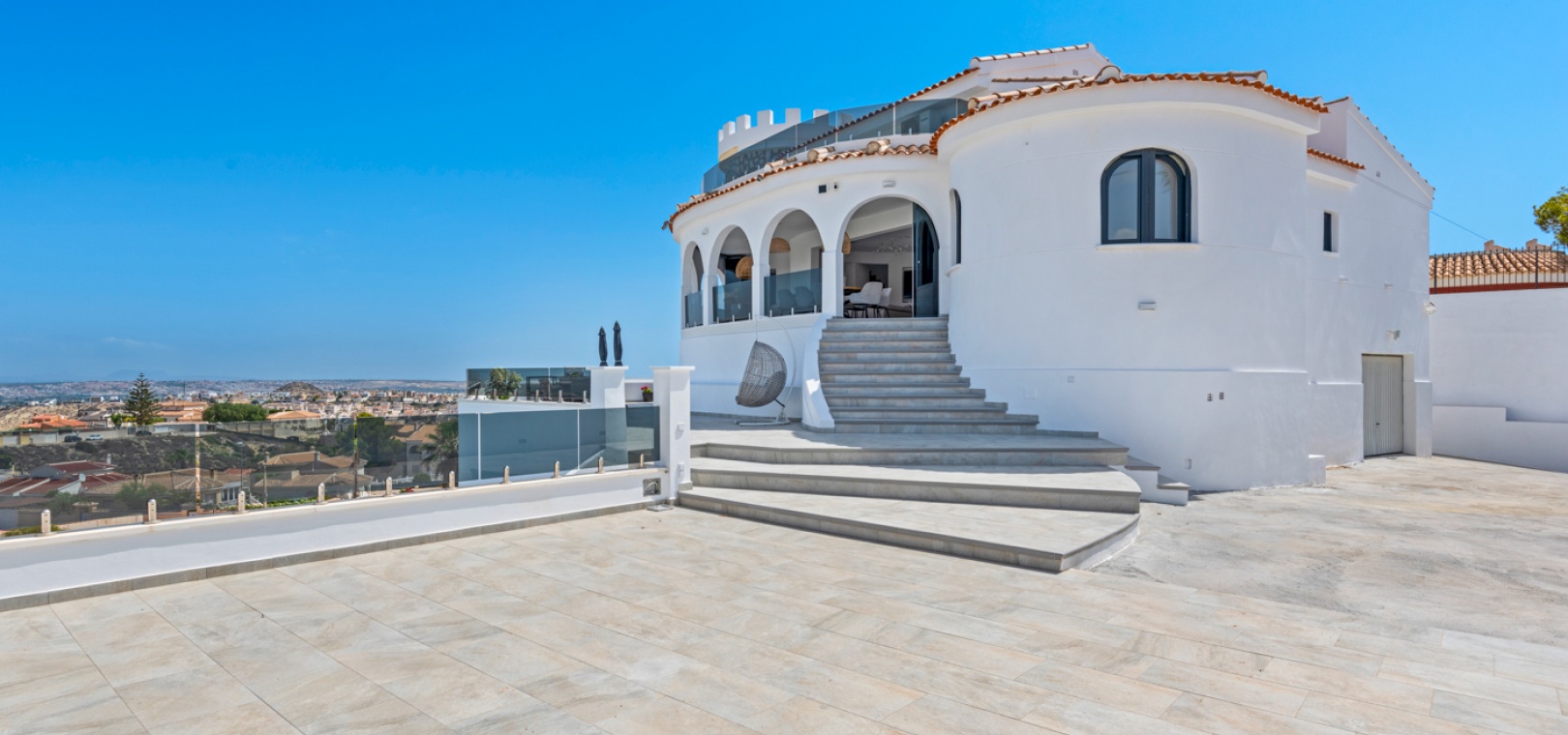 At the top floor you will find another spacious bedroom with excess to a big roof terrace with breath taking views.