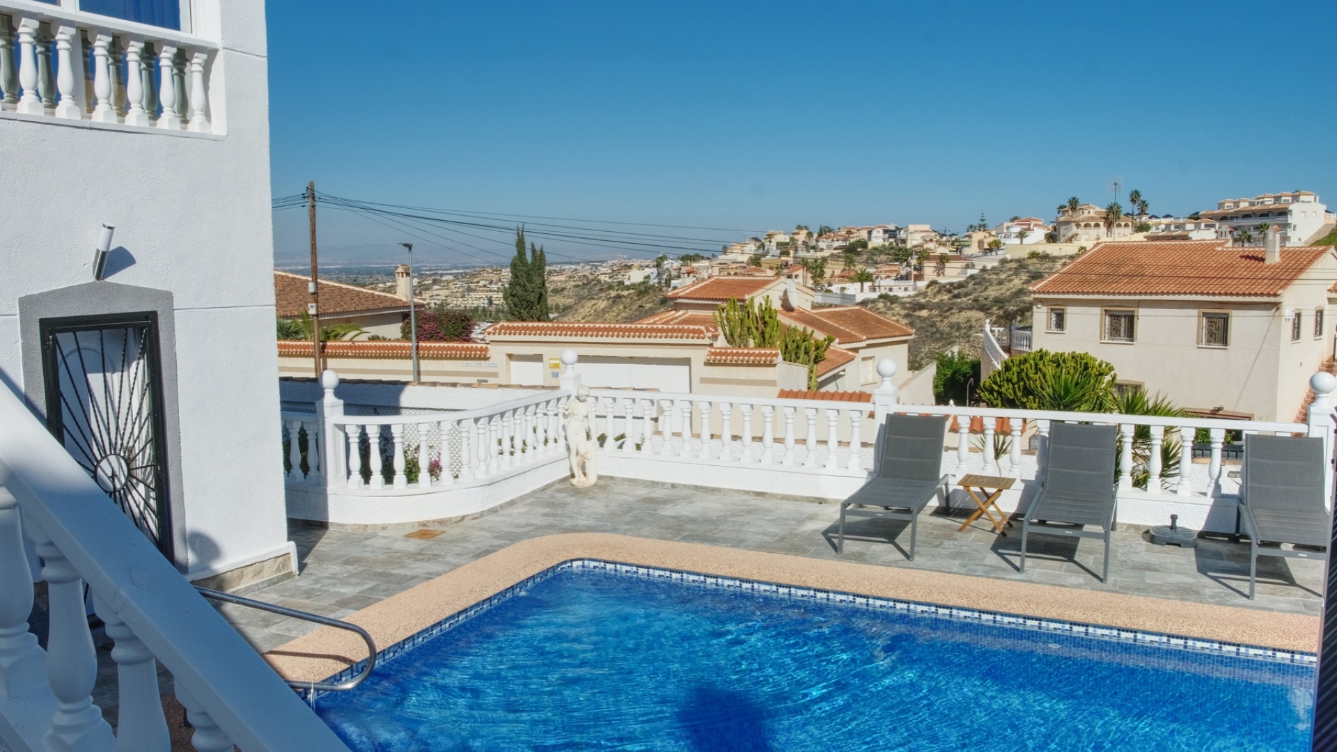 Stunning Detached Villa with Private Pool, Guest House, and Garage in Ciudad QuesadaDiscover this beautifully maintained detached villa, ideally situated in the heart of Ciudad Quesada, just a short walk from the popular La Marquesa Golf Course. This exceptional property offers everything needed for a comfortable and luxurious lifestyle under the Spanish sun.Key Features:Spacious Living Area: Bright and airy lounge-dining room, perfect for relaxation and entertaining.Fully Equipped Kitchen: A generously sized kitchen with modern appliances and ample storage.Bedrooms: Two large double bedrooms with built-in wardrobes in the main villa, plus an additional bedroom in the guest house.Bathrooms: A well-appointed bathroom in the main villa and an additional bathroom in the guest house.Guest House: A self-contained apartment on the lower level featuring an open-plan kitchen, living area, double bedroom, dressing room, and modern bathroom.Air Conditioning: Hot and cold air conditioning in various rooms for year-round comfort.Outdoor Space:Large Private Plot: Set on an impressive 575 m² plot with access from two streets.Private Pool: Enjoy a stunning private swimming pool surrounded by sun terraces.Outdoor Dining & BBQ Area: Ideal for hosting gatherings with family and friends.Multi-Level Gardens: Various terraces and landscaped areas offering both sunny and shaded spots to enjoy throughout the year.Garage: Secure on-site parking for convenience and safety.Prime Location:Close to Amenities: Walking distance to La Marquesa Golf Club, restaurants, bars, and shops.Near the Beaches: Just a 10-15 minute drive to the stunning sandy beaches of Guardamar and Torrevieja.Easy Airport Access: Only 35 minutes from Alicante-Elche Airport.This villa is being sold fully furnished and is move-in ready. Don't miss this exceptional opportunity to own your dream home in one of the most sought-after areas of the Costa Blanca South.Contact us today for more information or to arrange a viewing!