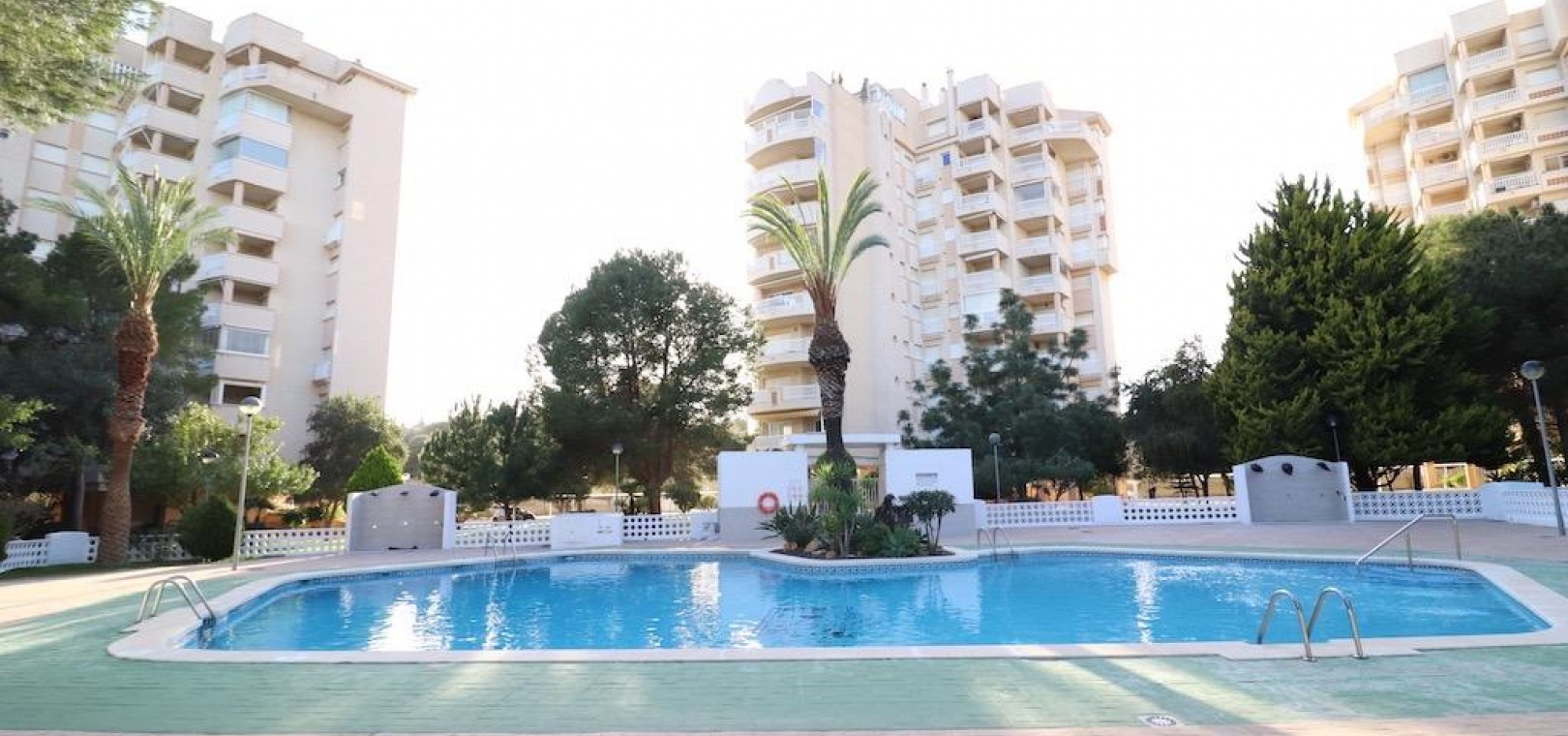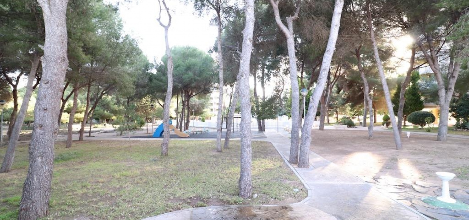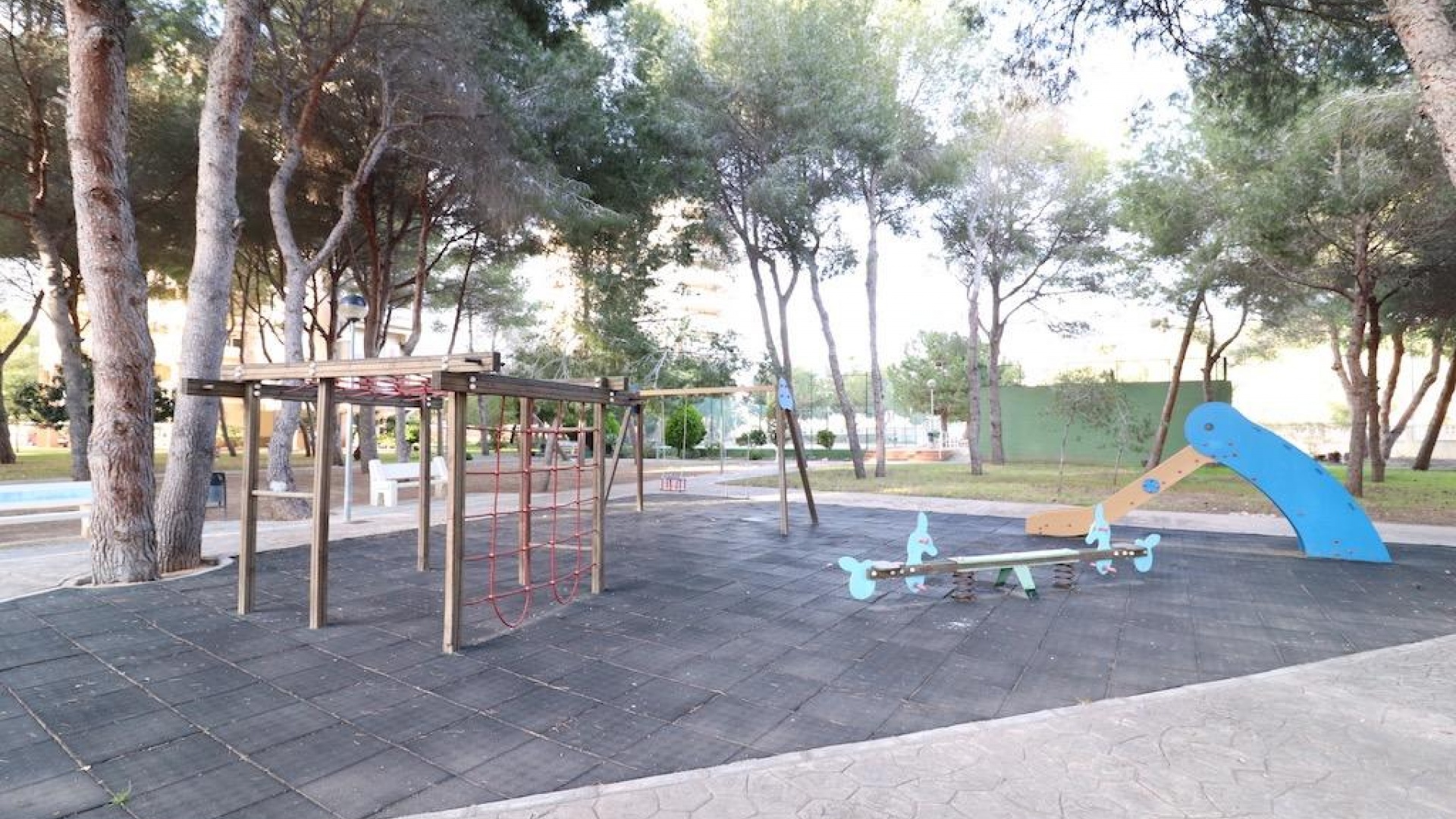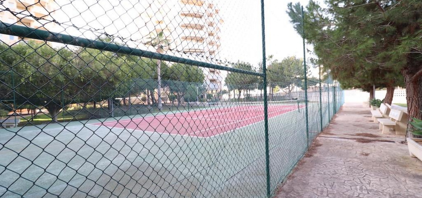 Only 300m from the beach in Pinar de Campoamor. Spacious apartment on 7th floor with sea and pine forest views and south facing.~~99 m2 with 3 bedrooms, 2 bathrooms, spacious and independent kitchen with utility room, living-dining room with large terrace, panoramic views and south facing. ~~It has numbered parking. In a beautiful urbanization with large green areas with communal swimming pool, tennis, paddle tennis, and children's play area.~