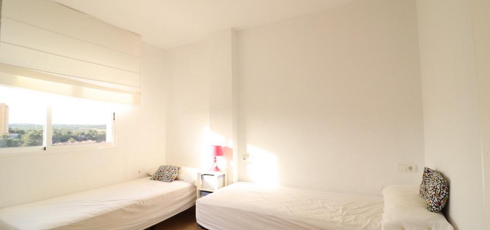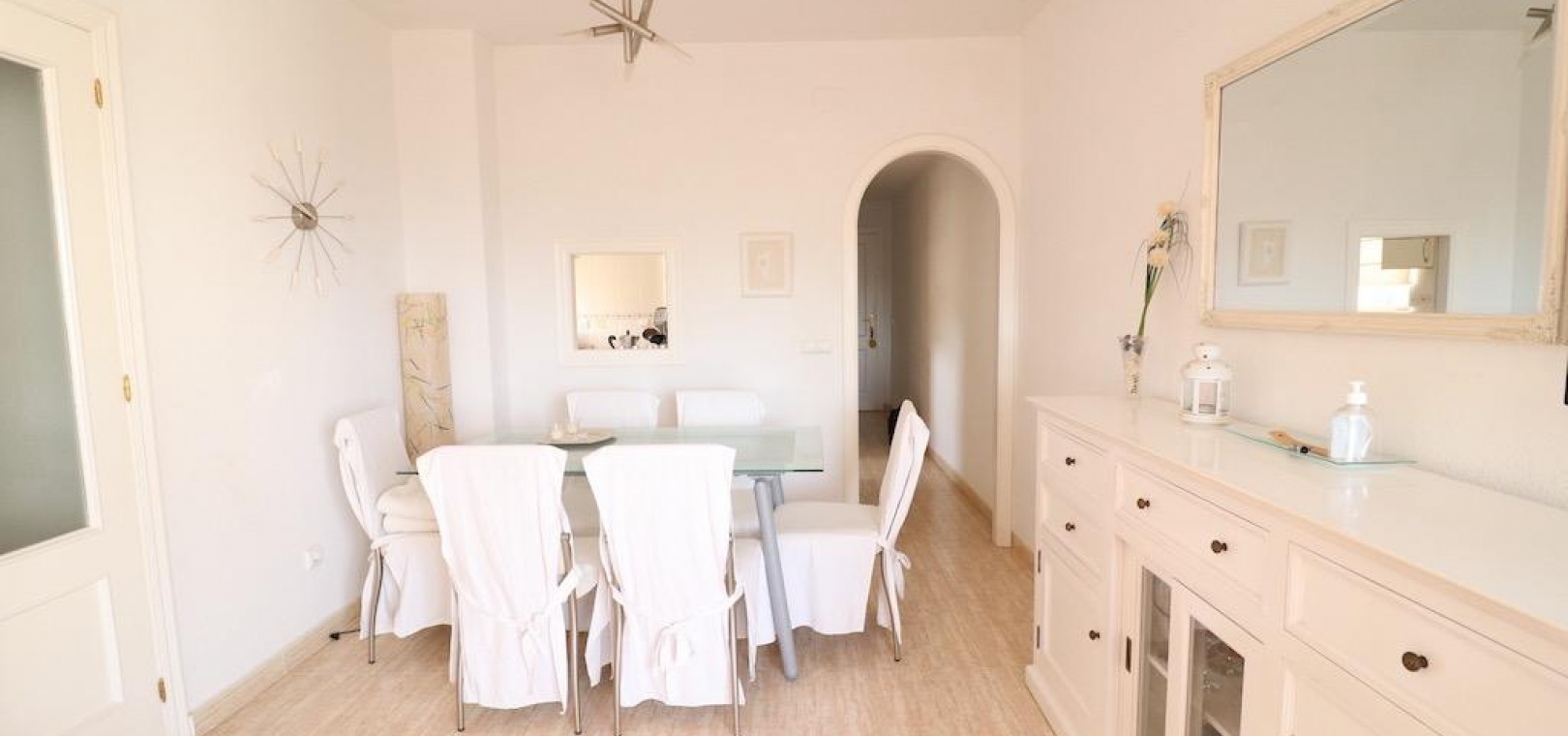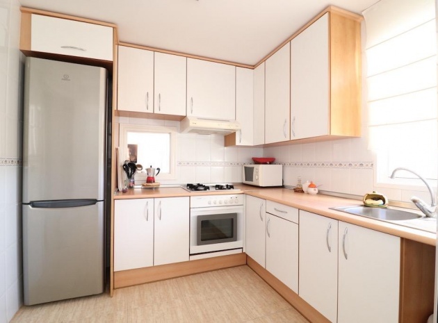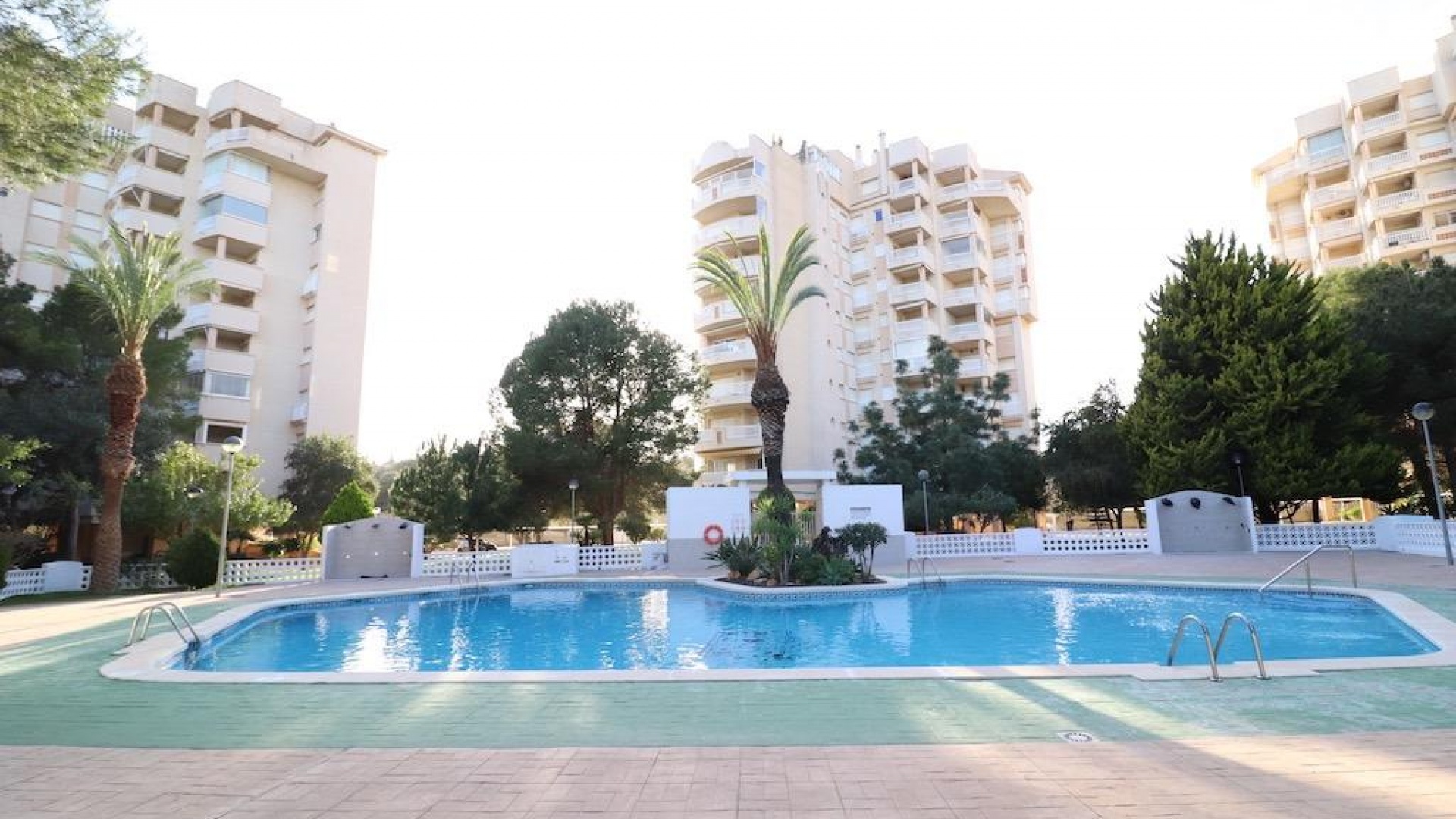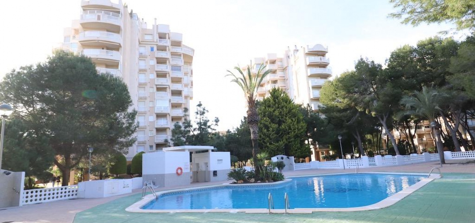 Only 300m from the beach in Pinar de Campoamor. Spacious apartment on 7th floor with sea and pine forest views and south facing.~~99 m2 with 3 bedrooms, 2 bathrooms, spacious and independent kitchen with utility room, living-dining room with large terrace, panoramic views and south facing. ~~It has numbered parking. In a beautiful urbanization with large green areas with communal swimming pool, tennis, paddle tennis, and children's play area.~