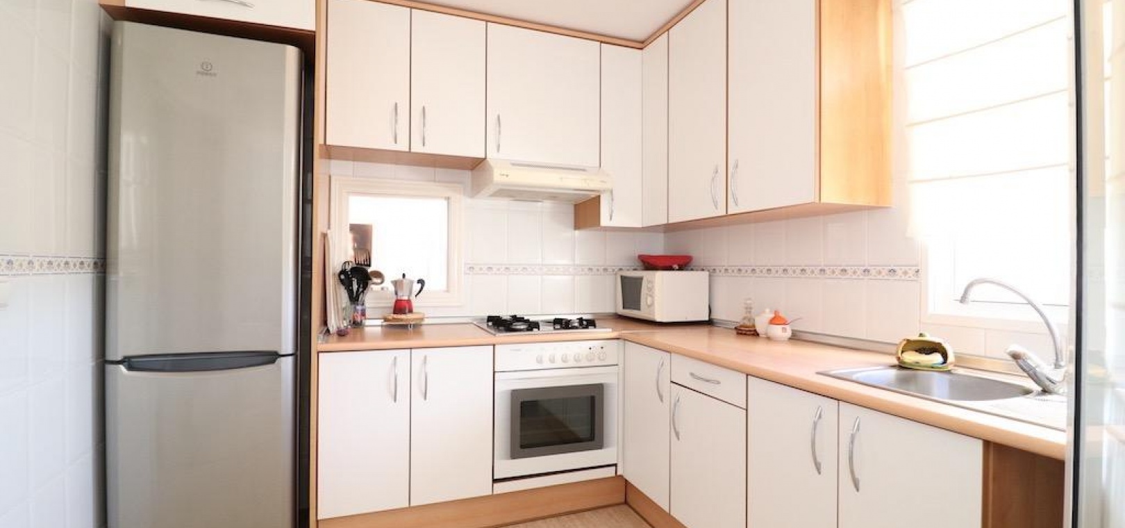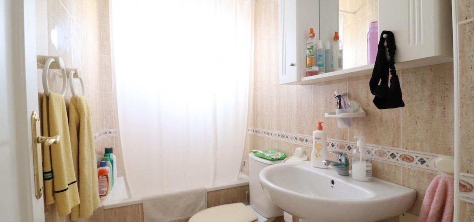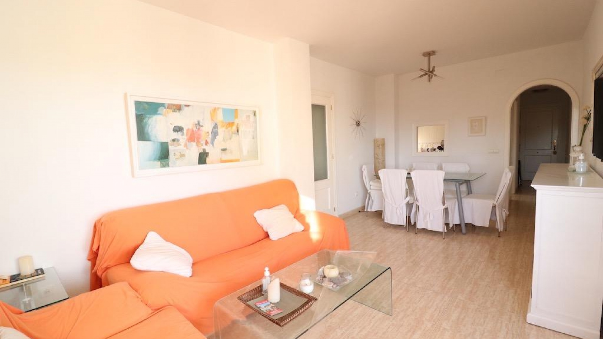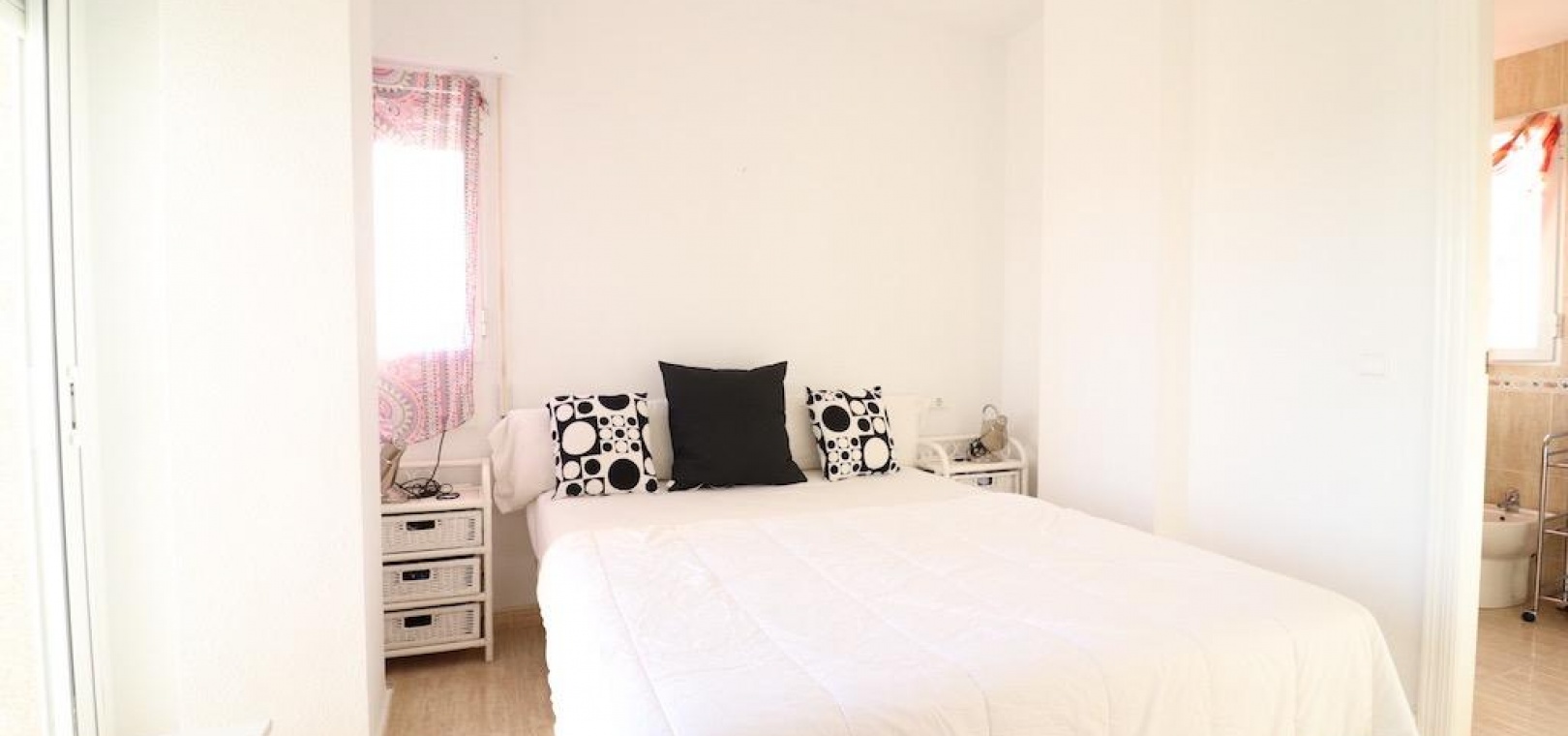 Only 300m from the beach in Pinar de Campoamor. Spacious apartment on 7th floor with sea and pine forest views and south facing.~~99 m2 with 3 bedrooms, 2 bathrooms, spacious and independent kitchen with utility room, living-dining room with large terrace, panoramic views and south facing. ~~It has numbered parking. In a beautiful urbanization with large green areas with communal swimming pool, tennis, paddle tennis, and children's play area.~