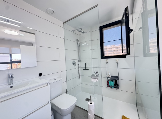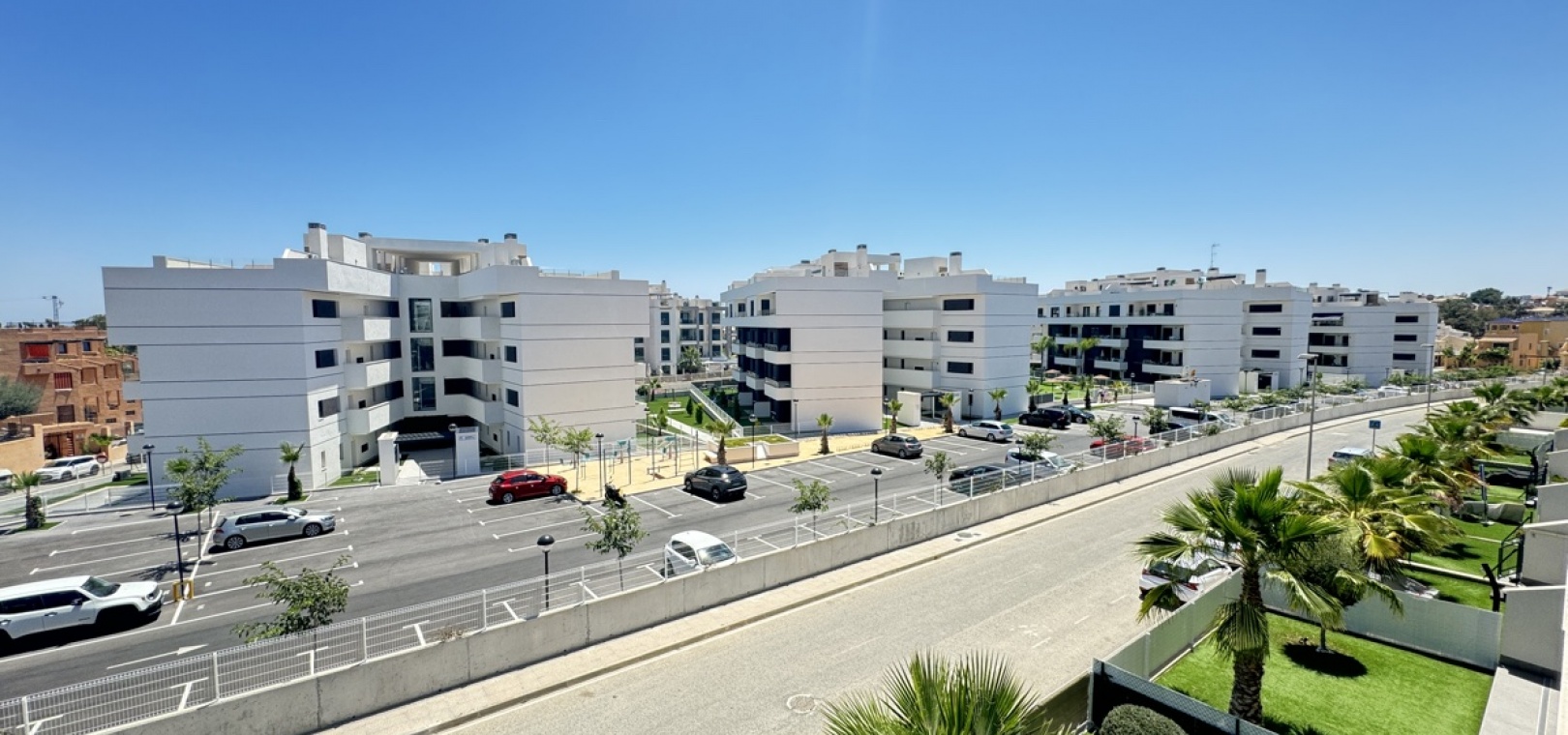 This impressive Modern Corner Apartment is located on the popular development of Valentino Golf in Villamartin. The property offers a spacious open plan living area with modern kitchen, seating and dining area, and an enclosed balcony ideal for relaxing on. While having 2 bedrooms, a bathroom and en-suite shower room located in the master bedroom. Included in the price is an underground parking space with elevator to apartment floor. Magnificent communal areas with multiple pools, kids play area and ample space to relax and bathe on. Local amenities are all within a short walk while the development is just a short drive from a long list of golf courses and sandy beaches. A must see property with low annual running costs. Community Fee - 70e pm, Suma Fee - 235e pa.