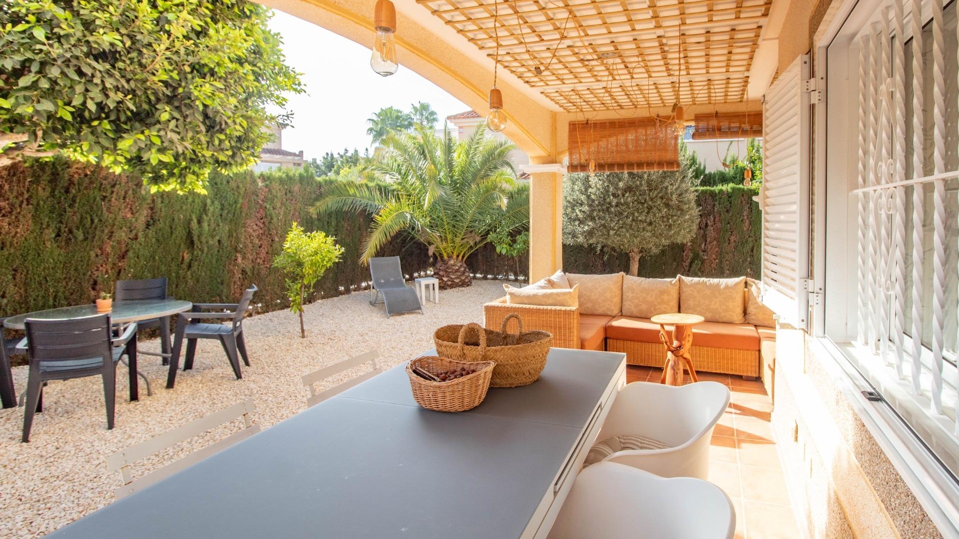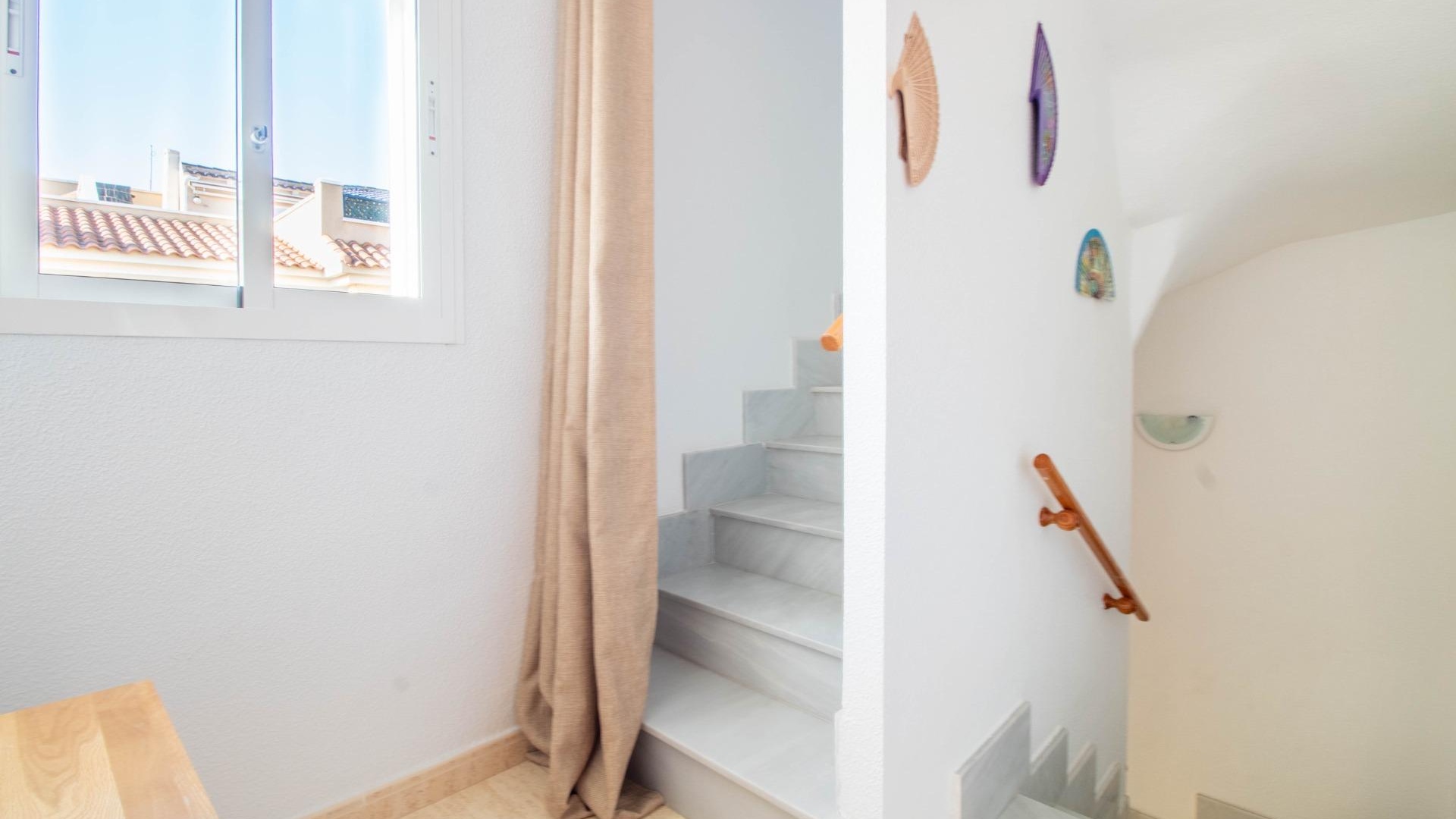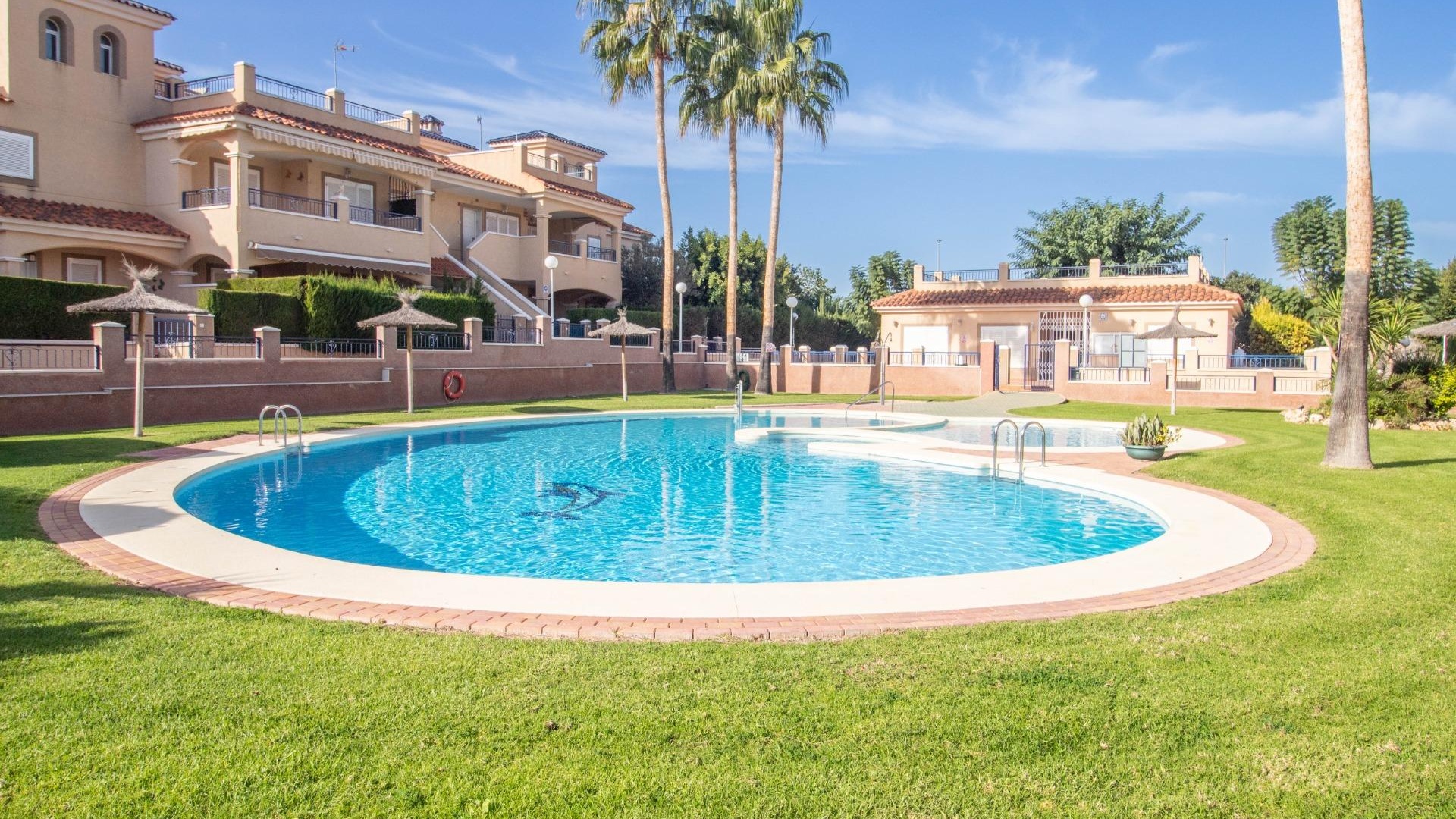 We present this fantastic semi-detached house in Rio Mar, Mil Palmeras. This corner semi-detached house is distributed over two floors, offering a spacious and well-organized home. With a total of 110 square meters, it has a private garden that includes fruit trees and palm trees, which adds a natural and peaceful touch to the environment.~~On the ground floor, there is a spacious living room with plenty of light, ideal for enjoying the comfort of home. In addition, the kitchen is fully equipped, and the house has a gallery. On this same floor there is a bathroom.~~On the upper floor there are two bedrooms, both spacious and bright. In addition, the upper floor includes a terrace and a solarium, perfect for enjoying the outdoors and the views.~~The house also has access via a staircase that connects to the garage and storage room, adding comfort and practicality to the space. In short, this property is characterized by its spaciousness, good layout and its pleasant outdoor environment, offering an excellent quality of life.~The residential area in which this semi-detached house is located offers excellent services and amenities. It has a communal swimming pool with natural grass, ideal for enjoying a refreshing and relaxing swim in a natural setting. In addition, it has a social club, perfect for meetings or community activities.~~The residential complex is gated, which provides security and privacy to its residents. In addition, it is located just 1.5 km from Mil Palmeras beach, allowing easy access to nearby beaches and enjoying the sea breeze and coastal environment. This residential complex offers an ideal balance between comfort, privacy and proximity to the sea.