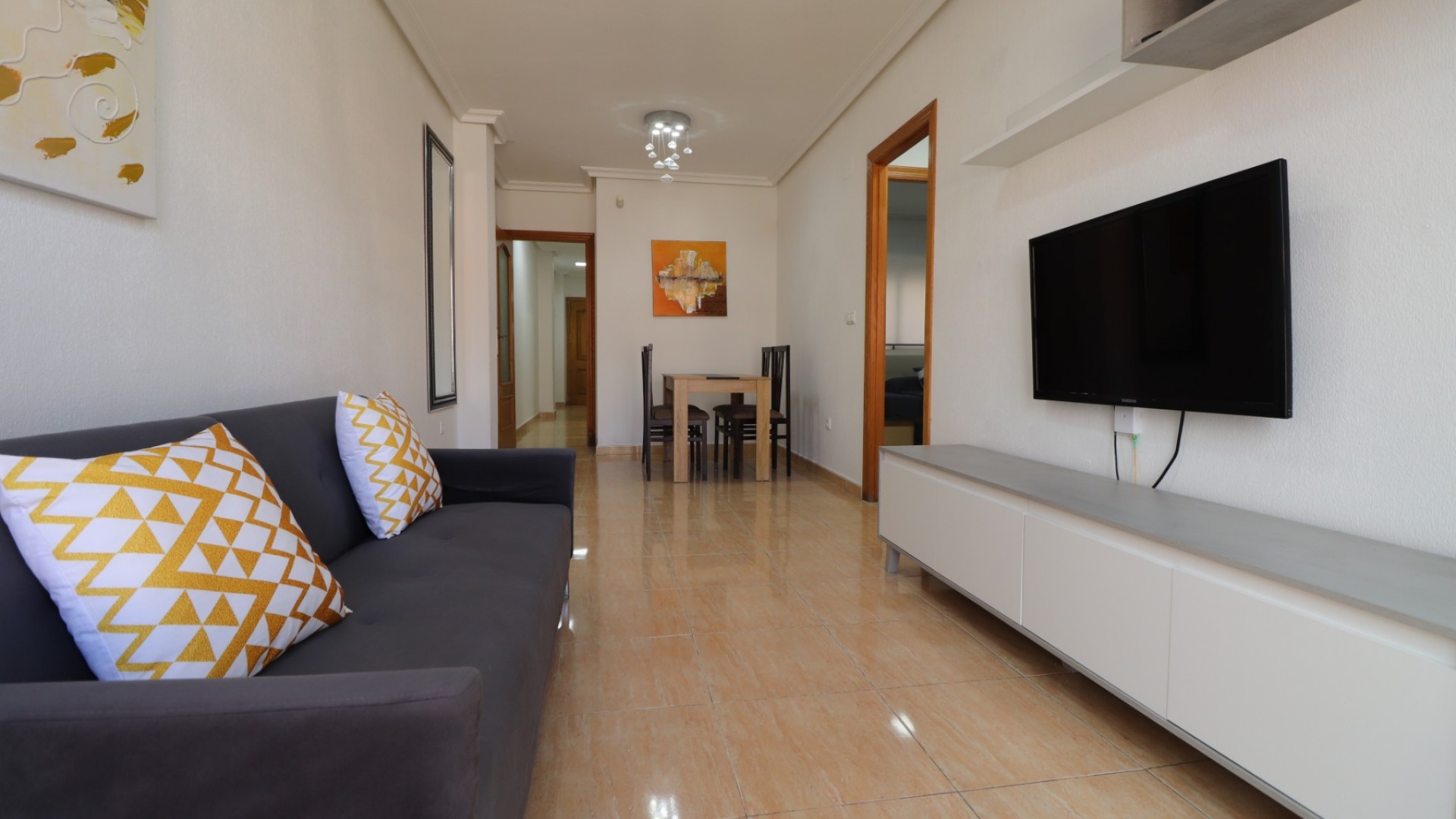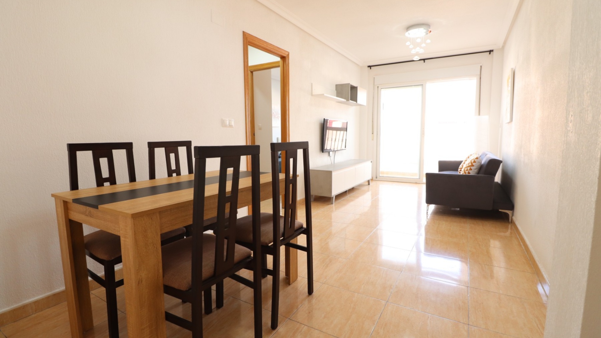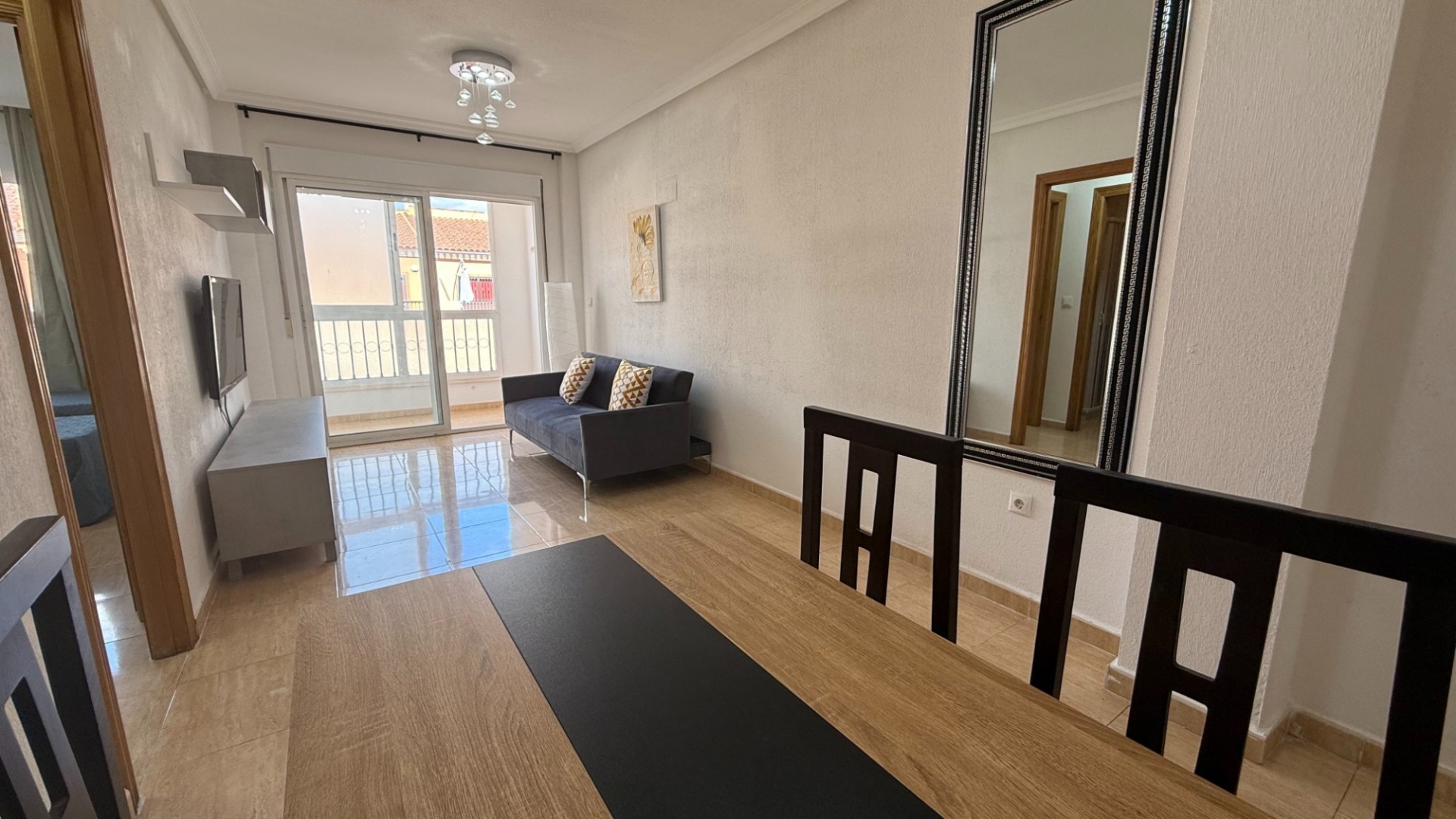 This Immaculate, Three Bedroom 1st Floor Apartment in San Isidro is located in a charming and traditional Spanish village in Costa Blanca South. The property is within walking distance of local amenities, just a 2-minute walk to the nearest bus stop, and benefits from the convenience of the San Isidro train station, providing excellent transport links. With a build size of 81m², this well-maintained apartment features three bedrooms, including a master bedroom with fitted wardrobes, a modern shower room, and an additional bathroom. The separate kitchen offers ample workspace, while the bright living room leads to a glazed and covered terrace, perfect for year-round enjoyment. The building is equipped with a lift for easy access, and residents can enjoy the communal solarium, ideal for relaxing under the Mediterranean sun. A nearby municipal swimming pool adds to the appeal. Located within a 25-minute drive to the nearest beaches, this property offers a perfect blend of traditional village charm and modern convenience, making it ideal as a holiday home, rental investment, or permanent residence.