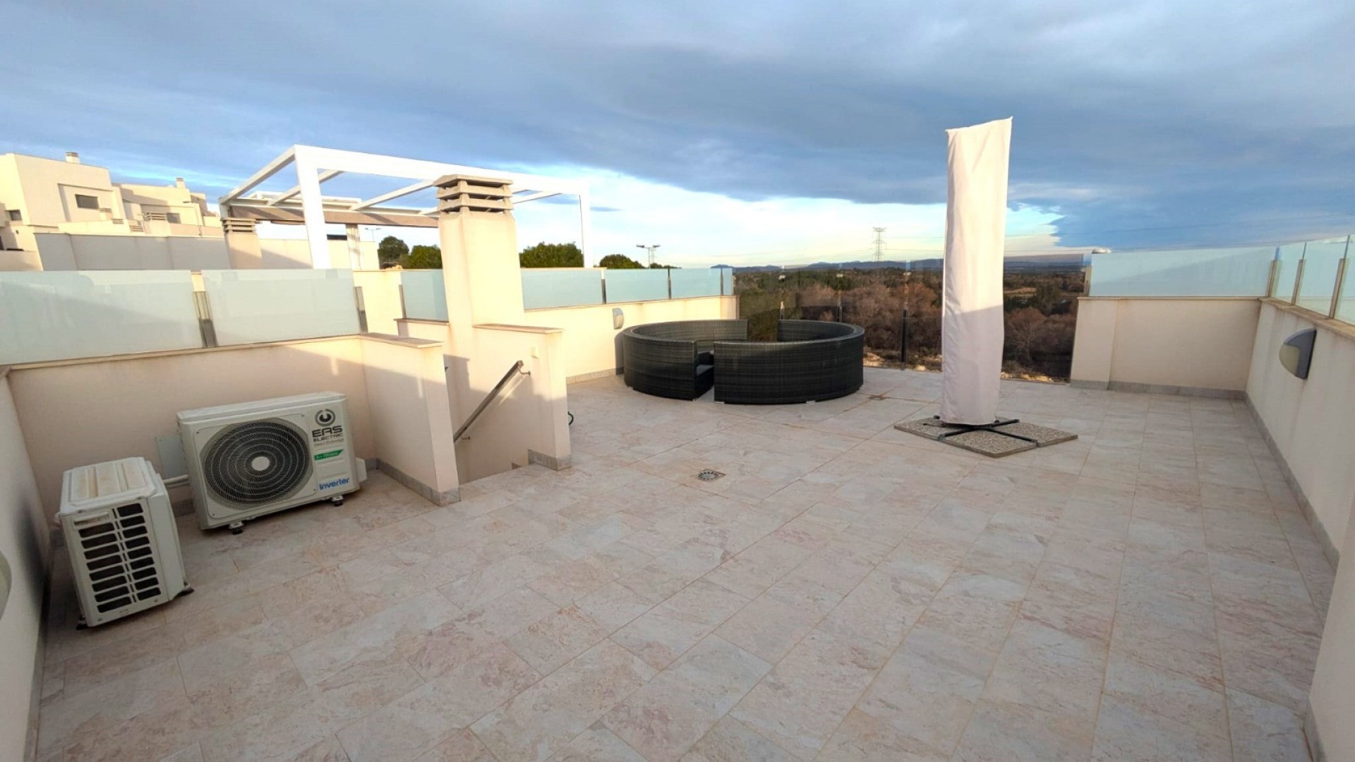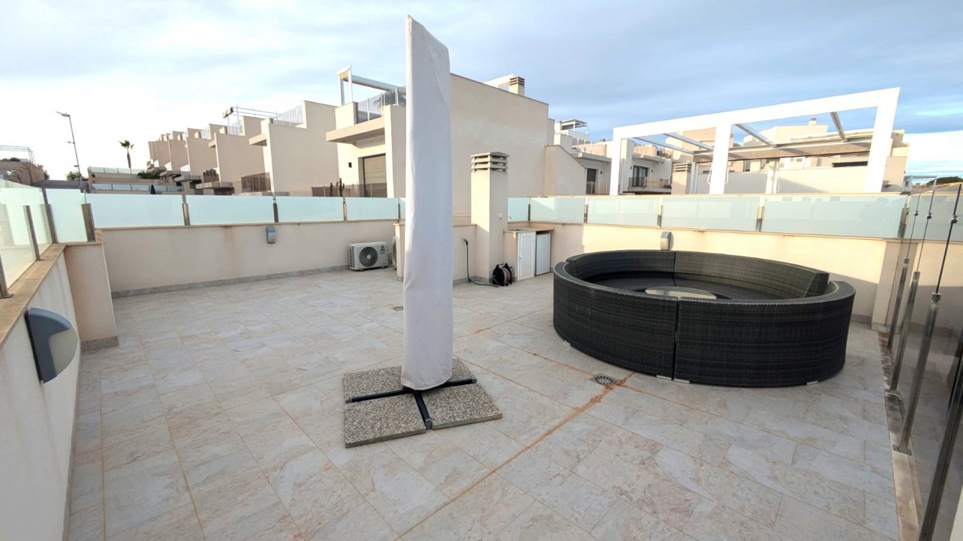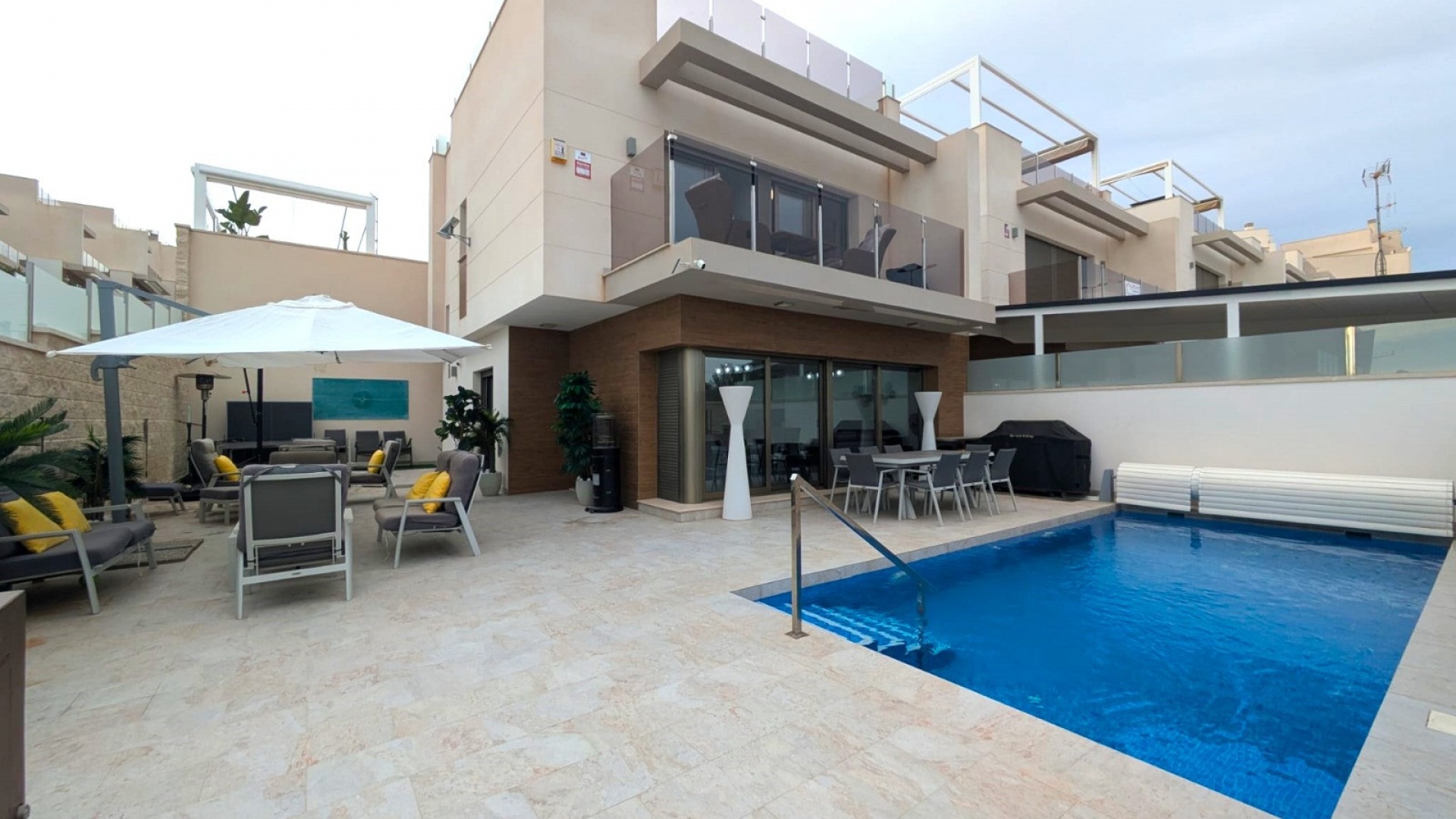 Set on a nice sized plot of 224m2 with a private heated pool, off road parking and plenty of space for sun loungers, dining tables, BBQ etc.