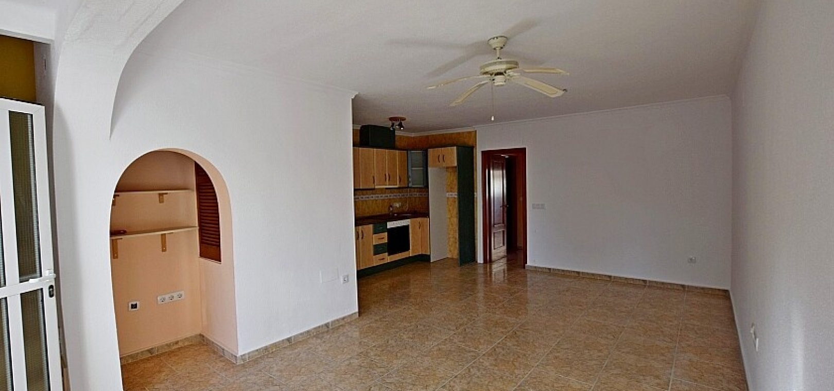 It has 3 bedrooms, 2 bathrooms, living-dining room with kitchen and storage room, private garden and patio.