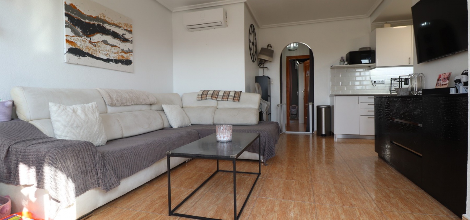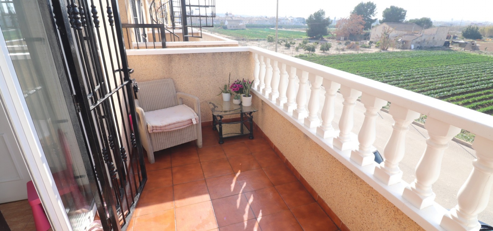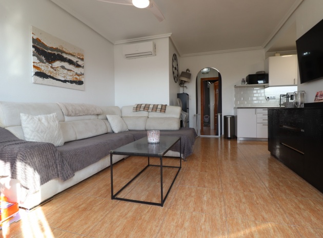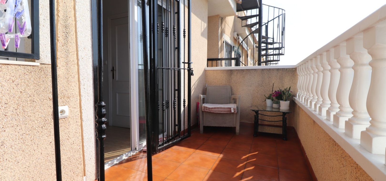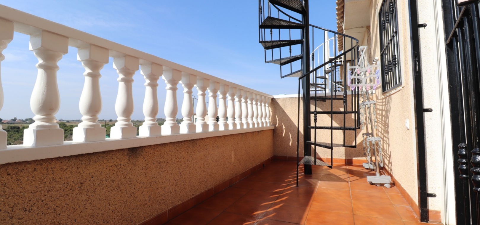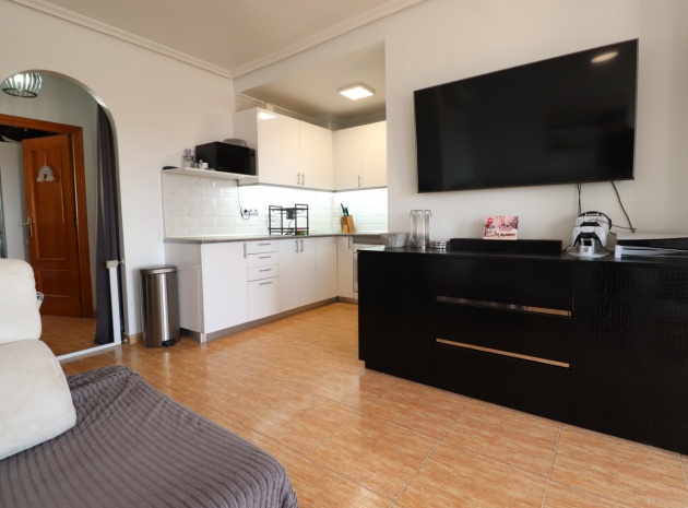 This Updated, West Facing, Two Bedroom, Top Floor Apartment in Los Palacios is located in a prominent position with vast, panoramic and open countryside + mountain views that stretch as far as the eye can see. This charming 2-bedroom, 1-bathroom apartment has been tastefully updated, offering modern comfort and style in a highly desirable location. The spacious living room is bright and airy, leading seamlessly to a contemporary open-plan, fully fitted kitchen with an adjoining utility room for added convenience. The front uncovered terrace, accessible from the living room, provides the perfect spot for morning coffee while enjoying the sweeping views. From here, a spiral staircase leads to the large private rooftop solarium, complete with a fitted BBQ area—ideal for entertaining, dining under the stars, or simply relaxing while soaking in the stunning sunset views. The master bedroom features fitted wardrobes and modern ceiling fans, while the updated shower room boasts a sleek walk-in shower. Additional features include air conditioning in the living room and master bedroom, grilles on the front and terrace doors, and stylish ceiling fans in both bedrooms, ensuring year-round comfort. This apartment is not part of a community, meaning there are no community fees to worry about. Yet, the municipal pool is literally just a 30-second walk away, perfect for cooling off on warm days. All essential amenities and facilities, including main-brand supermarkets, are within a 5-minute walk, while the award-winning, blue flag beaches of Guardamar del Segura are only an 8-minute drive away. Whether you're looking for a holiday retreat, a permanent home, or a rental investment, this property truly offers it all—breathtaking views, modern comforts, and unbeatable convenience in the heart of the Costa Blanca South.
