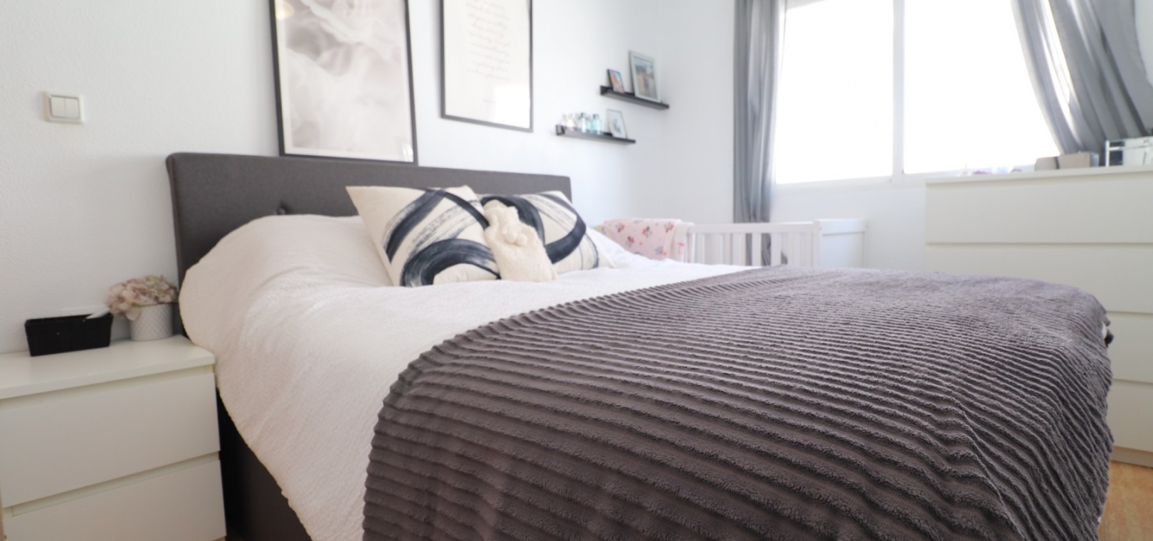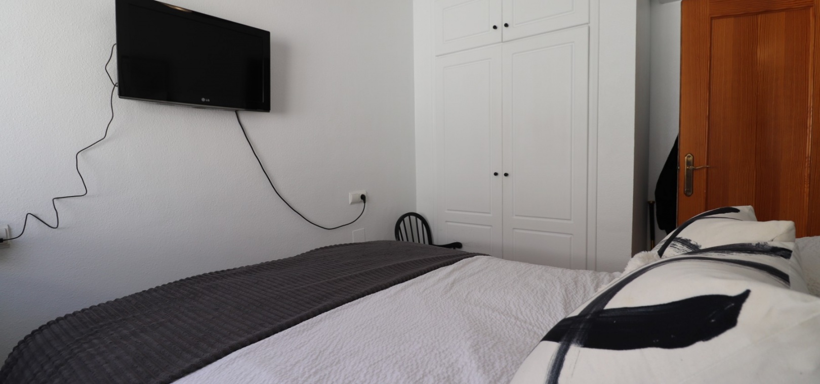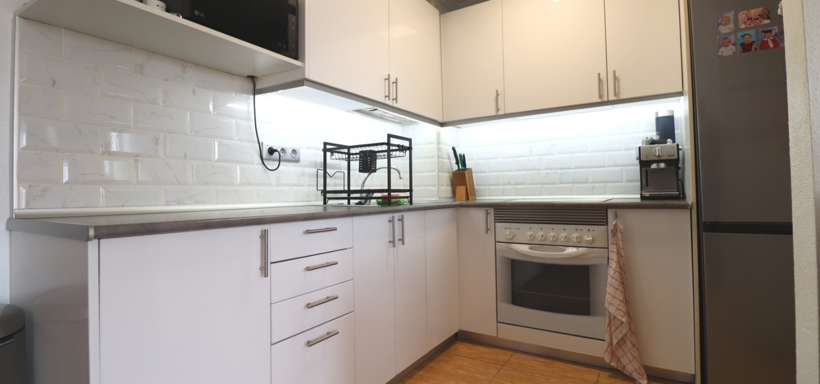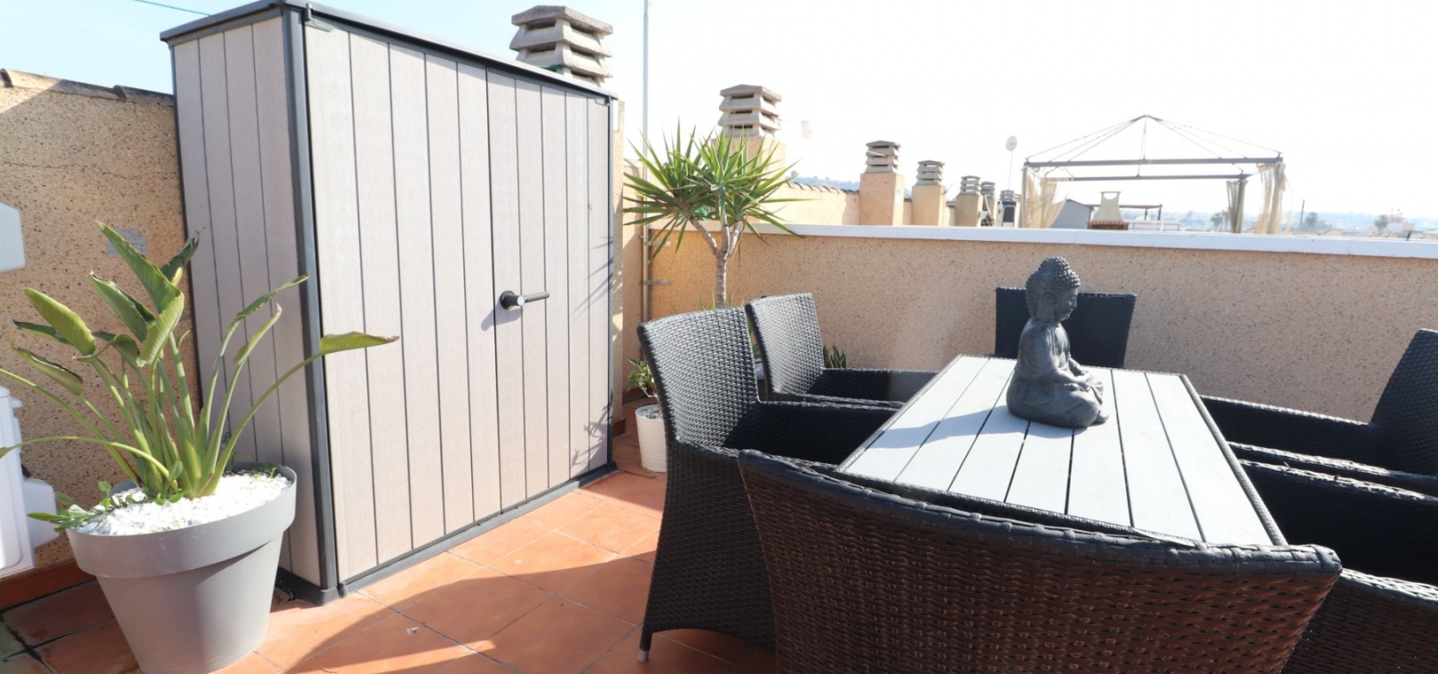 This Updated, West Facing, Two Bedroom, Top Floor Apartment in Los Palacios is located in a prominent position with vast, panoramic and open countryside + mountain views that stretch as far as the eye can see. This charming 2-bedroom, 1-bathroom apartment has been tastefully updated, offering modern comfort and style in a highly desirable location. The spacious living room is bright and airy, leading seamlessly to a contemporary open-plan, fully fitted kitchen with an adjoining utility room for added convenience. The front uncovered terrace, accessible from the living room, provides the perfect spot for morning coffee while enjoying the sweeping views. From here, a spiral staircase leads to the large private rooftop solarium, complete with a fitted BBQ area—ideal for entertaining, dining under the stars, or simply relaxing while soaking in the stunning sunset views. The master bedroom features fitted wardrobes and modern ceiling fans, while the updated shower room boasts a sleek walk-in shower. Additional features include air conditioning in the living room and master bedroom, grilles on the front and terrace doors, and stylish ceiling fans in both bedrooms, ensuring year-round comfort. This apartment is not part of a community, meaning there are no community fees to worry about. Yet, the municipal pool is literally just a 30-second walk away, perfect for cooling off on warm days. All essential amenities and facilities, including main-brand supermarkets, are within a 5-minute walk, while the award-winning, blue flag beaches of Guardamar del Segura are only an 8-minute drive away. Whether you're looking for a holiday retreat, a permanent home, or a rental investment, this property truly offers it all—breathtaking views, modern comforts, and unbeatable convenience in the heart of the Costa Blanca South.