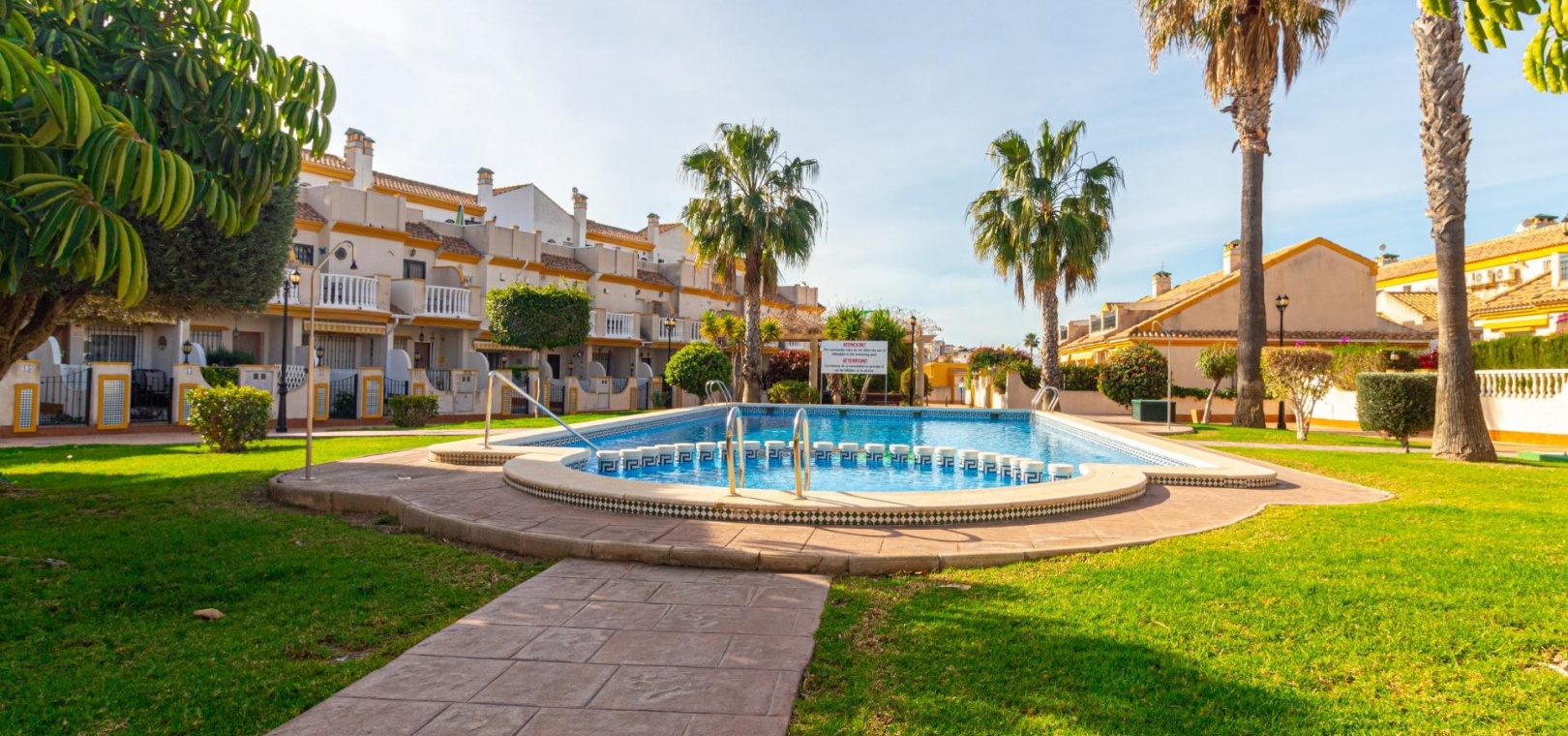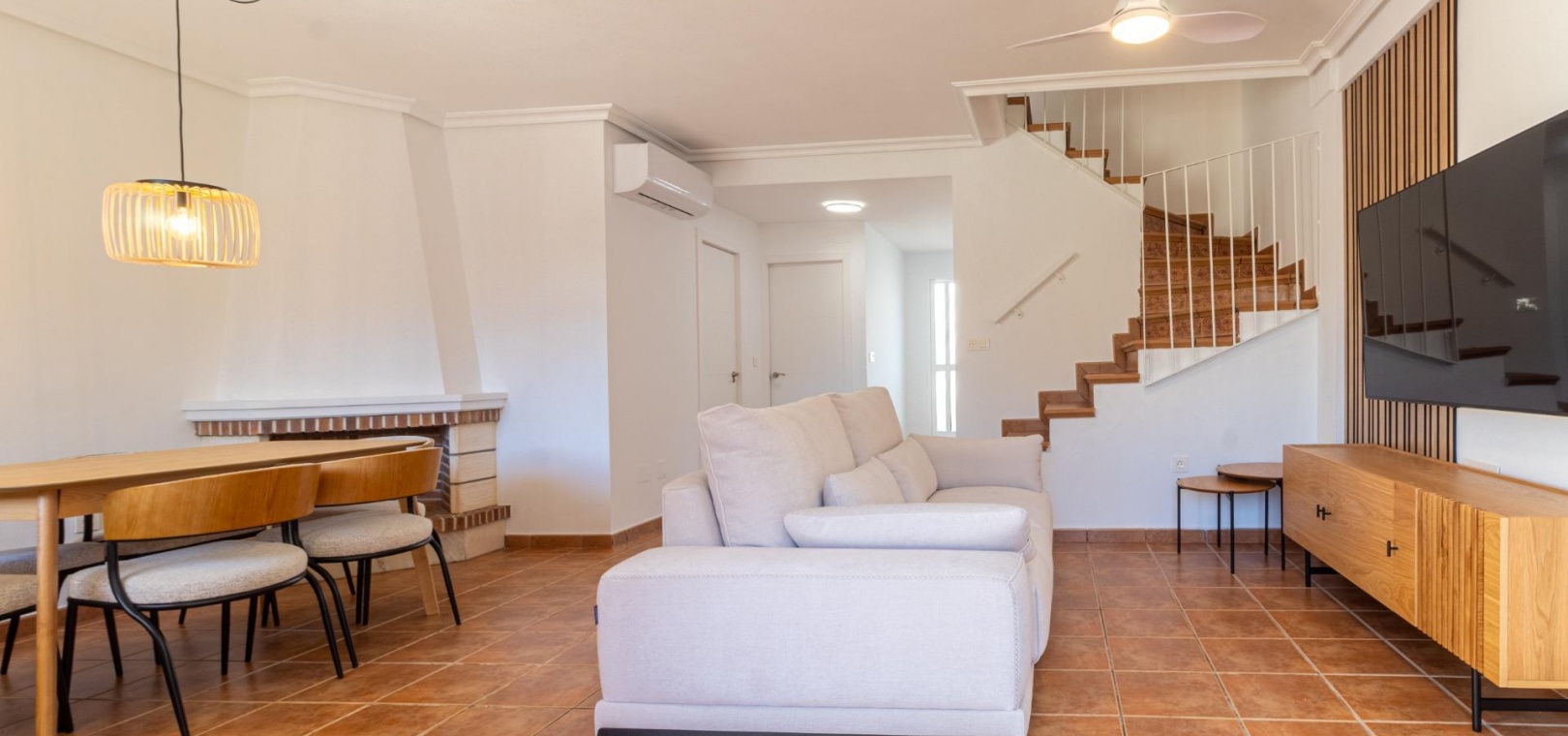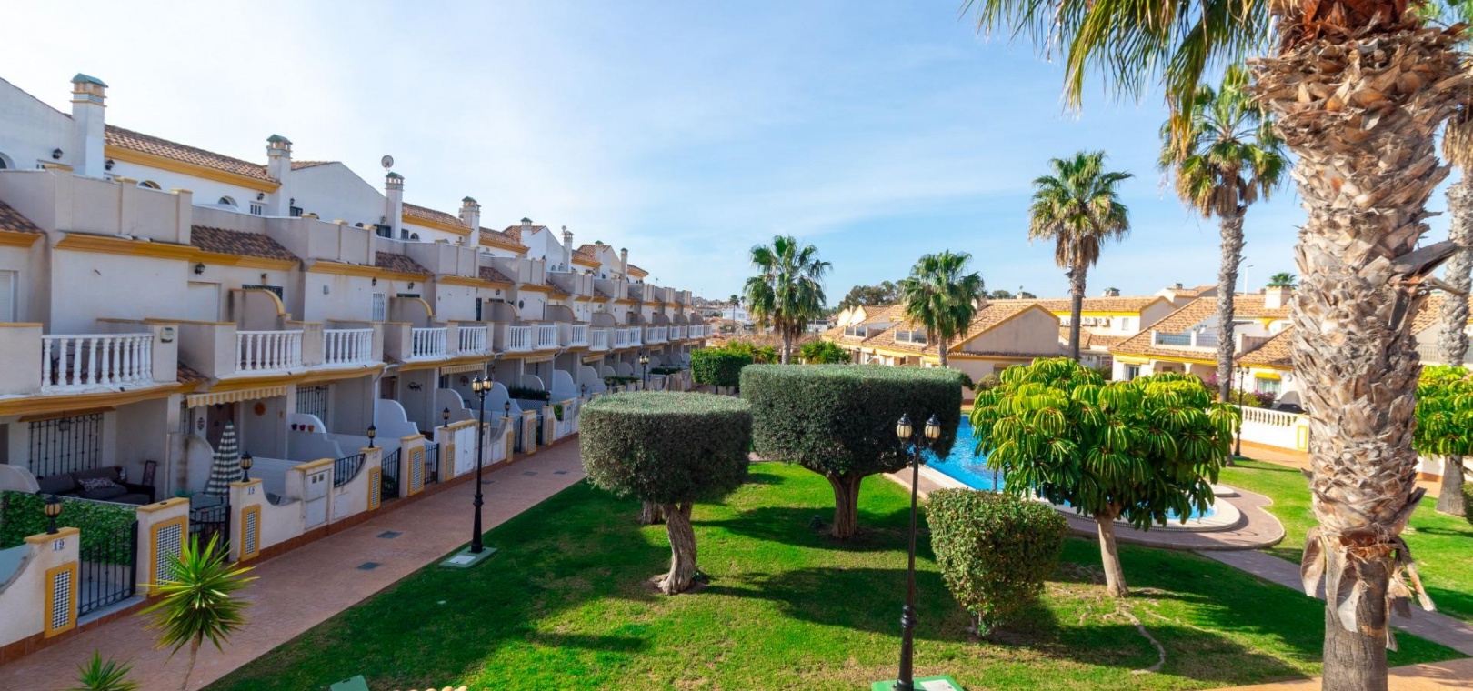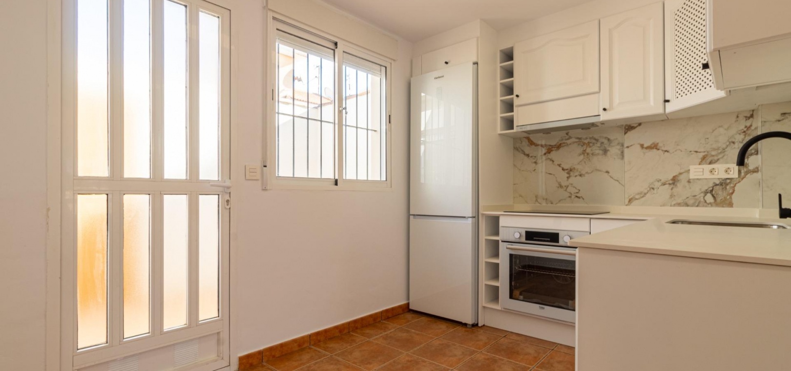 Welcome to your new home in the heart of Orihuela Costa. This brand new renovated semi-detached house, located in a privileged residential area, offers you a comfortable and modern life just a step away from Cabo Roig beach and all services. ~The house, distributed over two floors, has three spacious and bright bedrooms: one on the ground floor, ideal for guests or as an office, and two more on the upper floor, each with its own charm. Two full bathrooms equipped with high quality materials complete the layout. ~The kitchen, completely new and brand new, has direct access to a practical gallery, making it the ideal entrance to unload shopping bags comfortably. From the living room, with its cozy fireplace perfect for cooler nights, you can enjoy magnificent views of the green and landscaped areas of the residential area and the sparkling community pool. The air conditioning guarantees unrivaled thermal comfort throughout the year. ~Its location is unbeatable: a short walk from Cabo Roig beach and surrounded by a wide variety of services, including supermarkets, restaurants, shops and public transport. Everything you need at your fingertips. ~This renovated townhouse is a unique opportunity to enjoy the Mediterranean lifestyle in a quiet and privileged environment. Don't miss the opportunity to visit it!