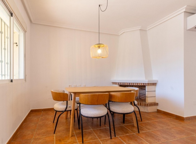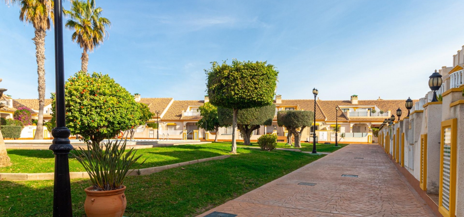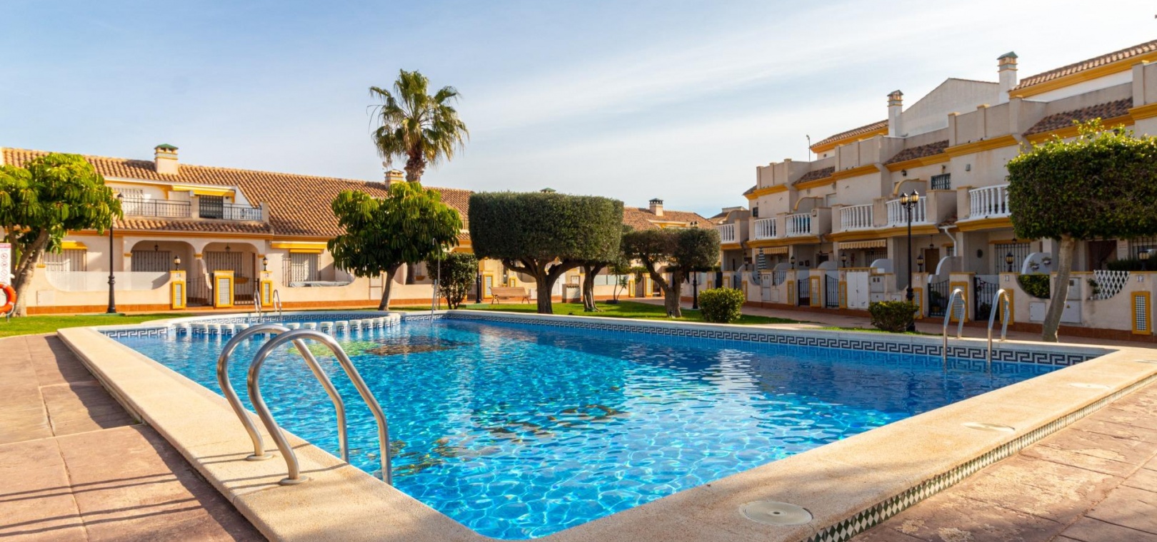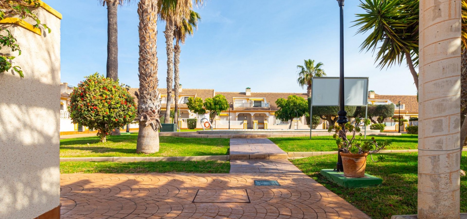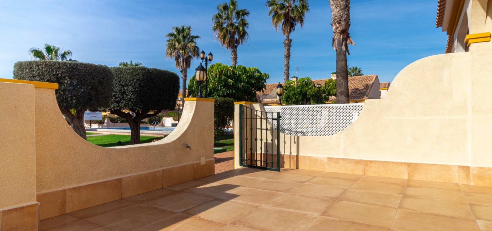 Welcome to your new home in the heart of Orihuela Costa. This brand new renovated semi-detached house, located in a privileged residential area, offers you a comfortable and modern life just a step away from Cabo Roig beach and all services. ~The house, distributed over two floors, has three spacious and bright bedrooms: one on the ground floor, ideal for guests or as an office, and two more on the upper floor, each with its own charm. Two full bathrooms equipped with high quality materials complete the layout. ~The kitchen, completely new and brand new, has direct access to a practical gallery, making it the ideal entrance to unload shopping bags comfortably. From the living room, with its cozy fireplace perfect for cooler nights, you can enjoy magnificent views of the green and landscaped areas of the residential area and the sparkling community pool. The air conditioning guarantees unrivaled thermal comfort throughout the year. ~Its location is unbeatable: a short walk from Cabo Roig beach and surrounded by a wide variety of services, including supermarkets, restaurants, shops and public transport. Everything you need at your fingertips. ~This renovated townhouse is a unique opportunity to enjoy the Mediterranean lifestyle in a quiet and privileged environment. Don't miss the opportunity to visit it!