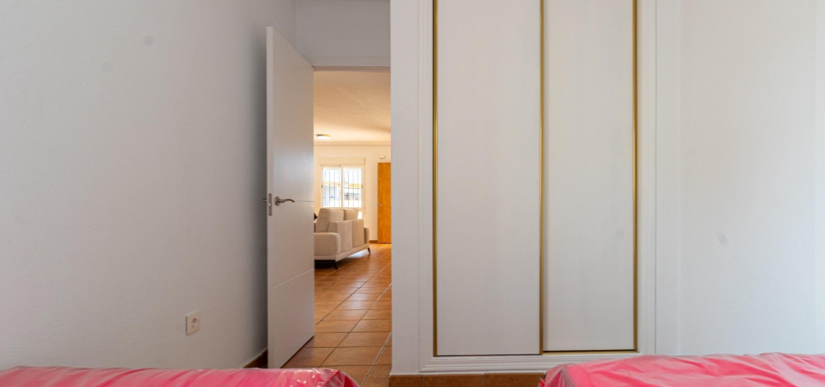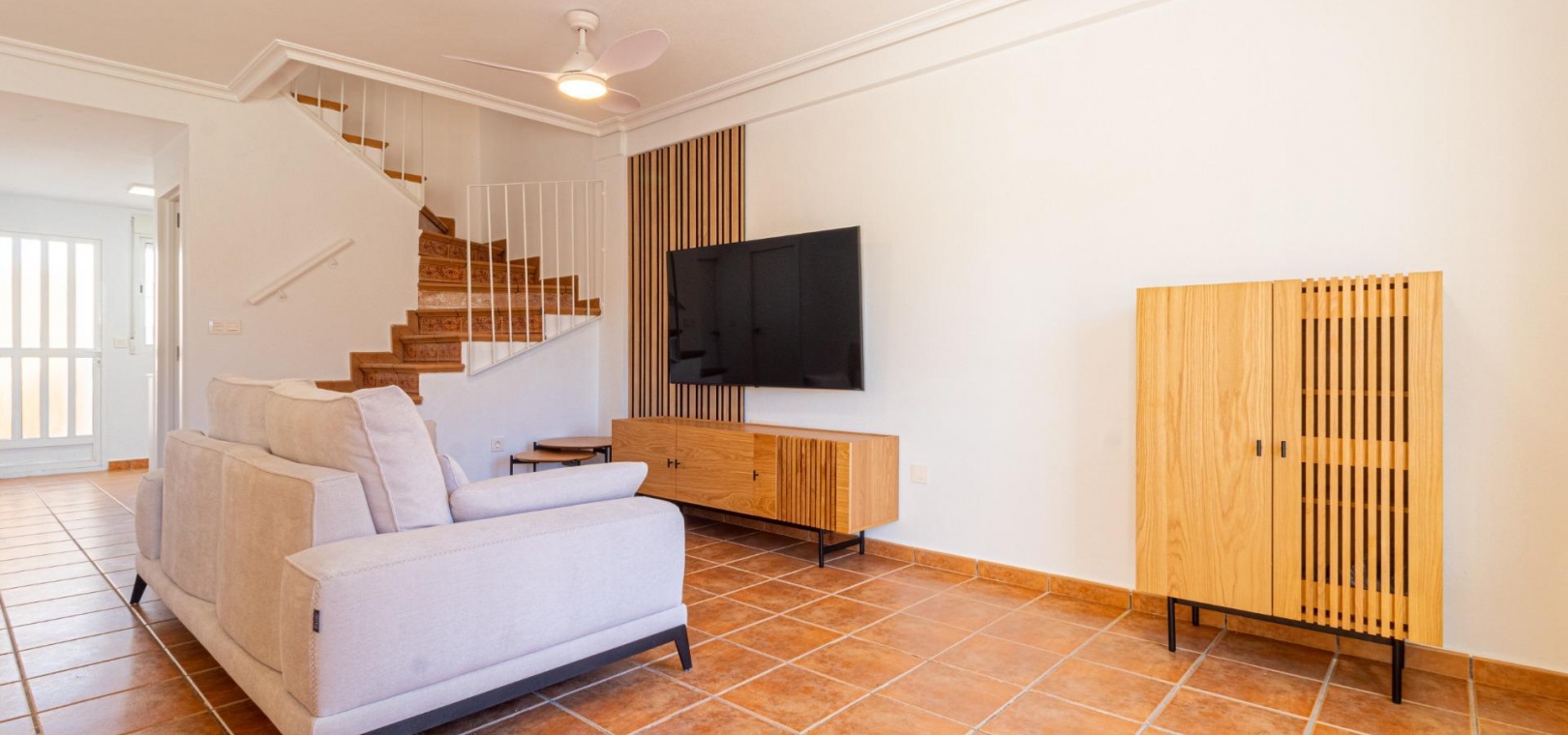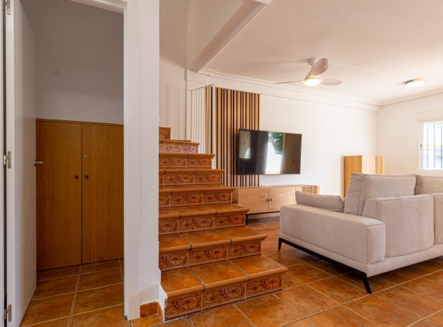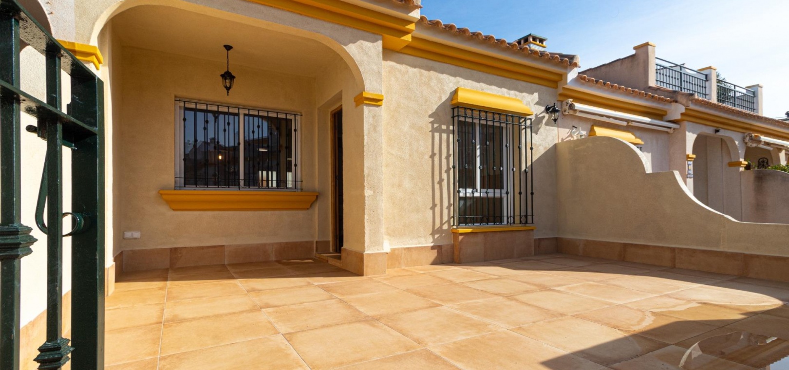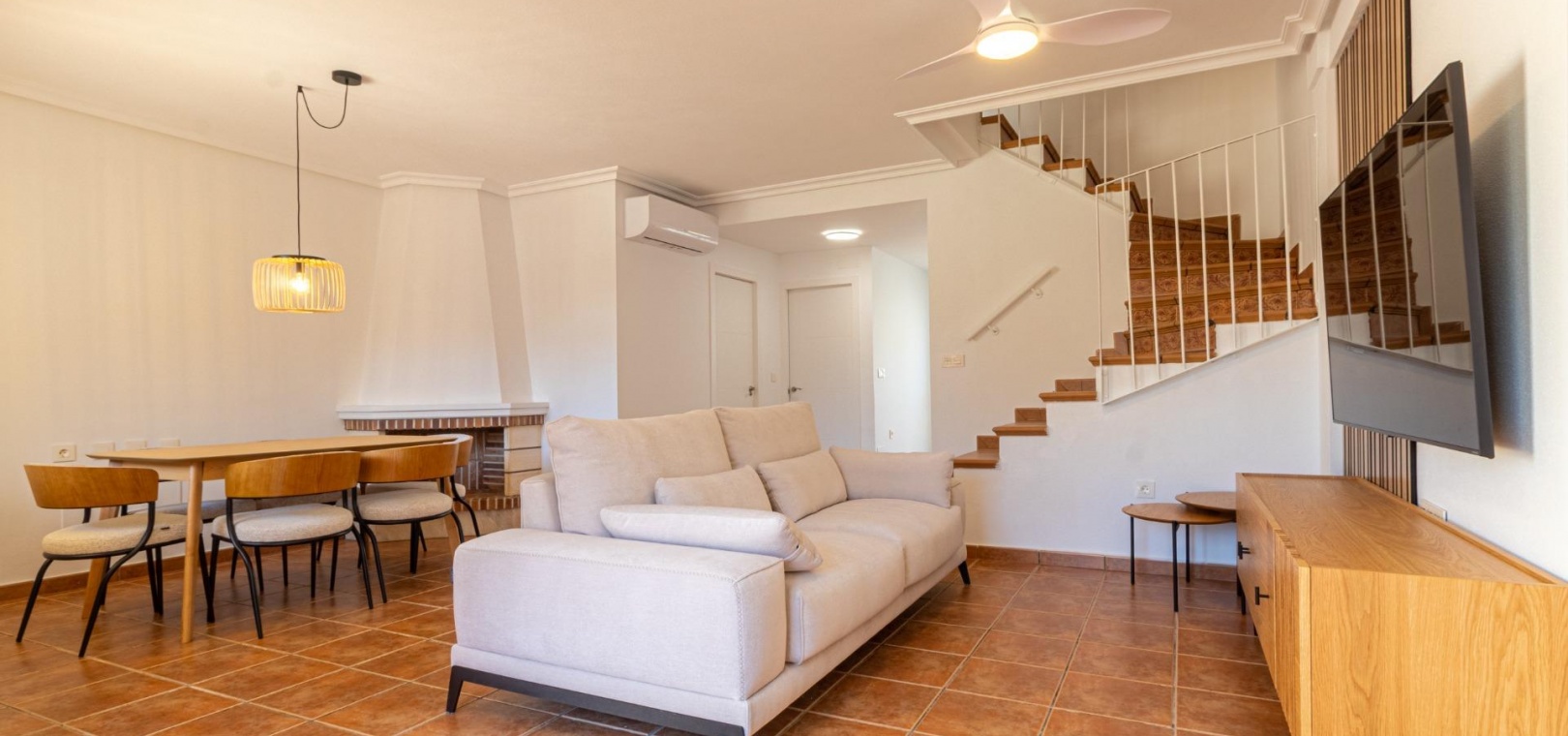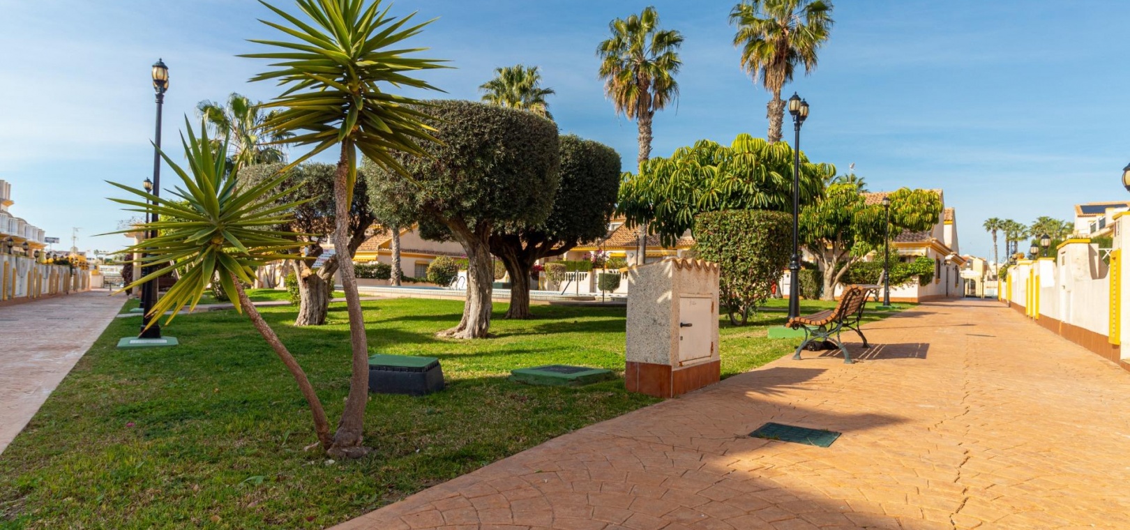 Welcome to your new home in the heart of Orihuela Costa. This brand new renovated semi-detached house, located in a privileged residential area, offers you a comfortable and modern life just a step away from Cabo Roig beach and all services. ~The house, distributed over two floors, has three spacious and bright bedrooms: one on the ground floor, ideal for guests or as an office, and two more on the upper floor, each with its own charm. Two full bathrooms equipped with high quality materials complete the layout. ~The kitchen, completely new and brand new, has direct access to a practical gallery, making it the ideal entrance to unload shopping bags comfortably. From the living room, with its cozy fireplace perfect for cooler nights, you can enjoy magnificent views of the green and landscaped areas of the residential area and the sparkling community pool. The air conditioning guarantees unrivaled thermal comfort throughout the year. ~Its location is unbeatable: a short walk from Cabo Roig beach and surrounded by a wide variety of services, including supermarkets, restaurants, shops and public transport. Everything you need at your fingertips. ~This renovated townhouse is a unique opportunity to enjoy the Mediterranean lifestyle in a quiet and privileged environment. Don't miss the opportunity to visit it!