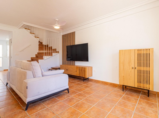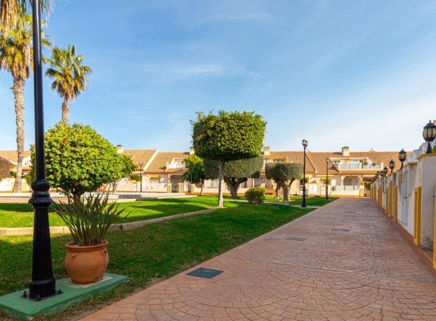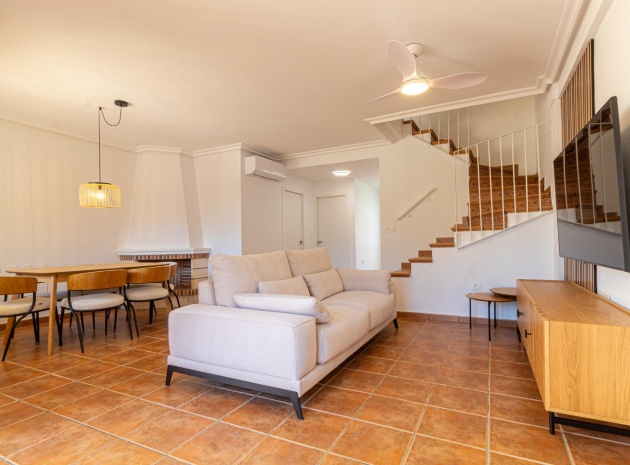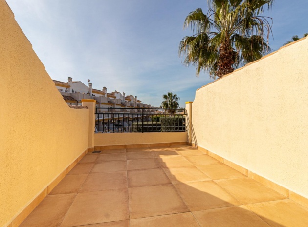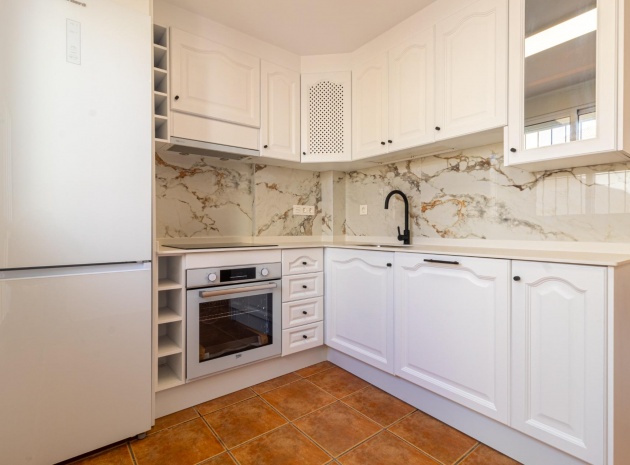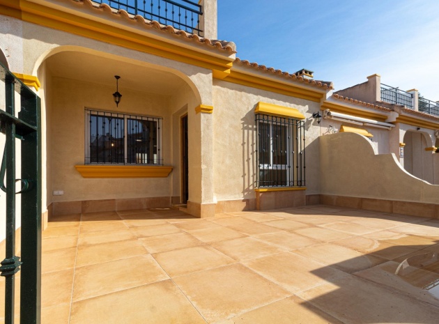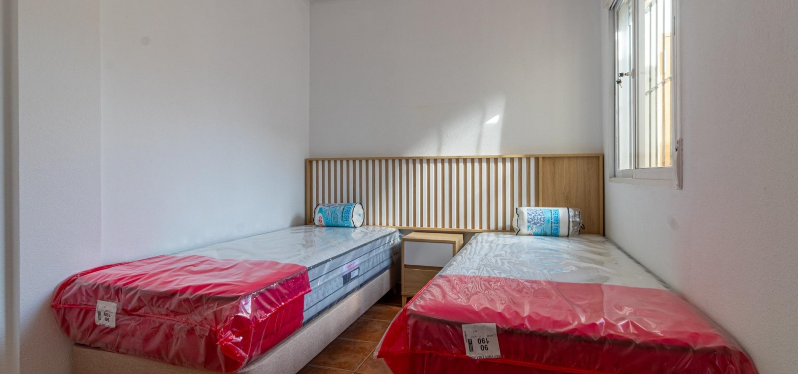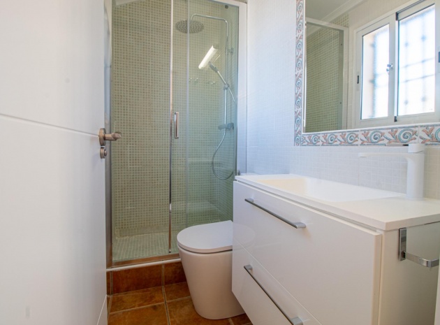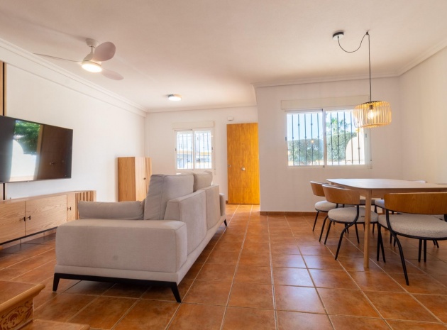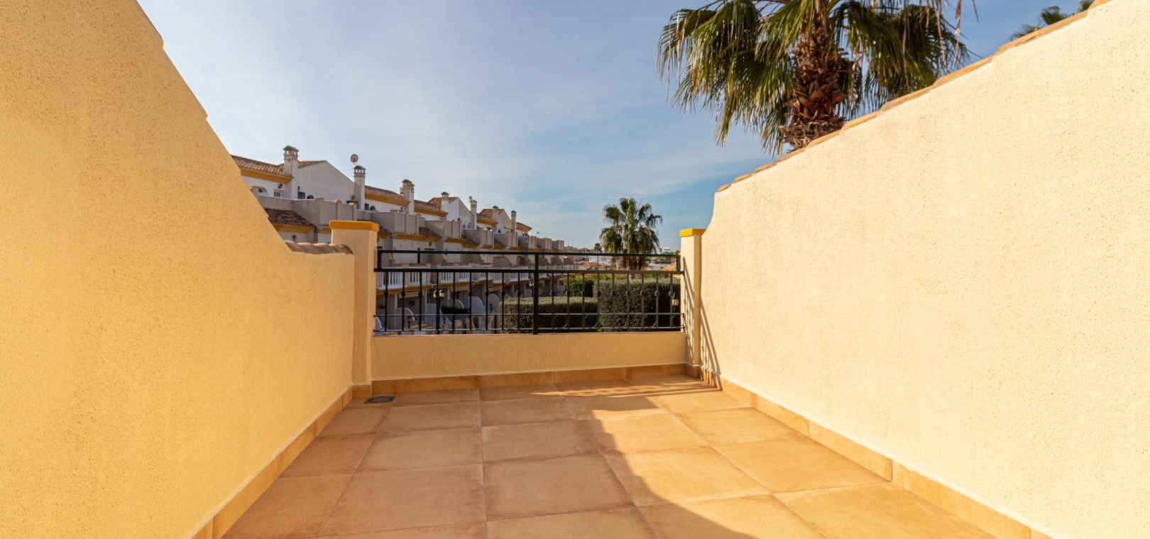 Welcome to your new home in the heart of Orihuela Costa. This brand new renovated semi-detached house, located in a privileged residential area, offers you a comfortable and modern life just a step away from Cabo Roig beach and all services. ~The house, distributed over two floors, has three spacious and bright bedrooms: one on the ground floor, ideal for guests or as an office, and two more on the upper floor, each with its own charm. Two full bathrooms equipped with high quality materials complete the layout. ~The kitchen, completely new and brand new, has direct access to a practical gallery, making it the ideal entrance to unload shopping bags comfortably. From the living room, with its cozy fireplace perfect for cooler nights, you can enjoy magnificent views of the green and landscaped areas of the residential area and the sparkling community pool. The air conditioning guarantees unrivaled thermal comfort throughout the year. ~Its location is unbeatable: a short walk from Cabo Roig beach and surrounded by a wide variety of services, including supermarkets, restaurants, shops and public transport. Everything you need at your fingertips. ~This renovated townhouse is a unique opportunity to enjoy the Mediterranean lifestyle in a quiet and privileged environment. Don't miss the opportunity to visit it!